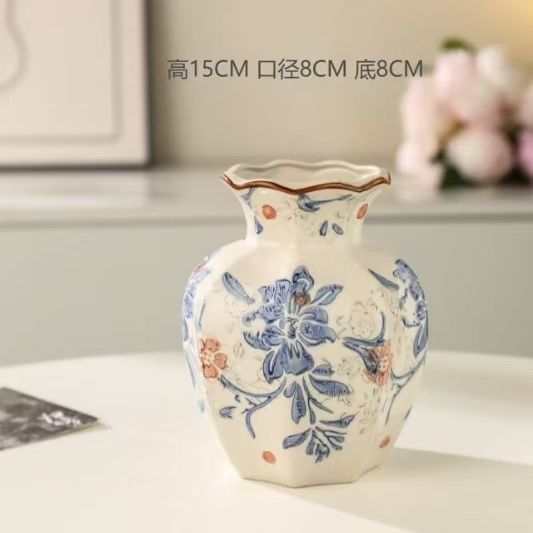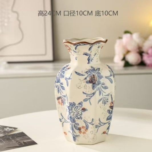 새로운 중국식 고급 레트로 블루와 화이트 도자기 세라믹 꽃병 꽃-거실 복도 꽃 장식 수생 가정 장식스토어 가기