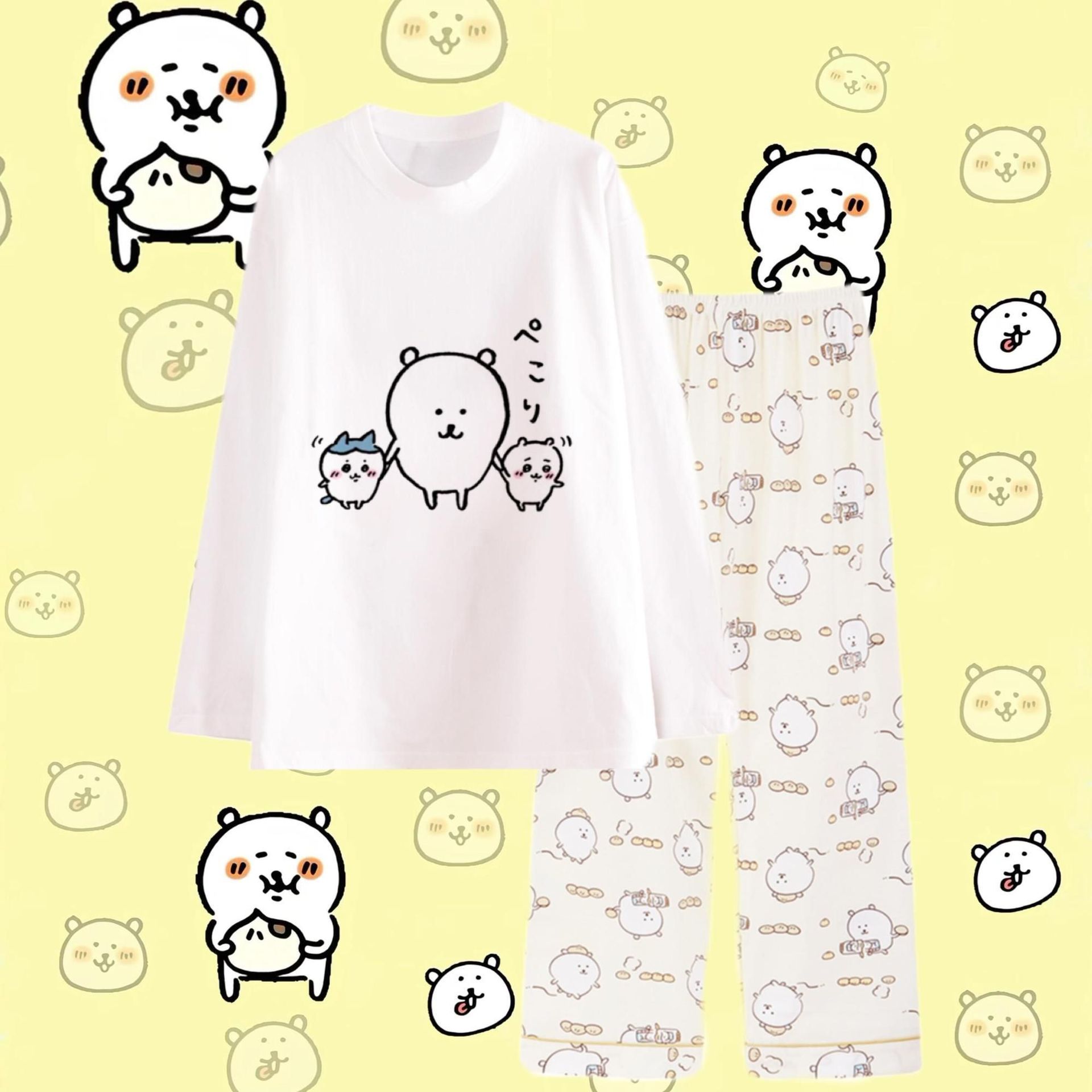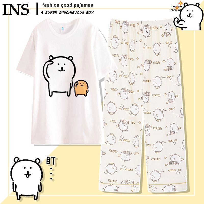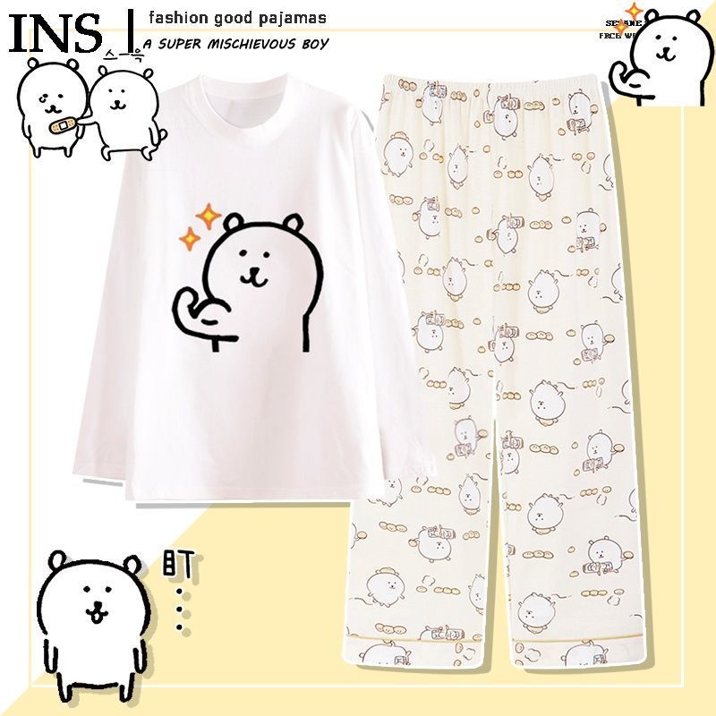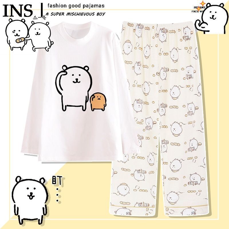 나가노 자기 비하 곰 파자마 여성의 봄과 가을 면 둥근 목 긴 소매 세트 만화 귀여운 Gee 홈 옷스토어 가기