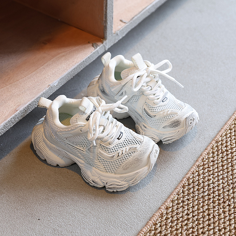 2025 봄과 여름 새로운 어린이 운동화 큰 소년 싱글 그물 경량 통기성 작은 흰색 신발 학생 가벼운 운동화