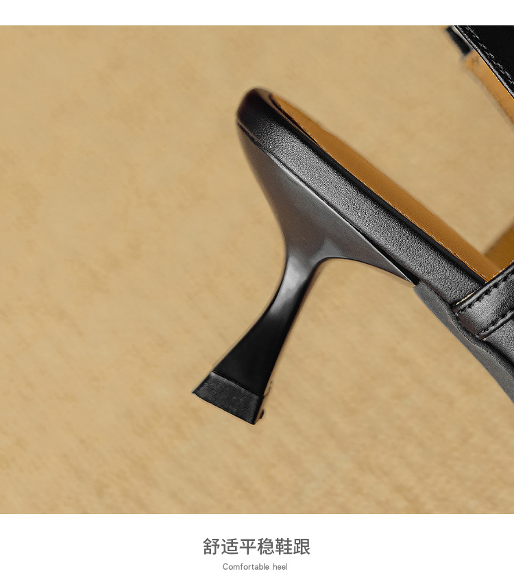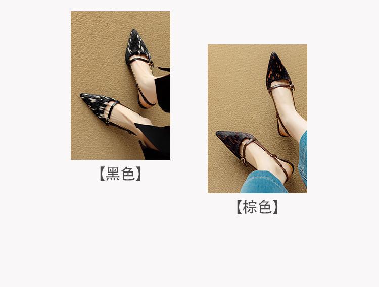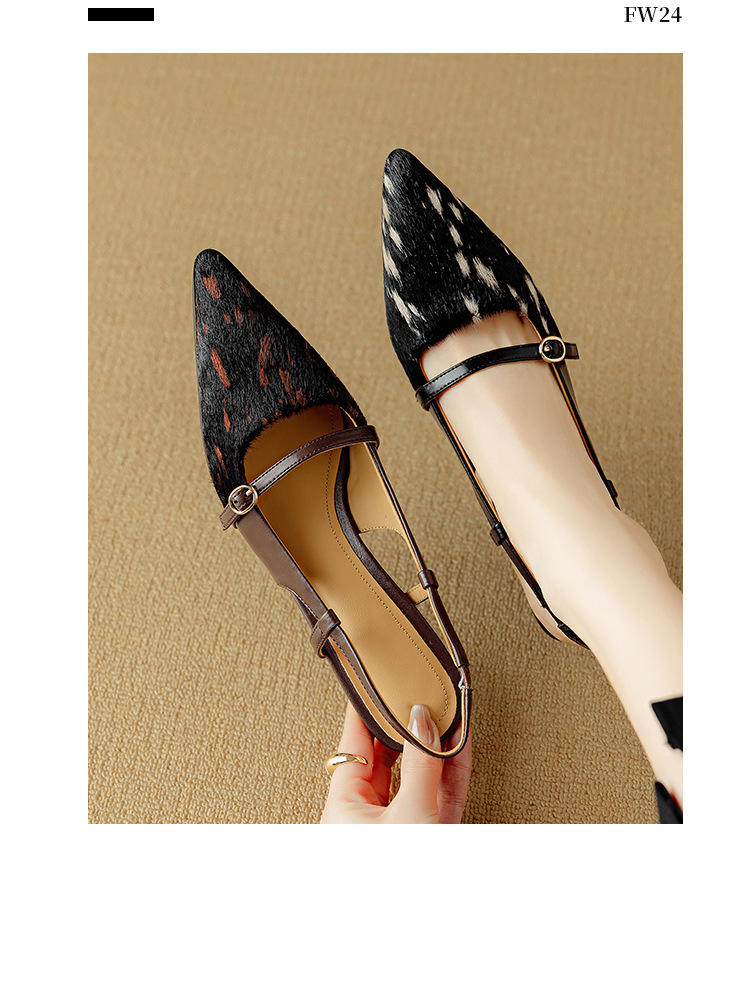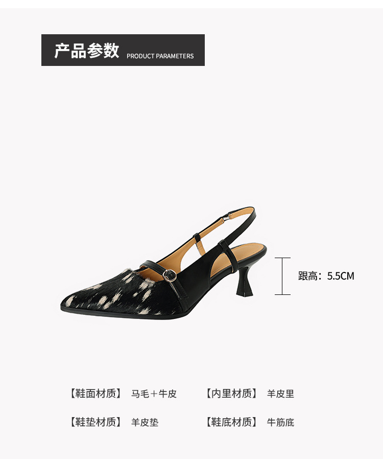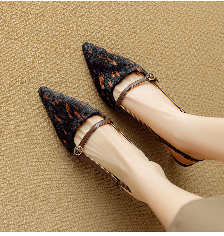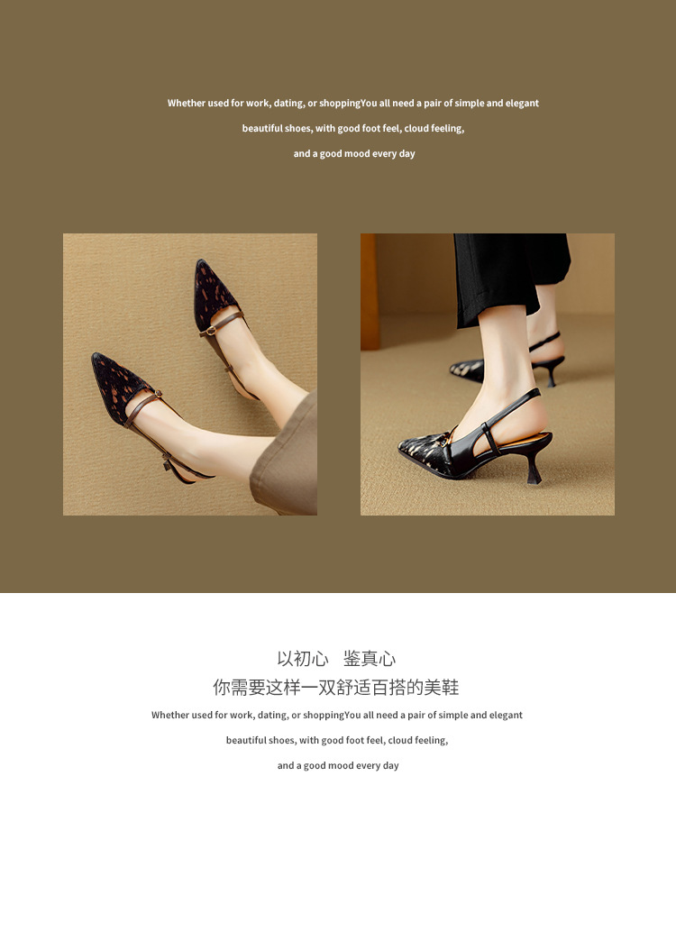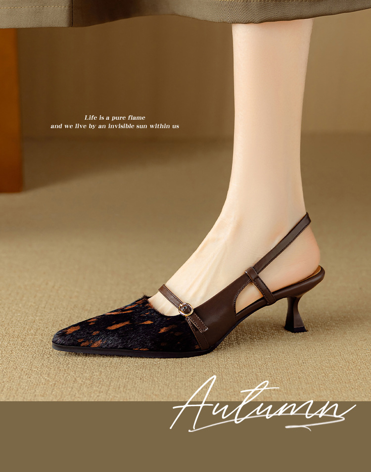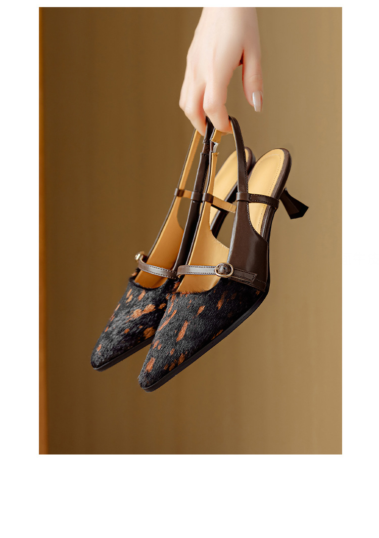프랑스 복고풍 뾰족한 발가락 신발 말 머리 레오파드 무늬 발가락 가죽 얇은 뒤꿈치 샌들을 가진 새로운 스타일의 하이힐
