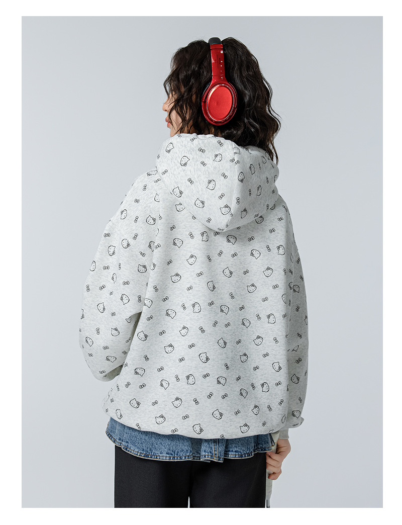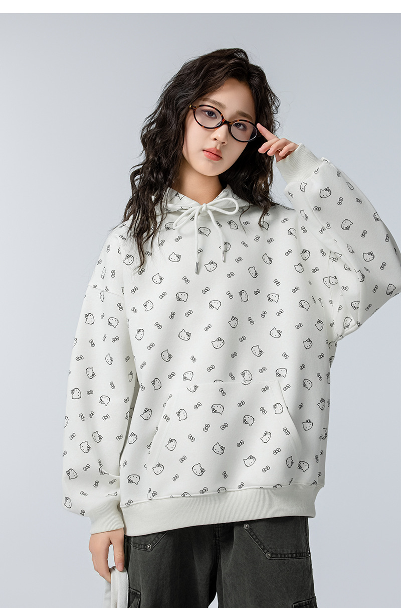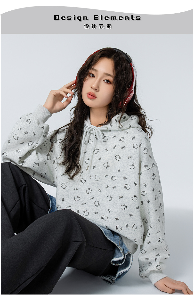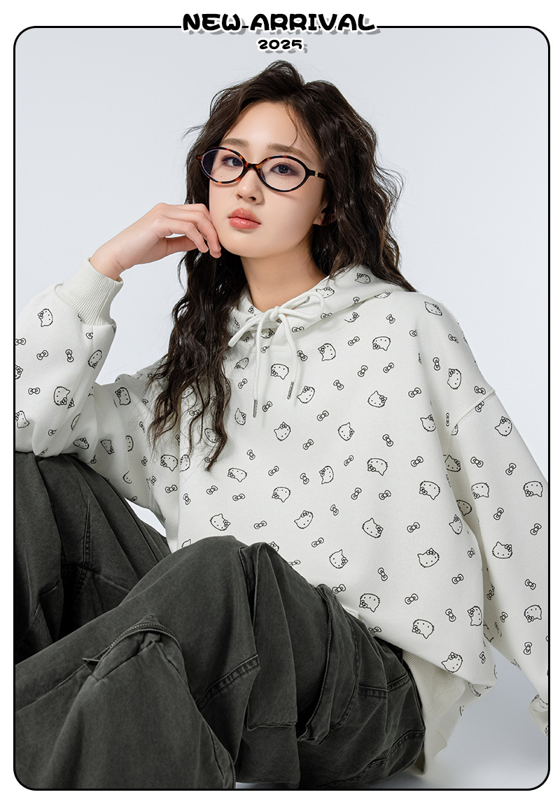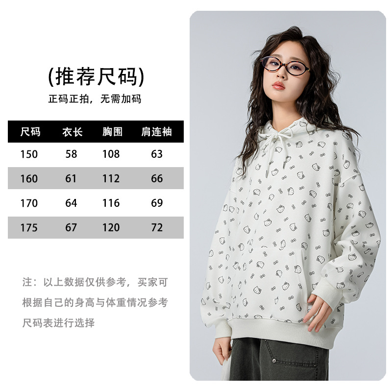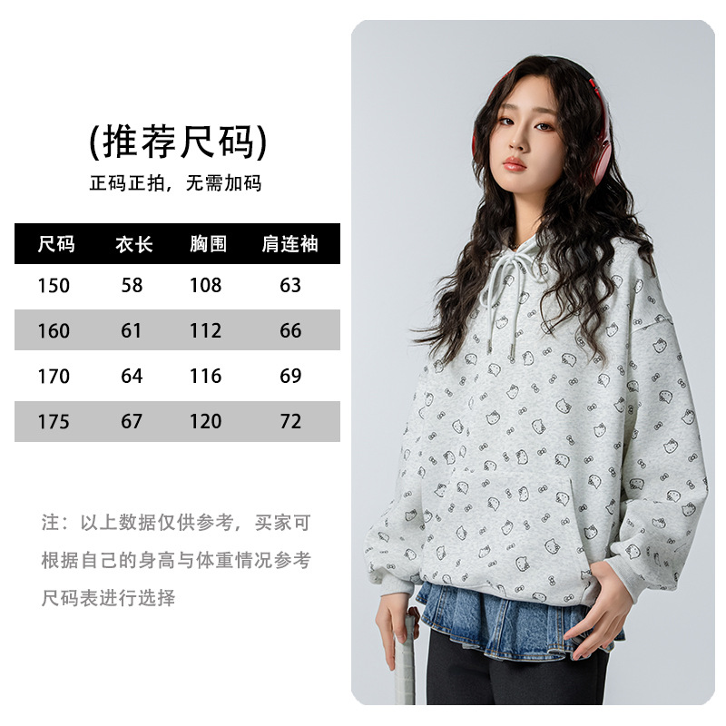 중학생 HelloKitty 인쇄 후드 후드 후드 후드 후드 2025 봄 느슨한 달콤한 올 매치 긴 소매 탑