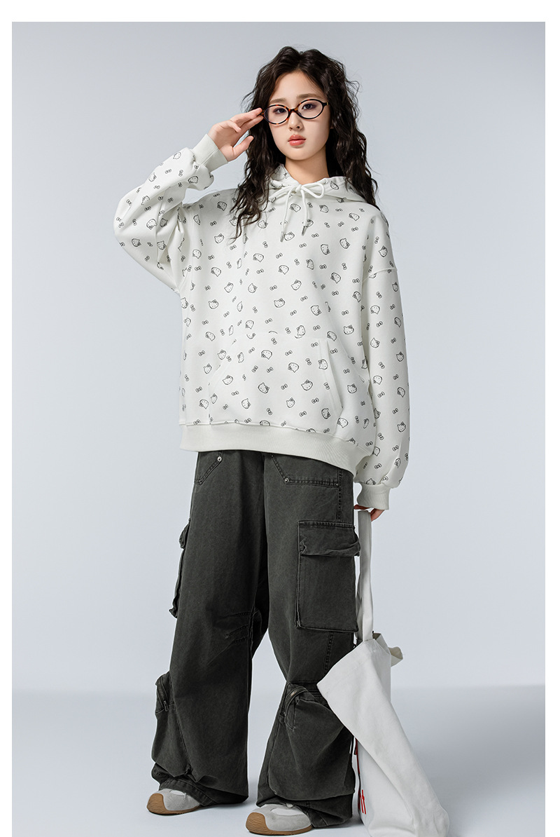 중학생 HelloKitty 인쇄 후드 후드 후드 후드 후드 2025 봄 느슨한 달콤한 올 매치 긴 소매 탑스토어 가기