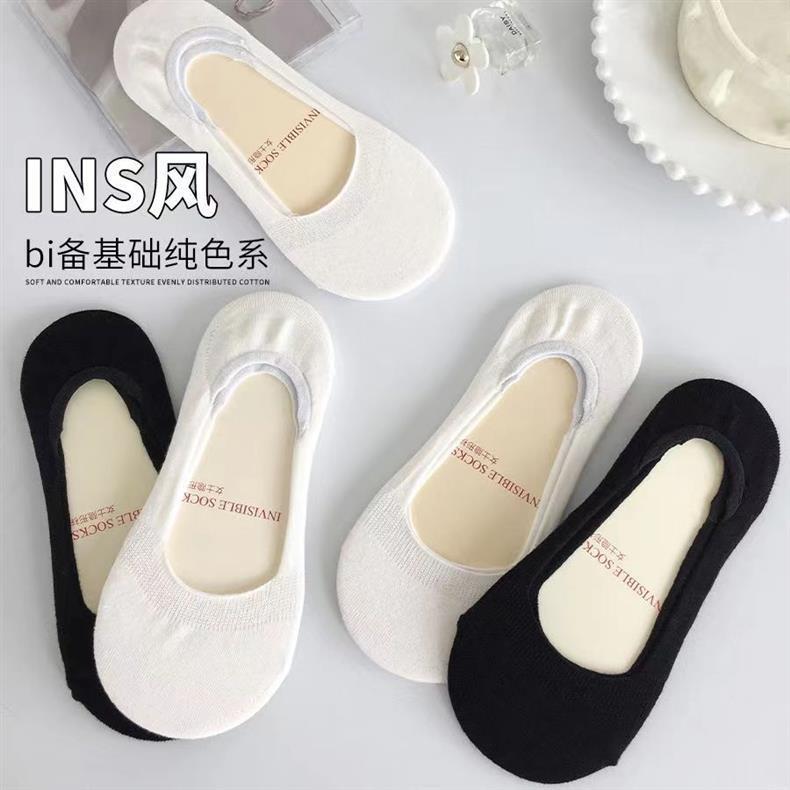 양말 여성의 여름 얇은 보트 양말 미끄럼 방지 보이지 않는 양말 짧은 양말 통기성 흑백 올 매치 로우 양말 코튼