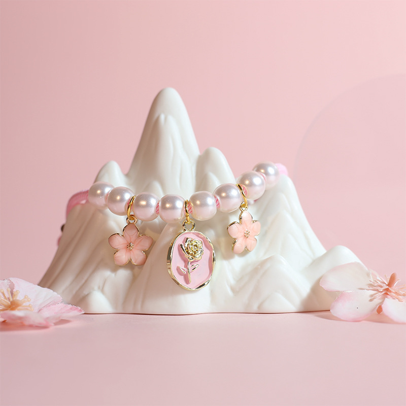 핑크 고양이 목걸이 장미 벚꽃 애완 동물 황금 잠금 신선한 고양이 목걸이 고양이 액세서리 진주 목걸이 고양이 체인스토어 가기