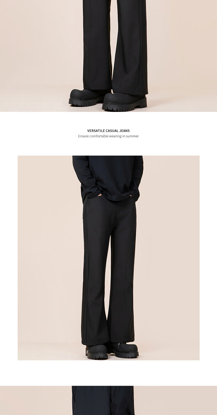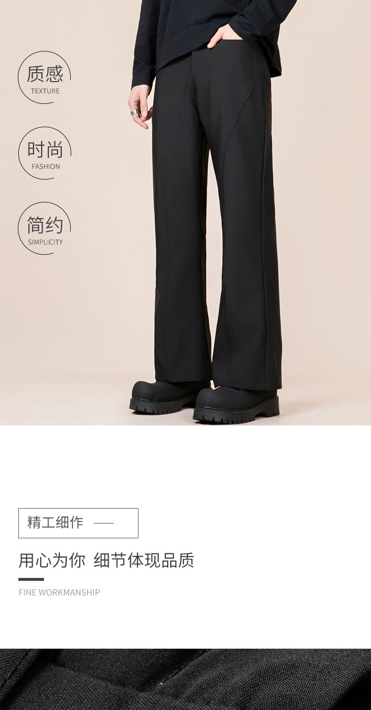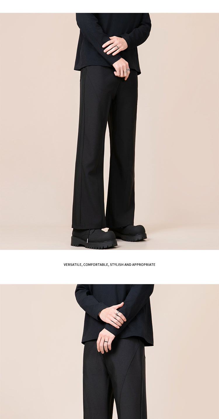 하이 엔드 벨 바텀 팬츠 남성용 처진 느슨한 와이드 레그 팬츠 패션 마이크로 블래어링 큰 다리 비즈니스 비 다림질 캐주얼 팬츠