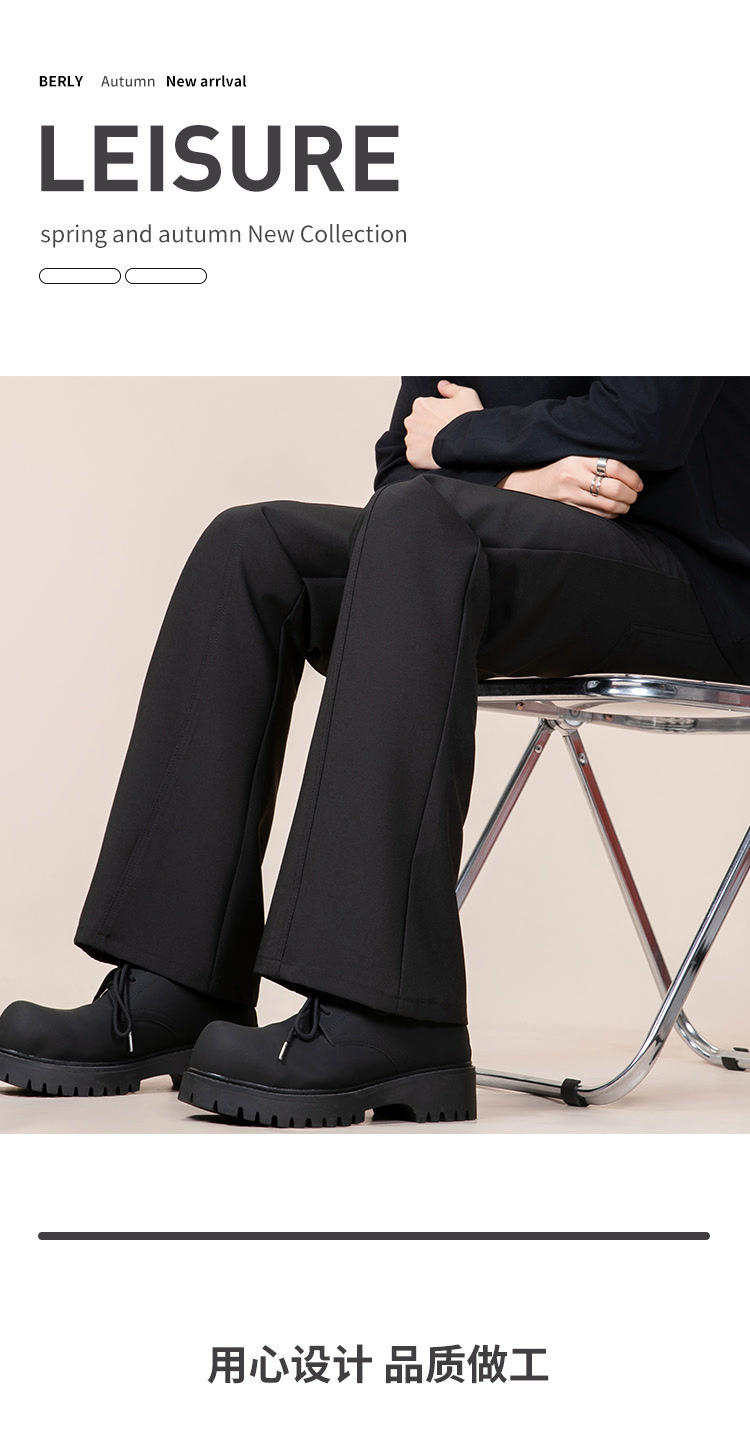 하이 엔드 벨 바텀 팬츠 남성용 처진 느슨한 와이드 레그 팬츠 패션 마이크로 블래어링 큰 다리 비즈니스 비 다림질 캐주얼 팬츠스토어 가기