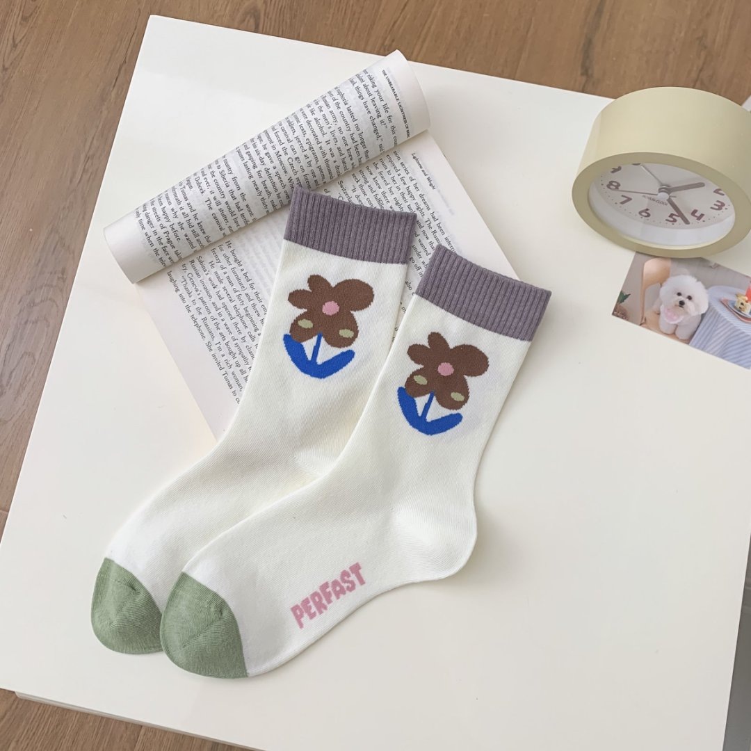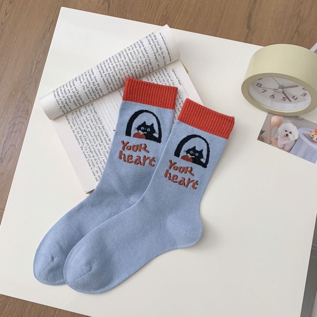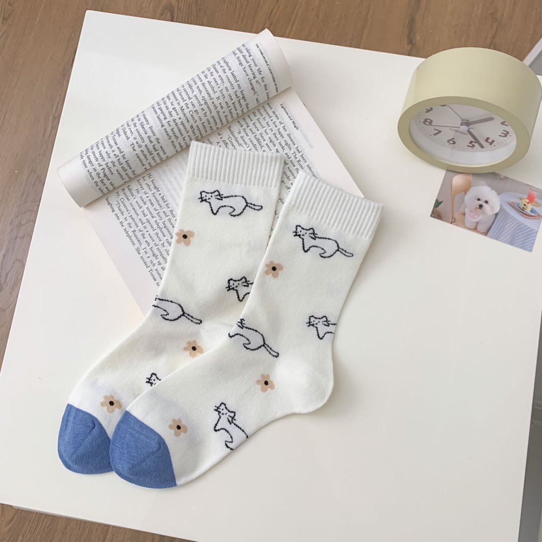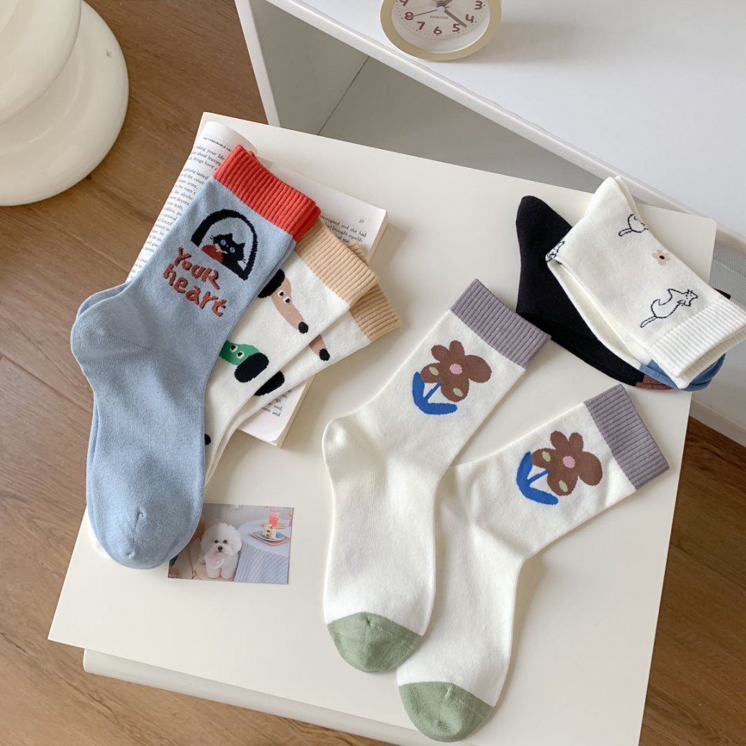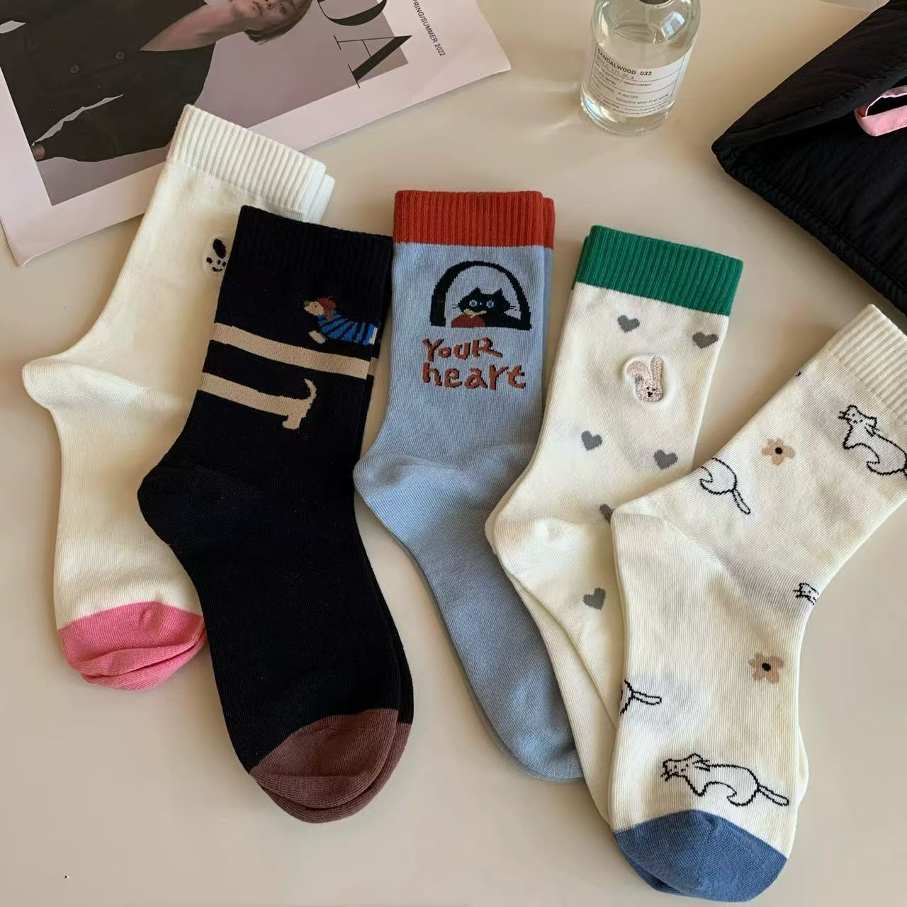 순면 양말 여성 2025 봄과 여름 새로운 만화 강아지 쌓기 양말 한국 스타일 긴 배럴 뼈 양말 여성의 얇은 여름스토어 가기