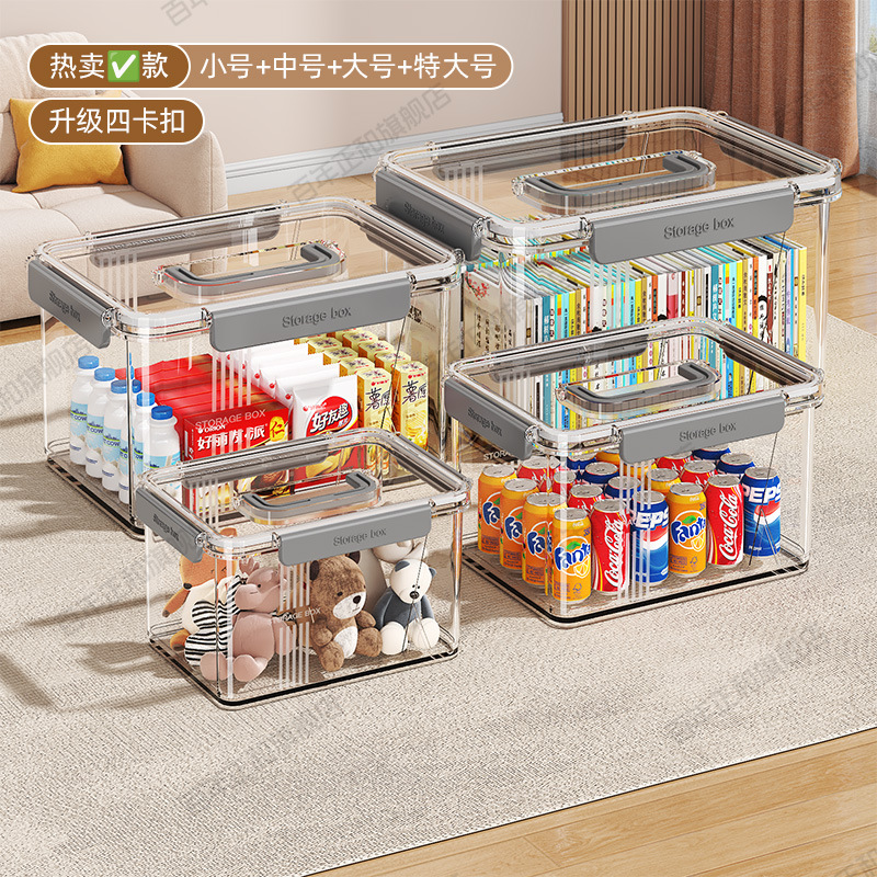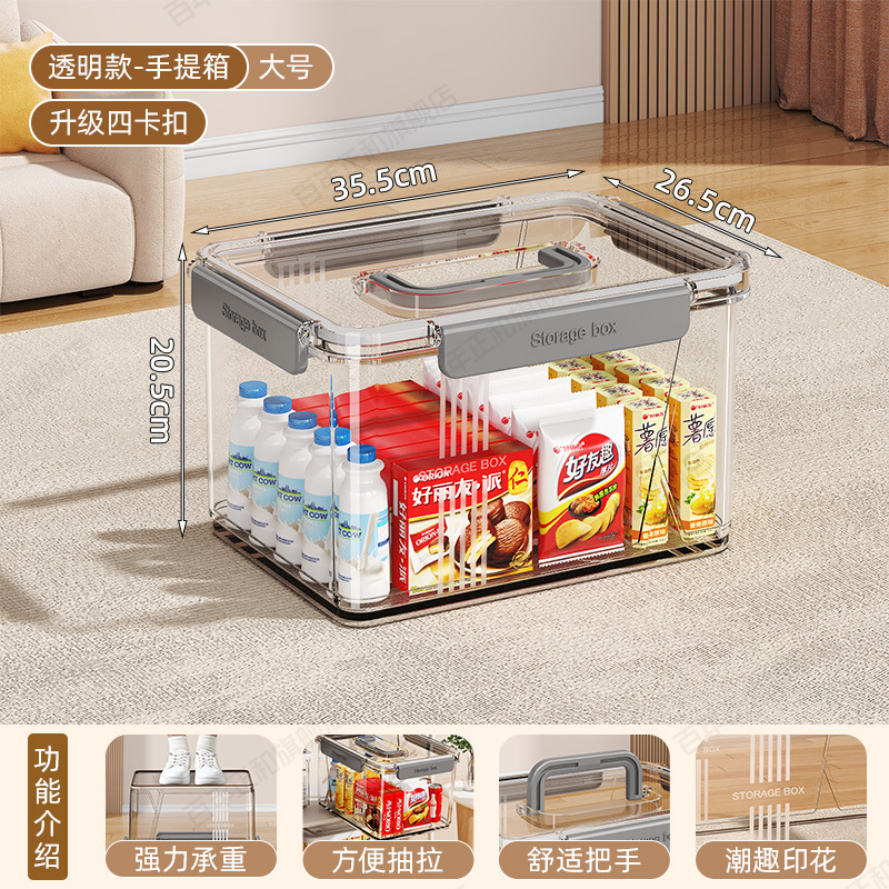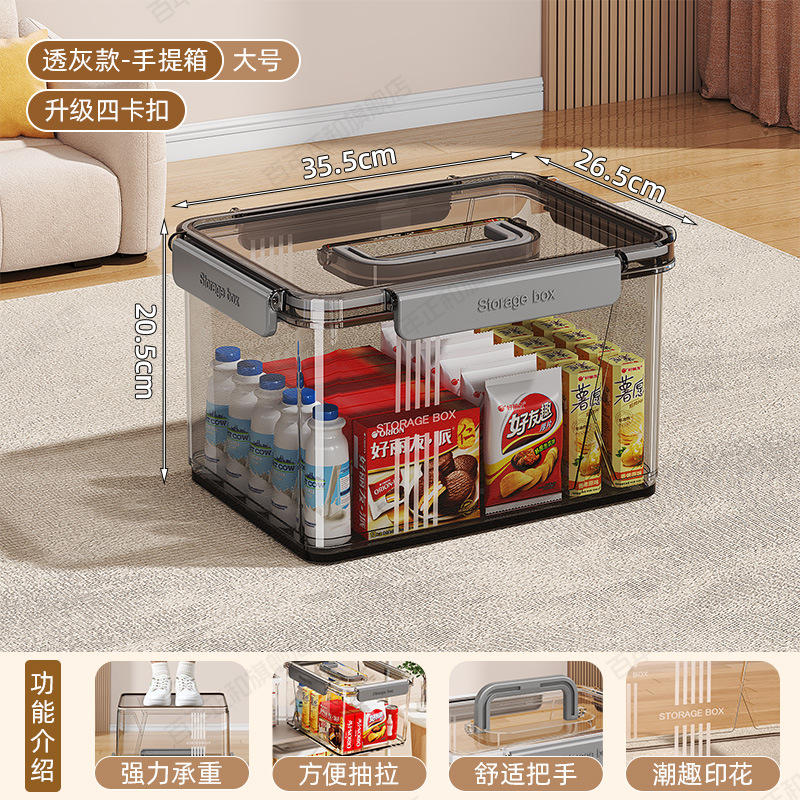 투명한 저장 상자 가정용 간식 장난감 옷 책 저장 상자 저장 상자 저장 상자 대용량 회전율 상자 저장 바구니