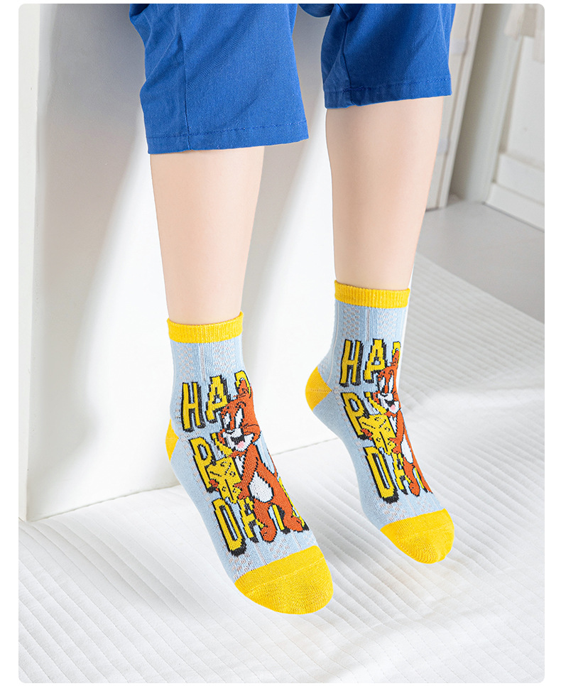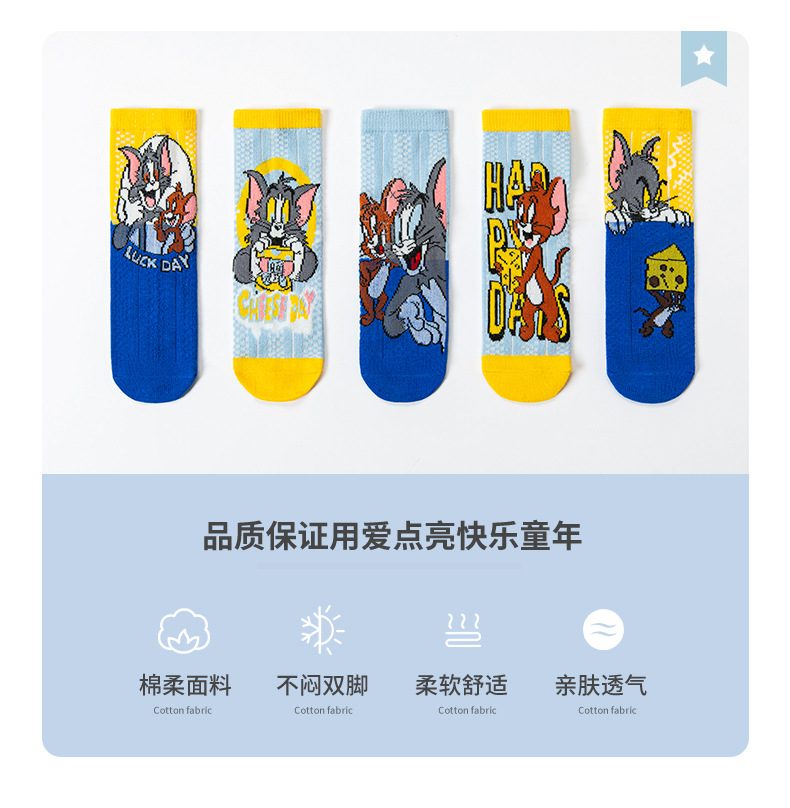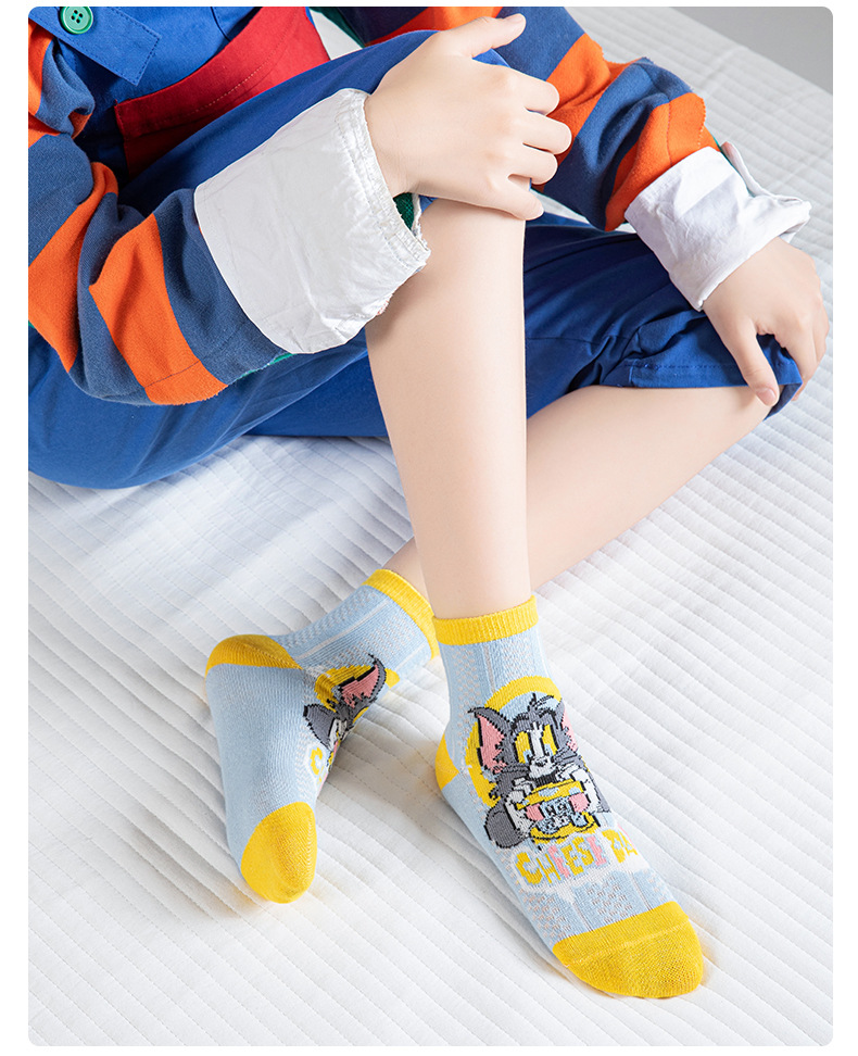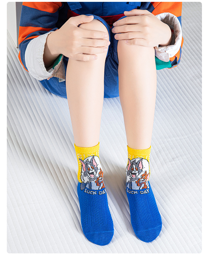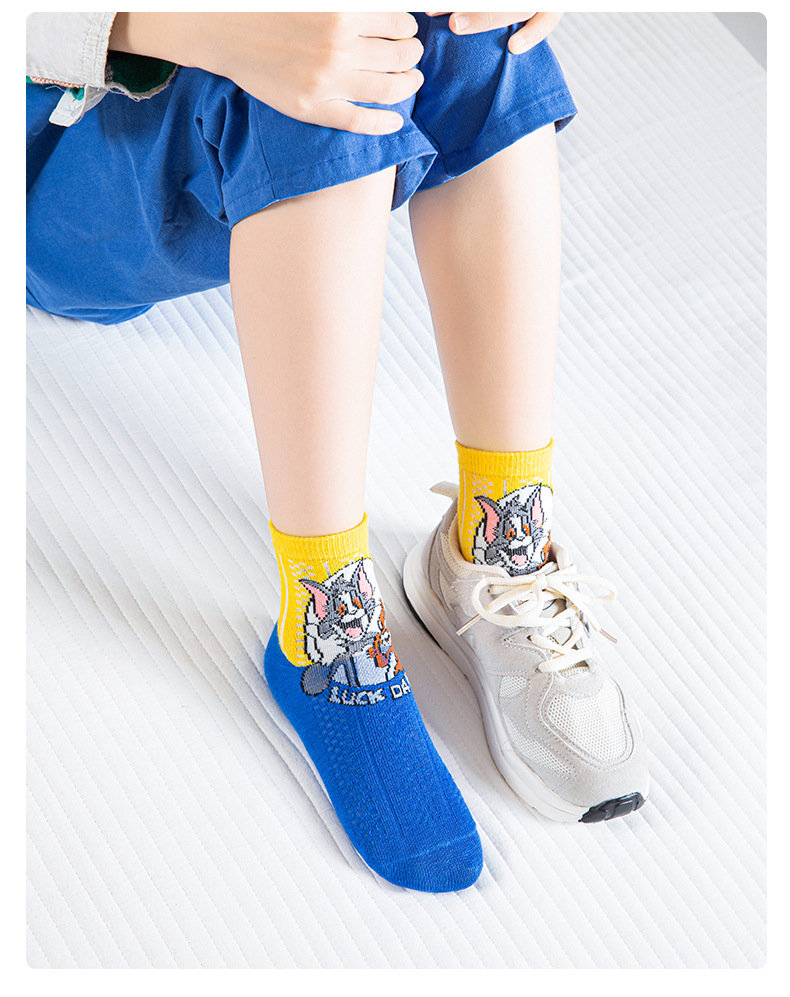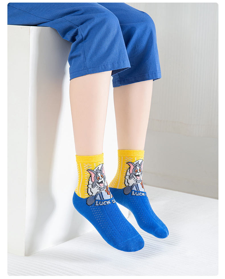 어린 이용 양말 여름 얇은 면 메쉬 양말 소녀와 소년을위한 만화 고양이와 마우스 양말 봄과 여름 중간 튜브 양말