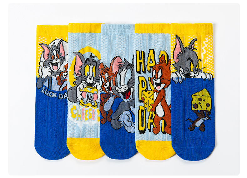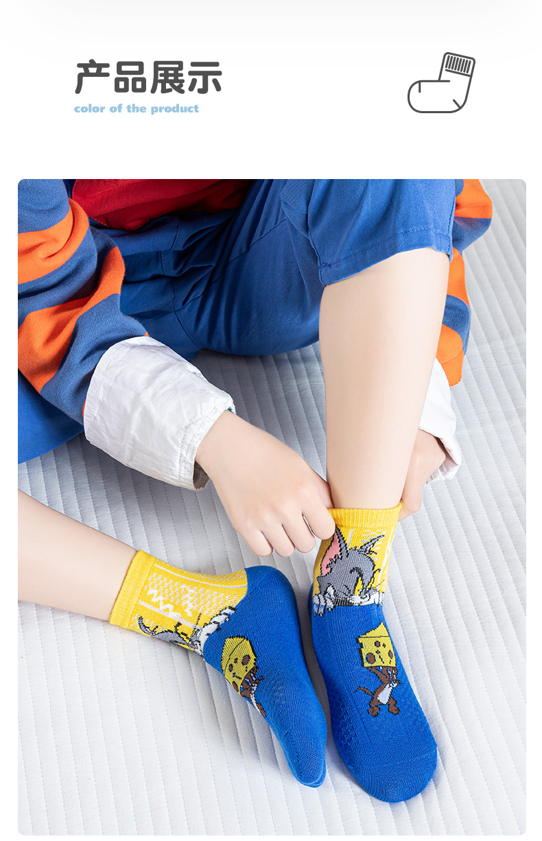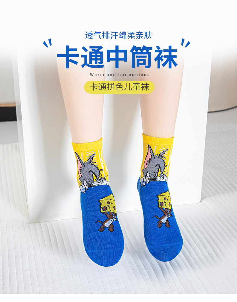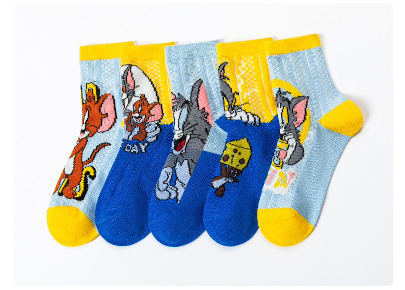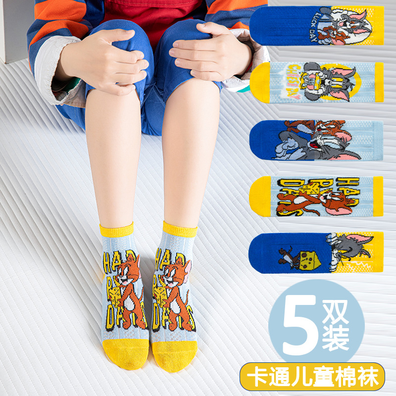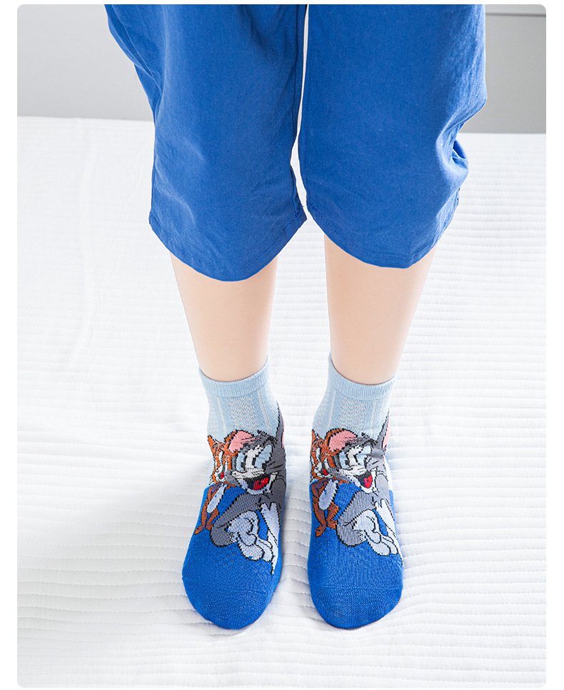 어린 이용 양말 여름 얇은 면 메쉬 양말 소녀와 소년을위한 만화 고양이와 마우스 양말 봄과 여름 중간 튜브 양말