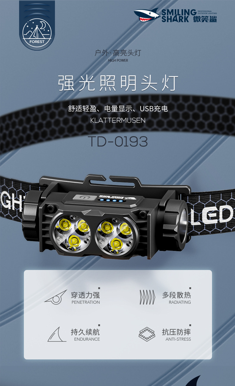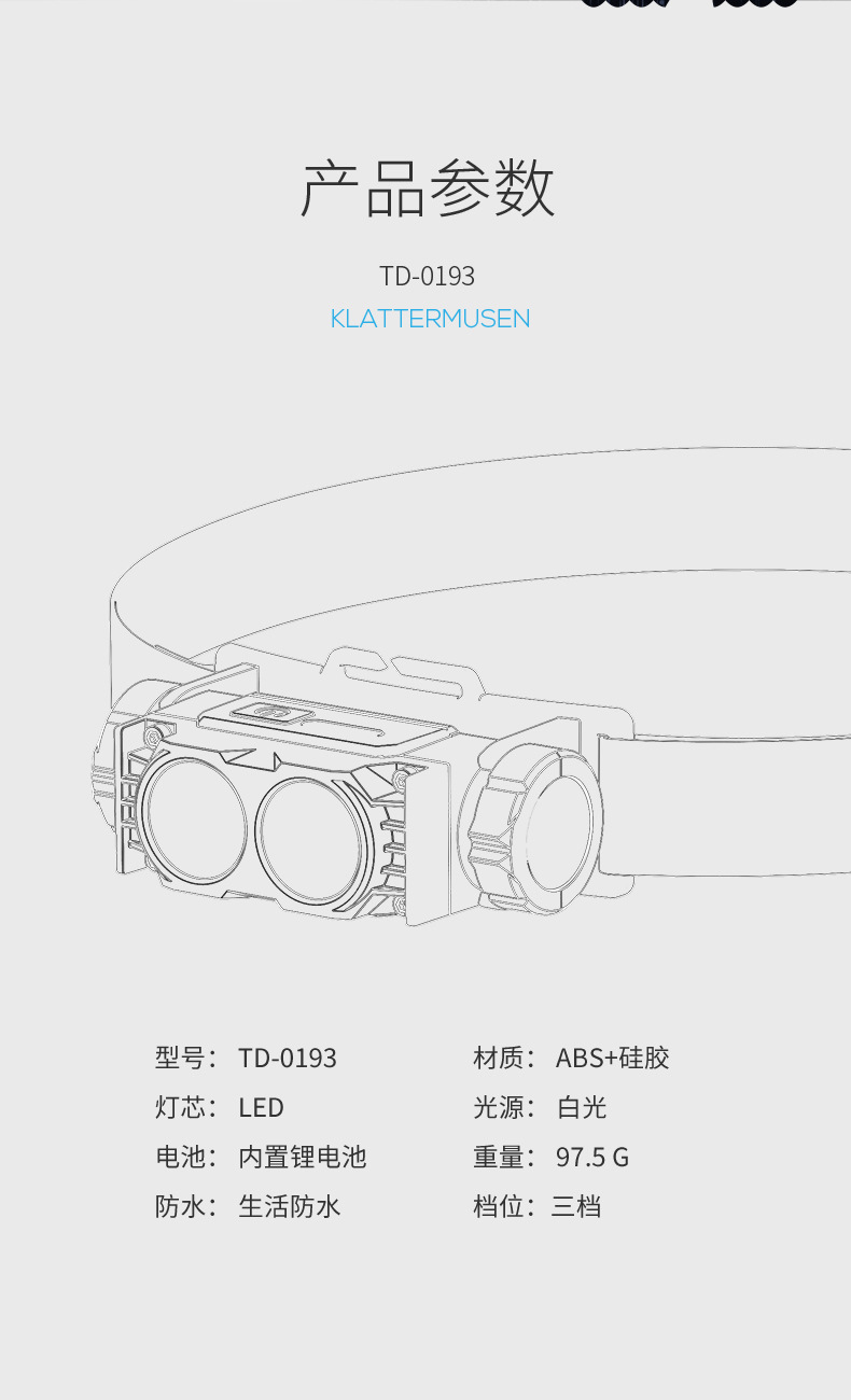 • 0193 미니 더블 램프 대형 투광 헤드라이트 - 시안 B 모델 [내장 배터리 2000MAH]