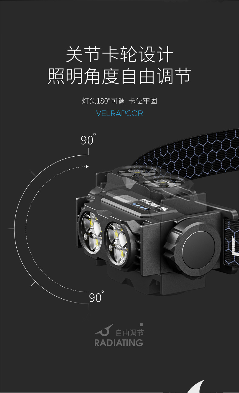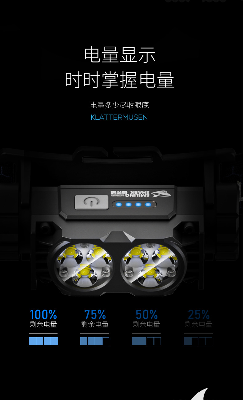 • 0193 미니 더블 램프 대형 투광 헤드라이트 - 블랙 모델 B [내장 배터리 2000MAH]