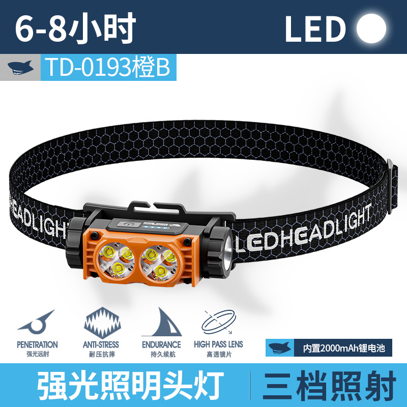 • 0193 미니 더블 램프 대형 투광 헤드라이트-오렌지 B형 [내장 배터리 2000MAH]