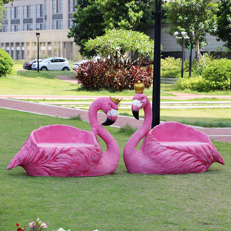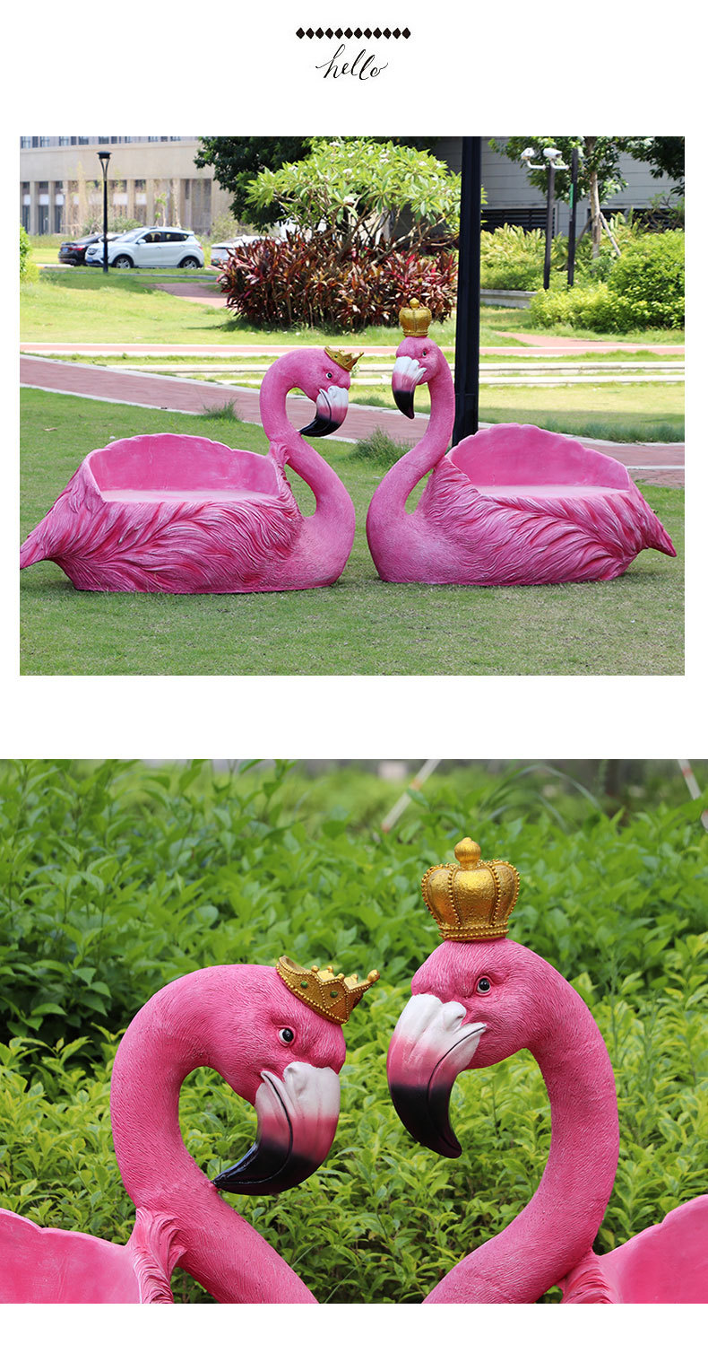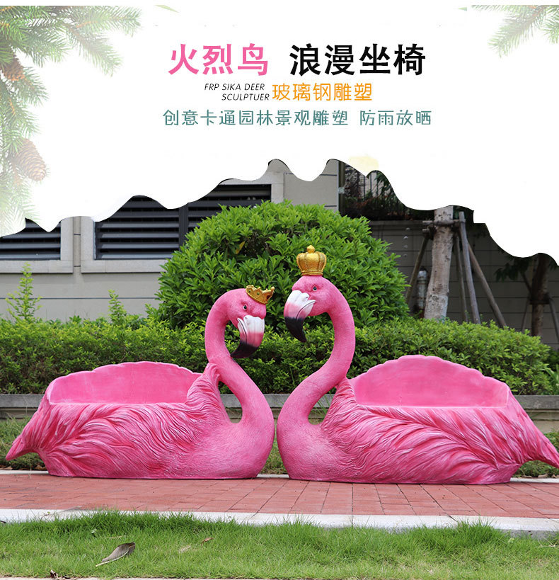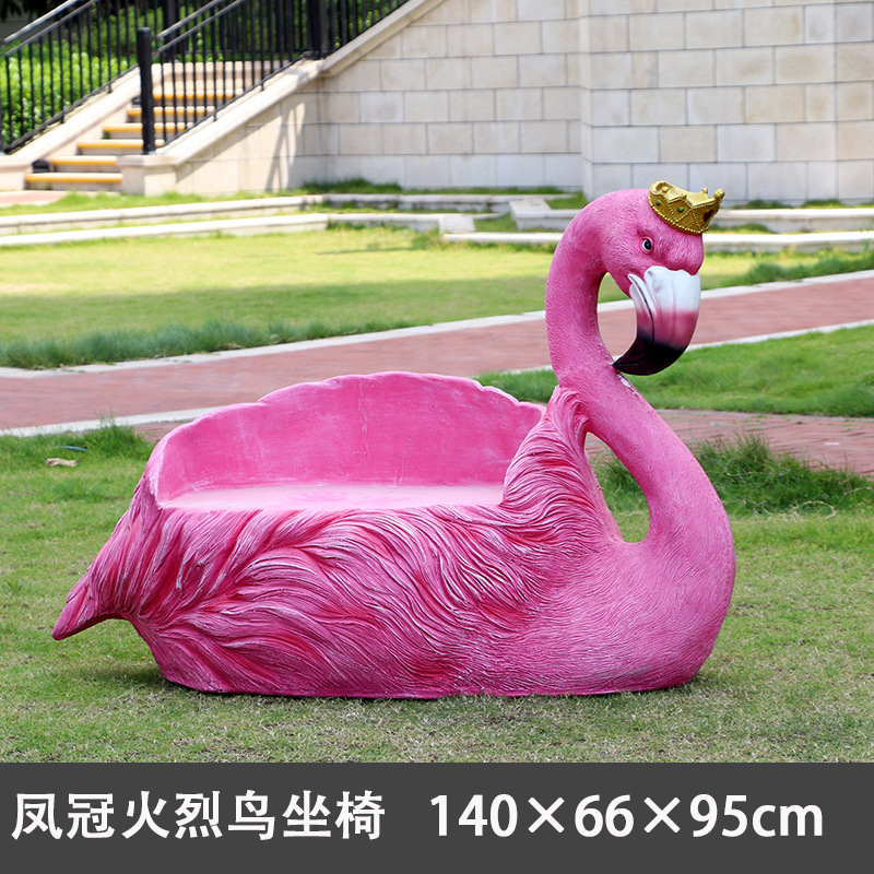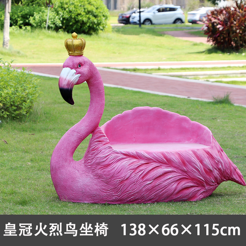 야외 웨딩 온라인 레드 플라밍고 크라운 유리 섬유 강화 플라스틱 조각 경치 명소 펀치 핑크 낭만적 인 공원 장식 좌석