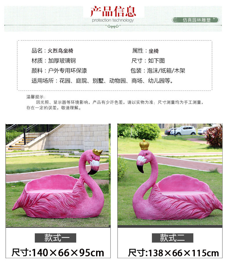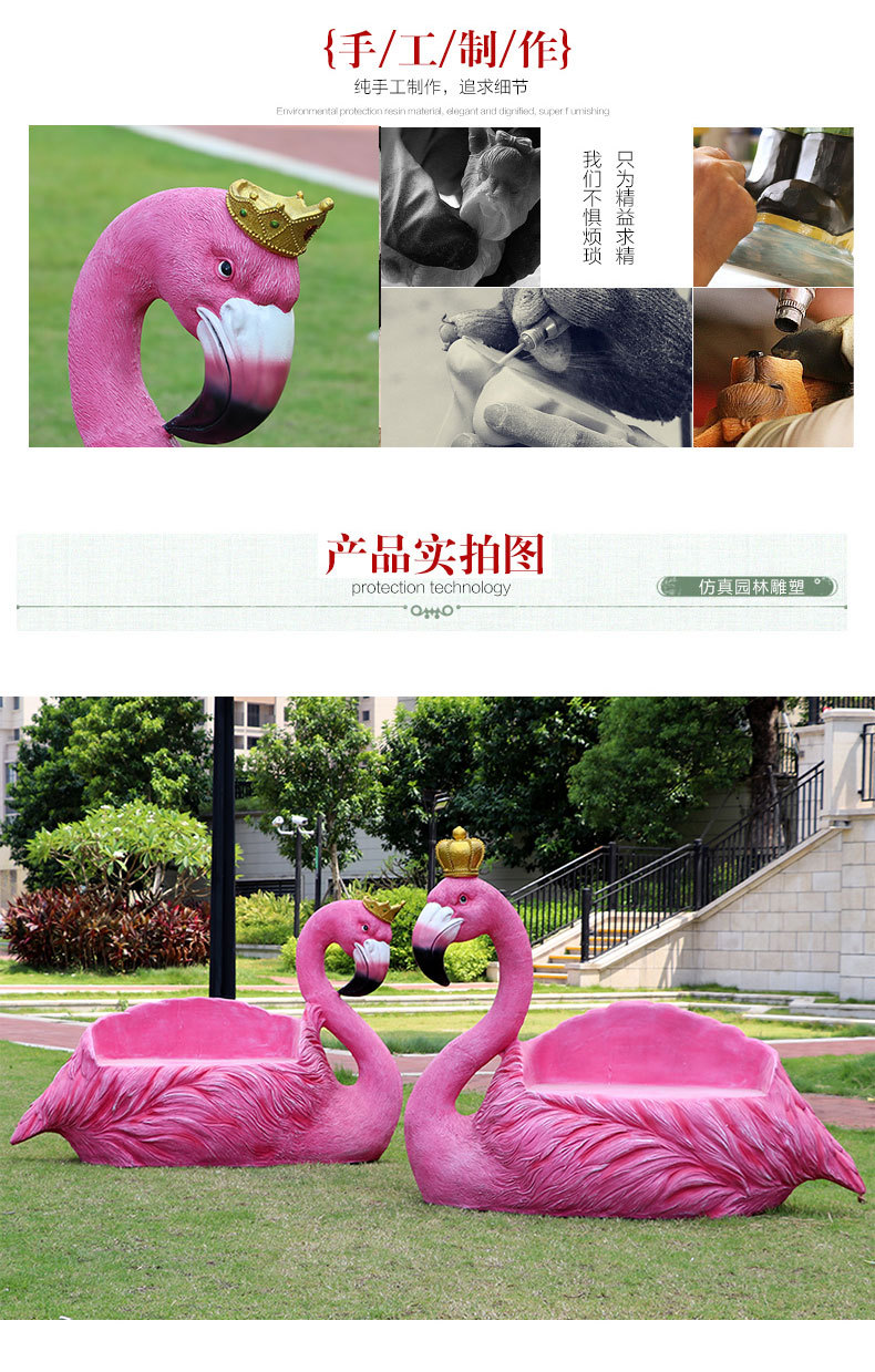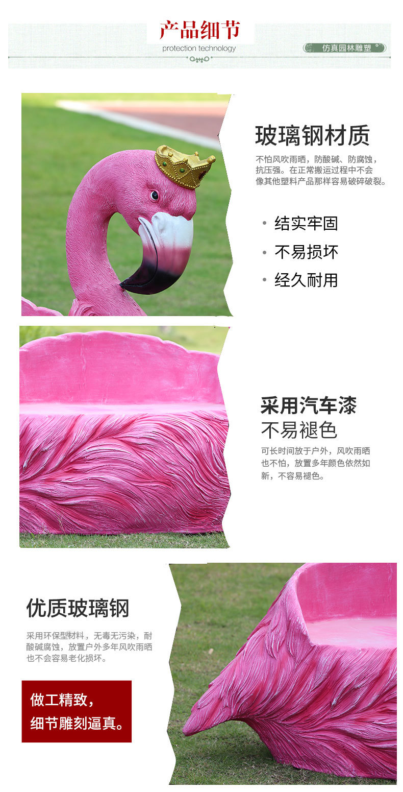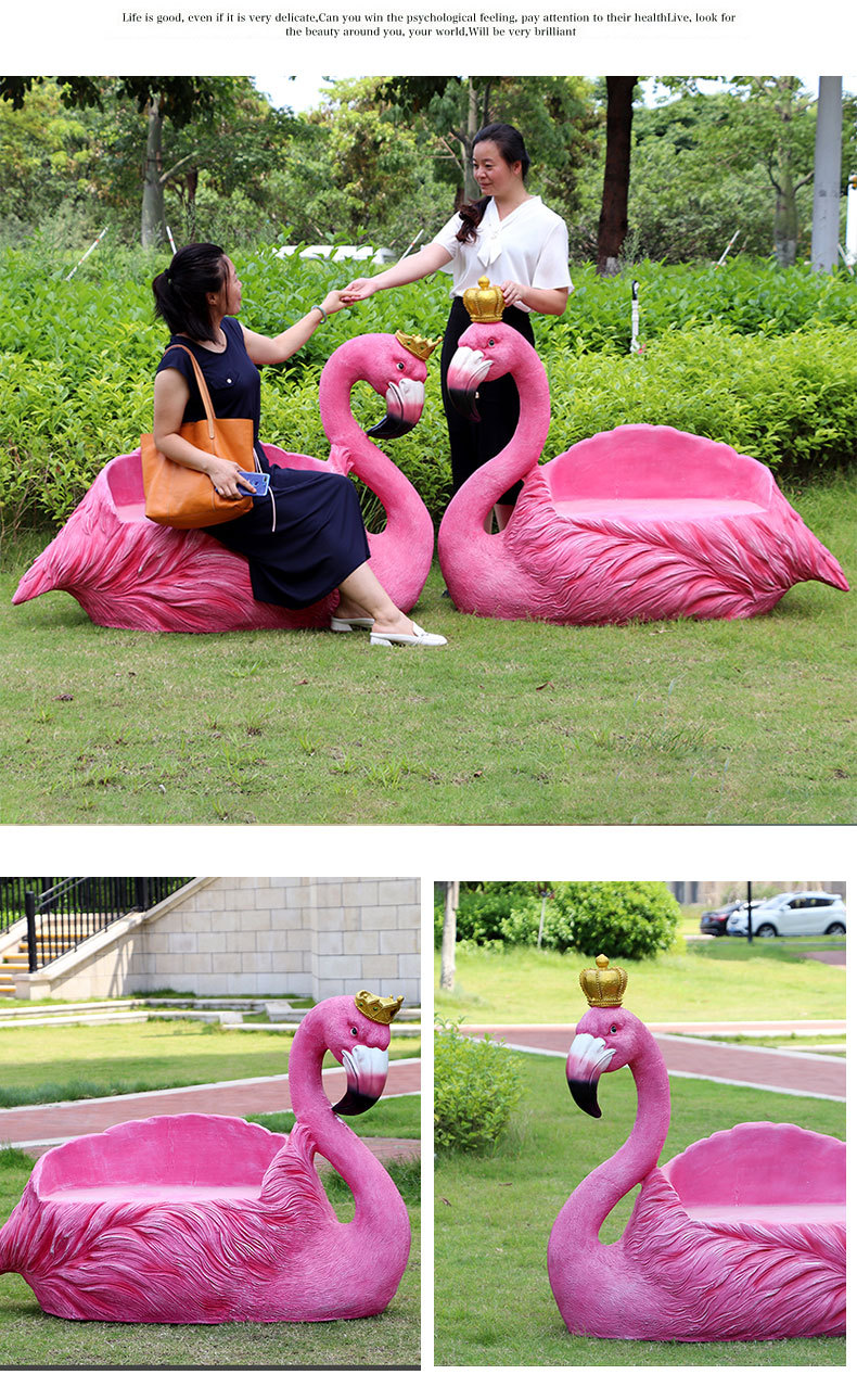 야외 웨딩 온라인 레드 플라밍고 크라운 유리 섬유 강화 플라스틱 조각 경치 명소 펀치 핑크 낭만적 인 공원 장식 좌석