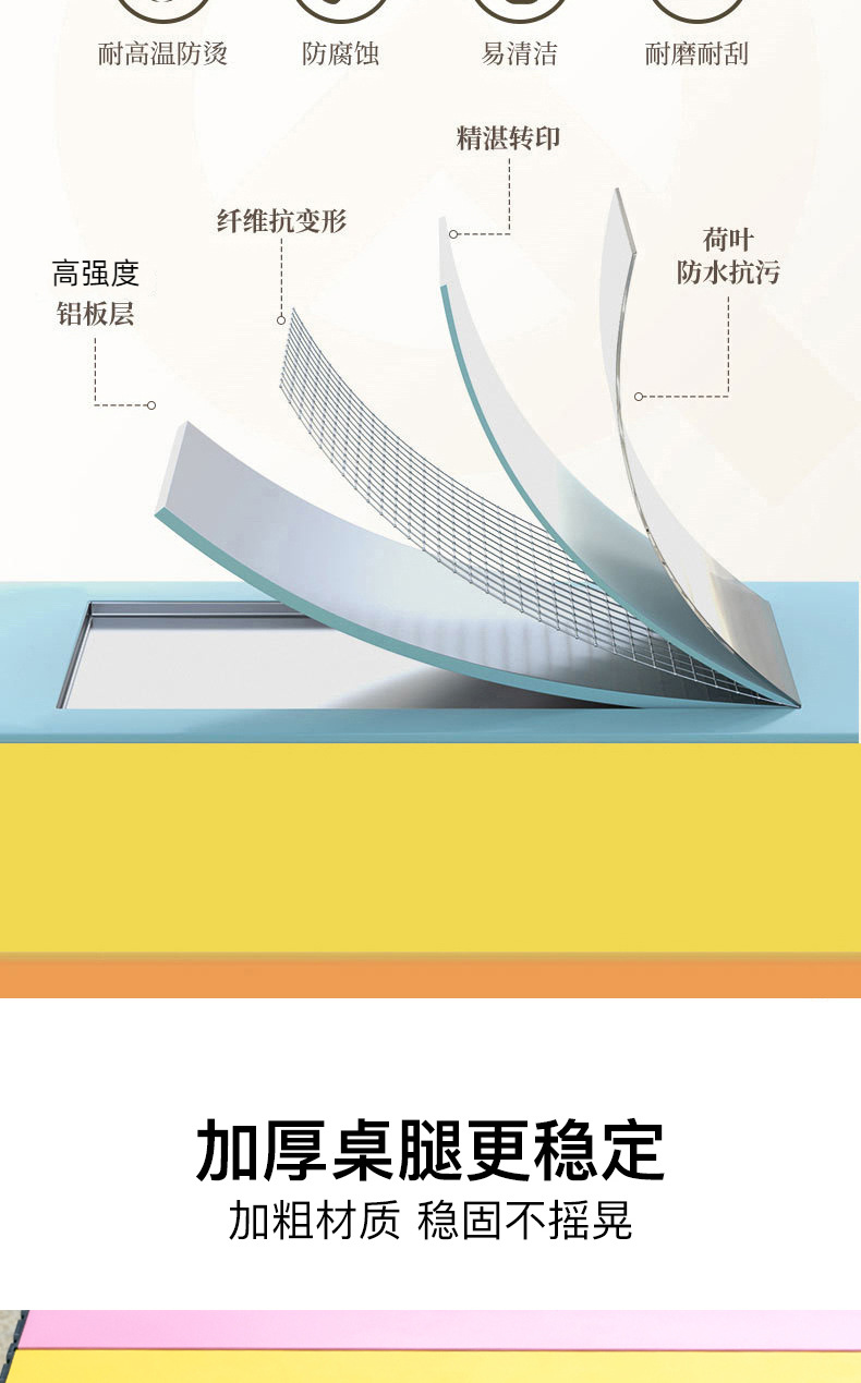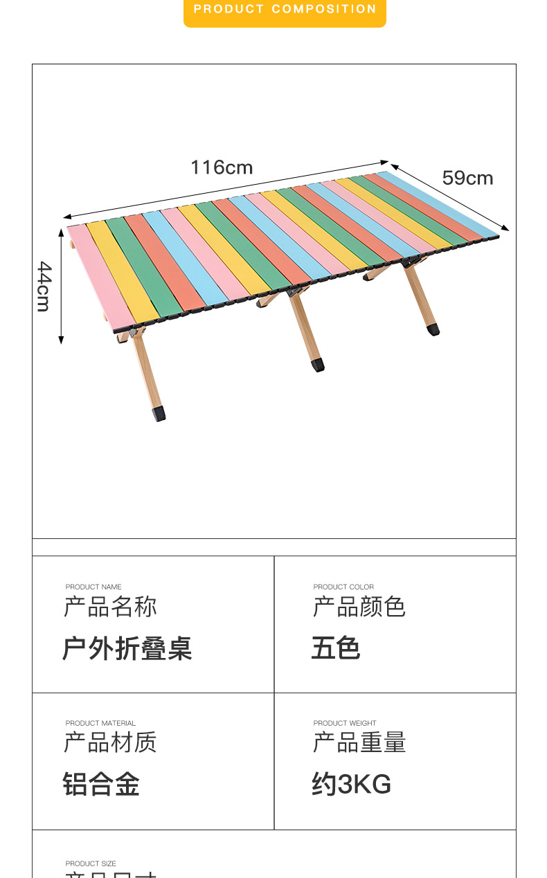 • 중형 알루미늄 합금 계란말이 테이블 [두꺼워지고 들어올릴 수 있음] 레인보우