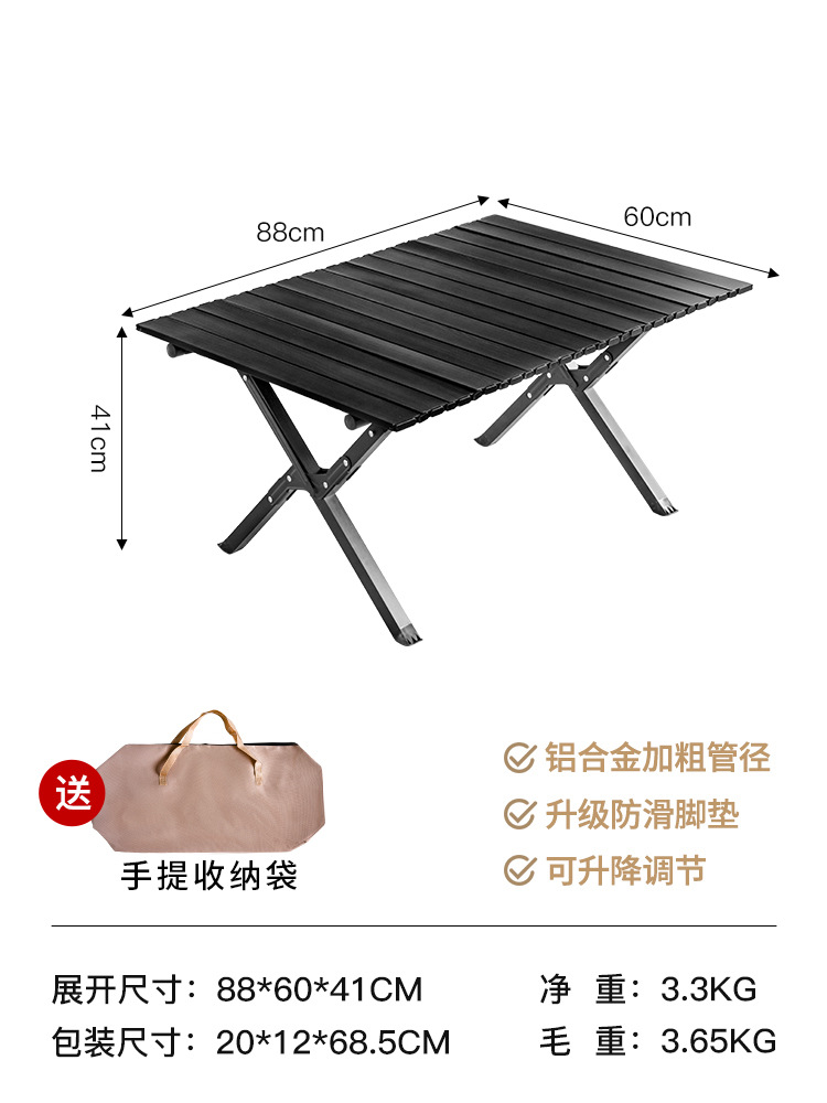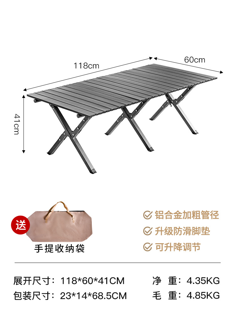 야외 테이블과 의자 울트라 라이트 폴딩 테이블 휴대용 알루미늄 합금 계란 롤 테이블 캠핑 장비 공급 캠핑 피크닉 테이블