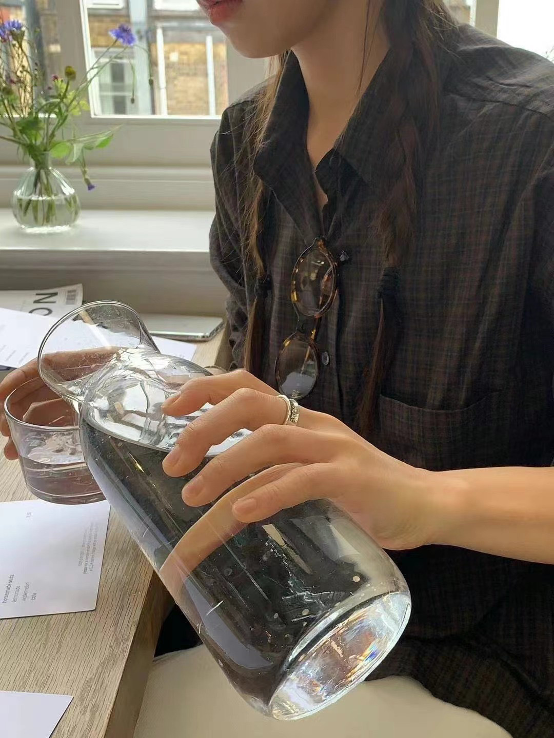 재고 한국 동대문우 * ce 초가을 프랑스 복고풍 긴 소매 격자 셔츠 느슨한 슬림 셔츠스토어 가기