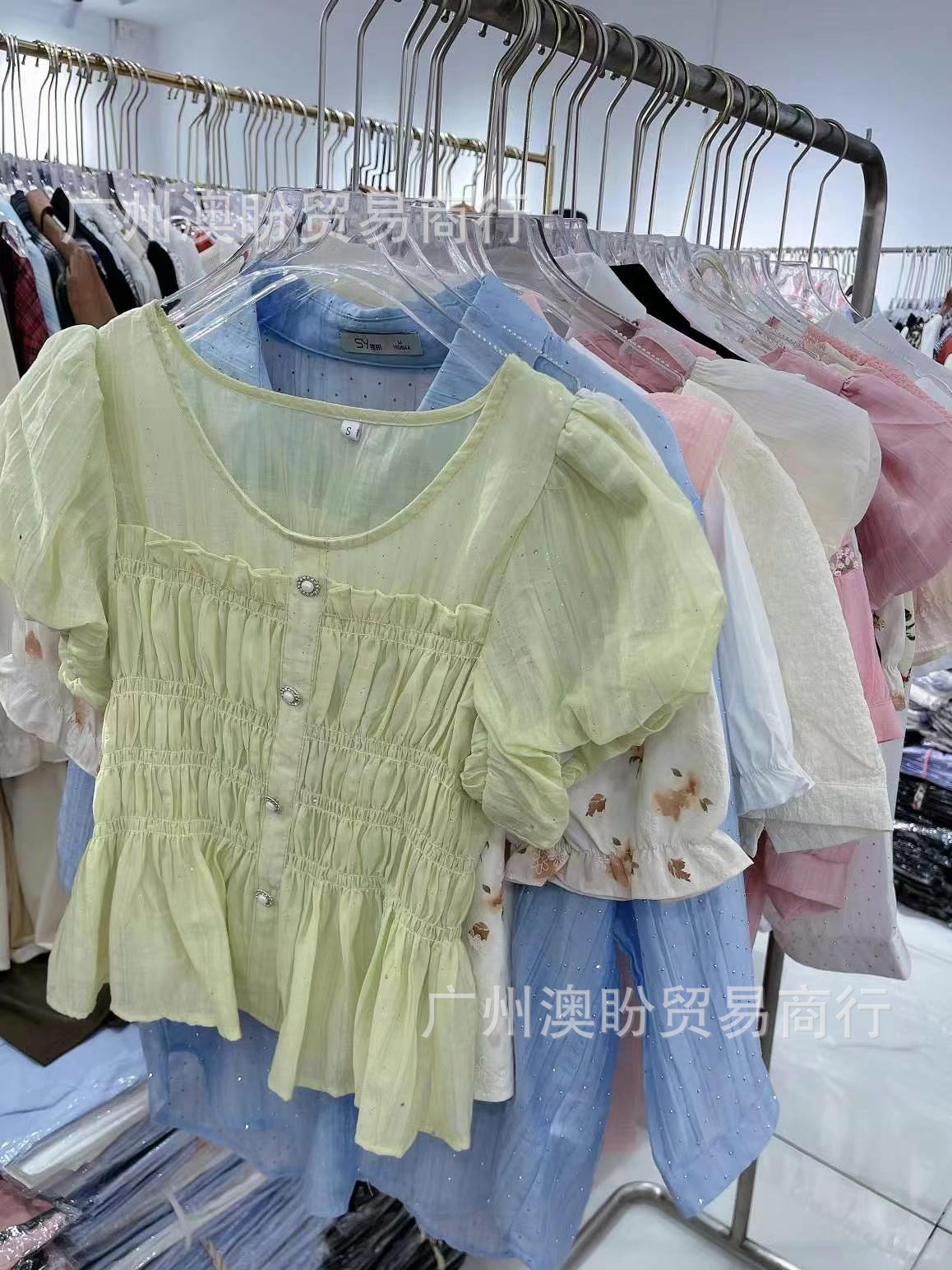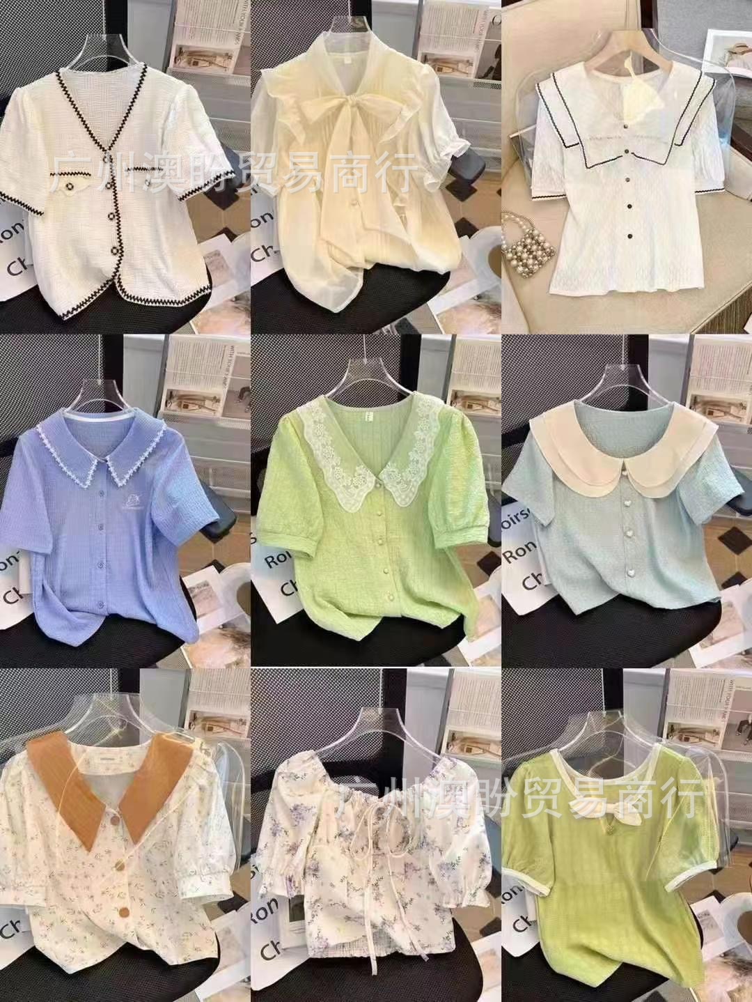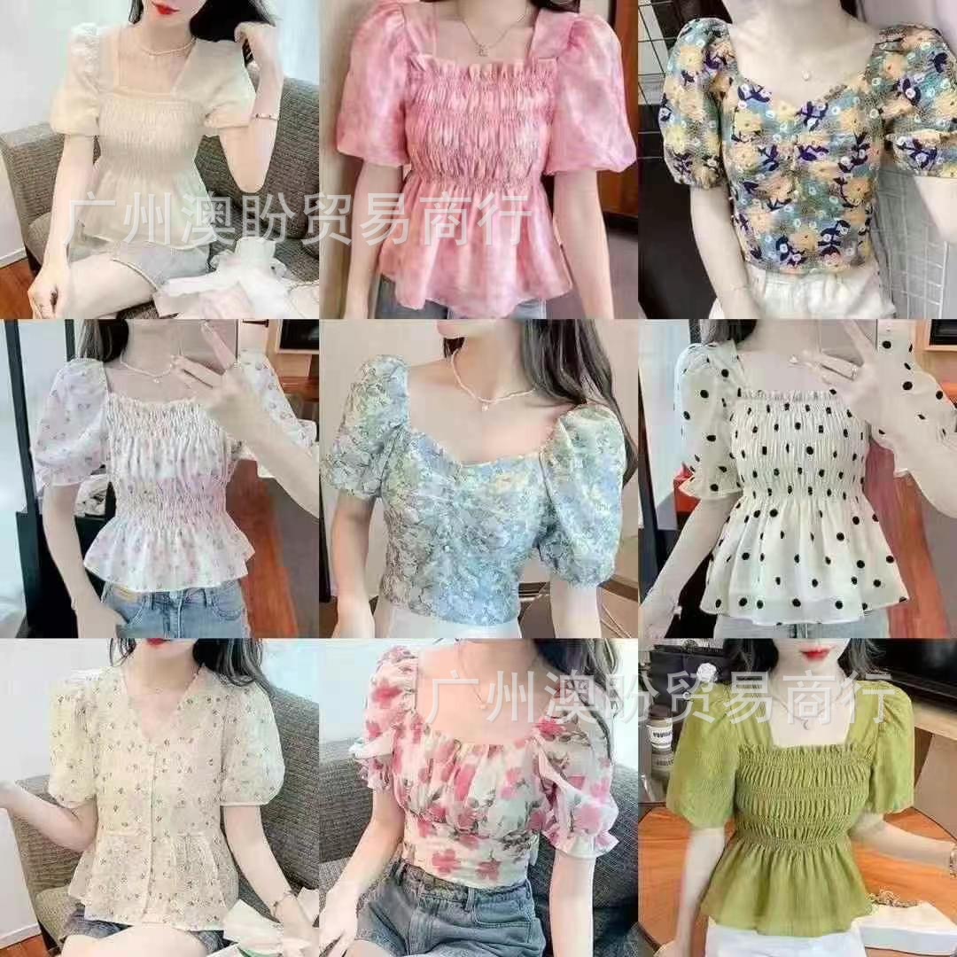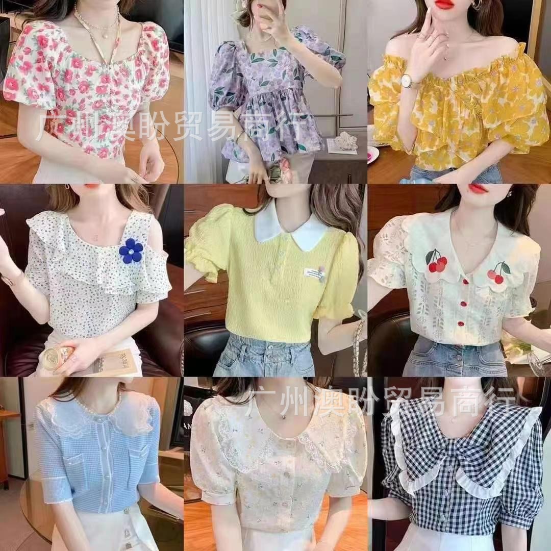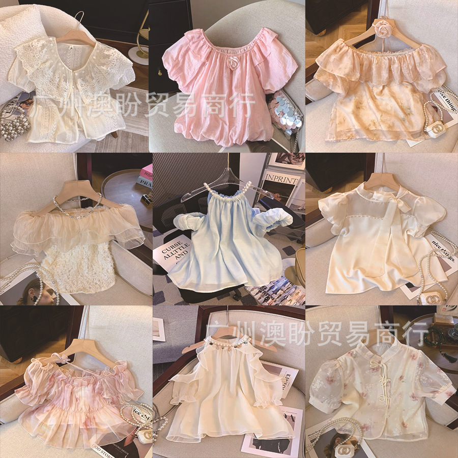 쇼트 탑 여성의 2025 새로운 디자인 센스 틈새 슬림 핏 스파이스 걸스 반팔 쉬폰 셔츠 버블 슬리브 여름 셔츠스토어 가기