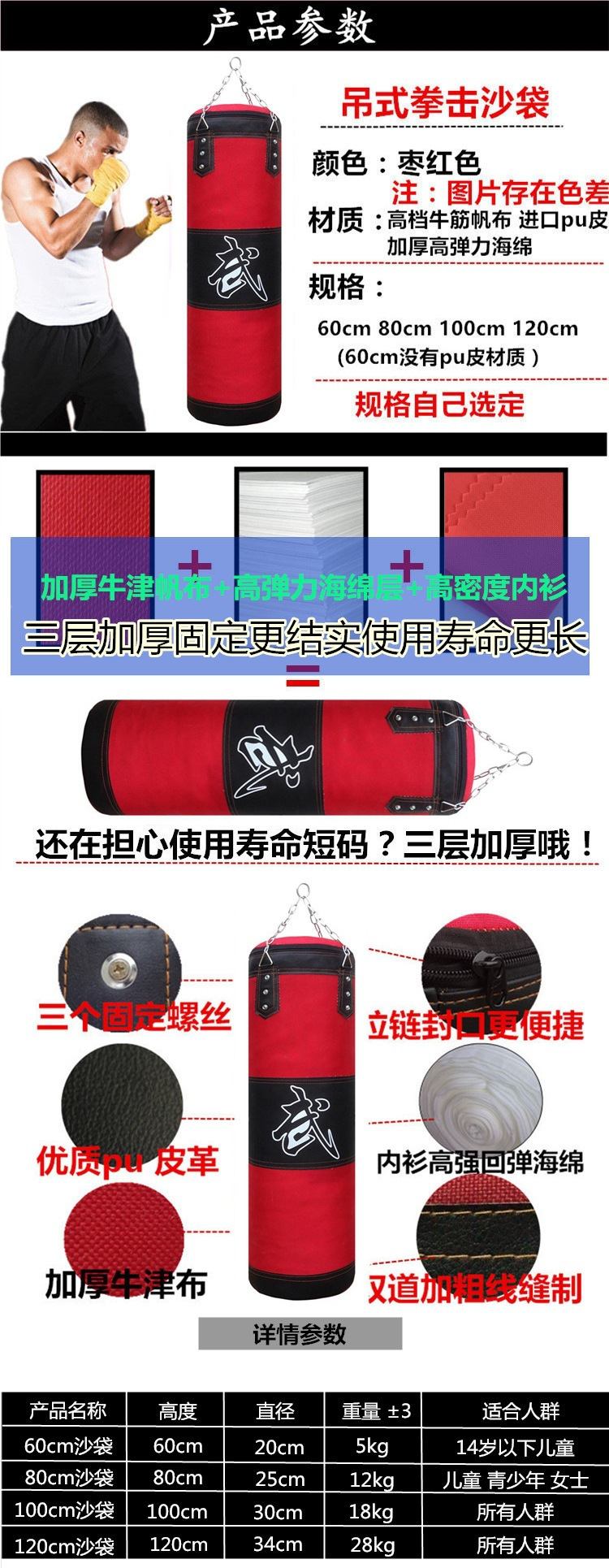 유이 3 층 산다 복싱 샌드백 걸이 솔리드 샌드백 태권도 텀블러 피트니스 성인 어린이 무에타이 복싱