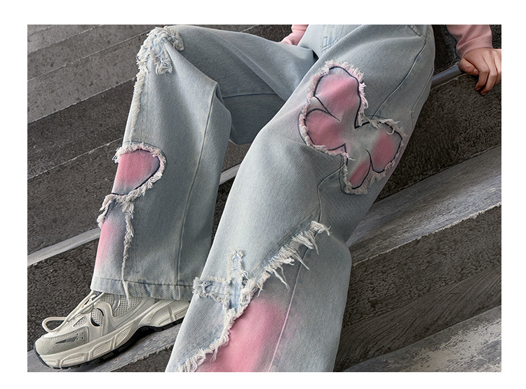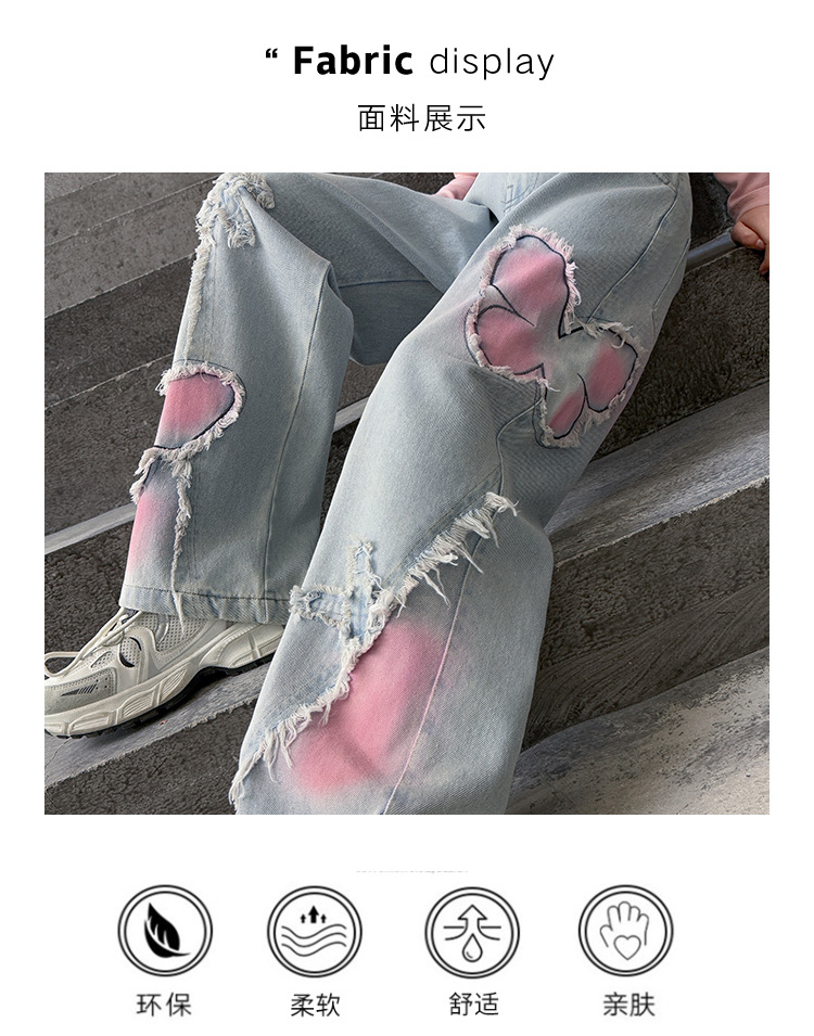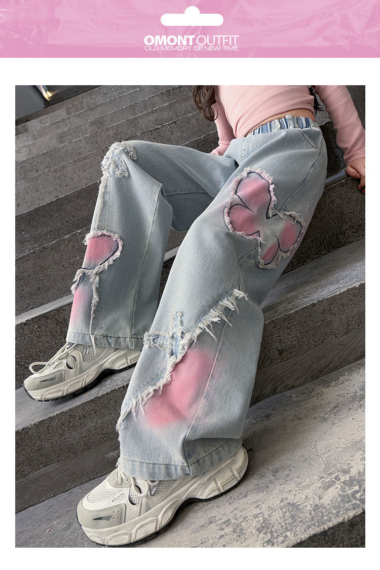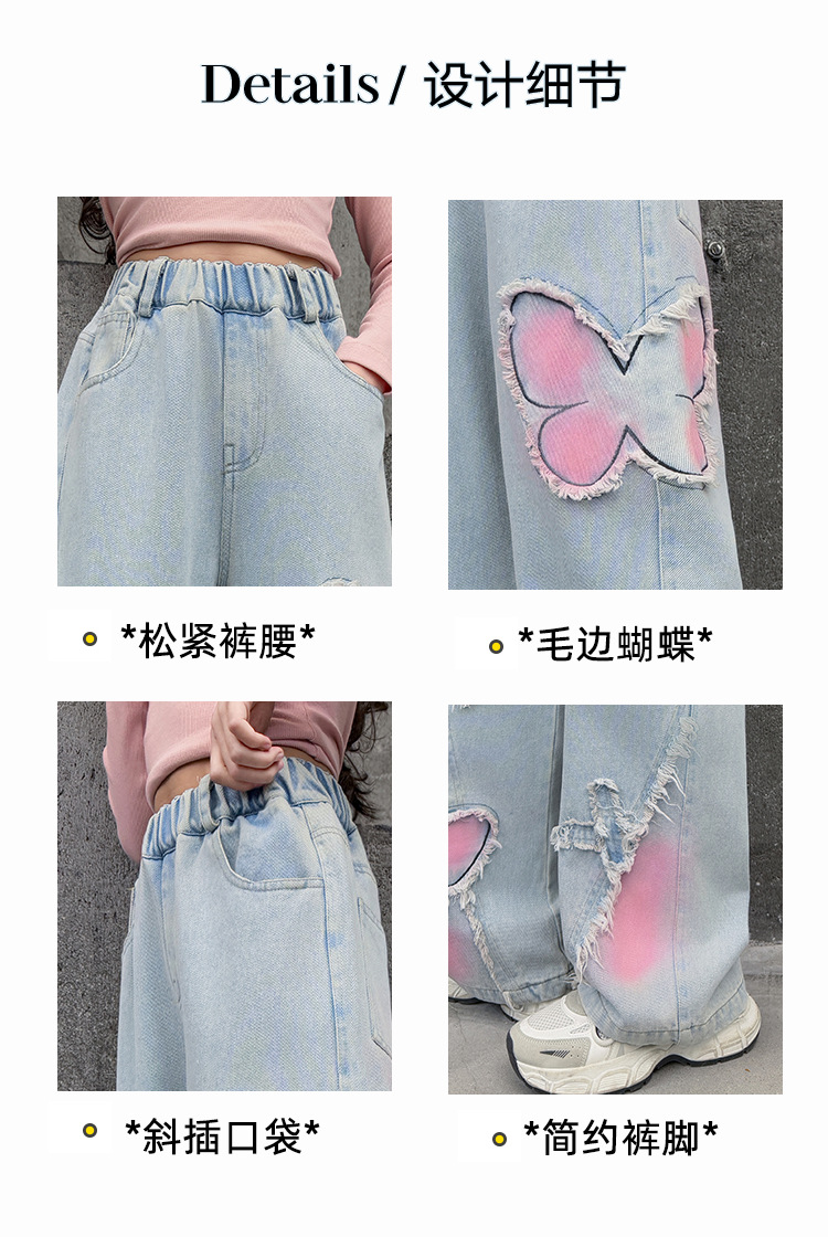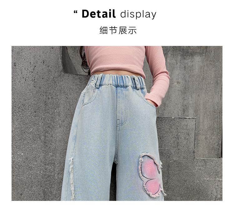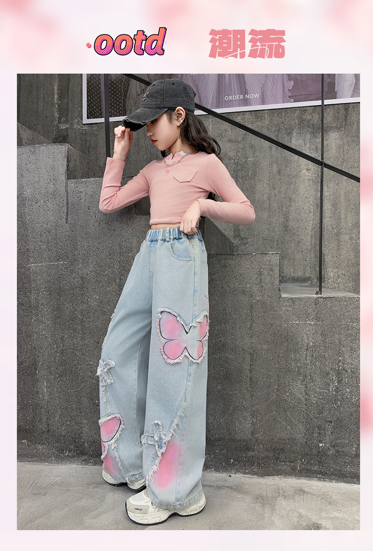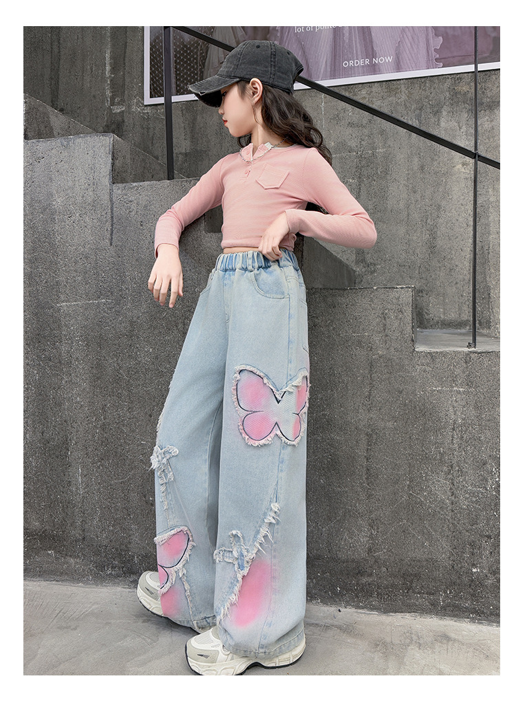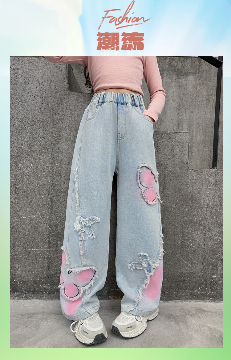 소녀의 봄과 가을 바지 2025 새로운 청바지 어린이 패셔너블 와이드 레그 팬츠 소녀 맞춤형 스트리트 프라이드 트렌디 스타일스토어 가기