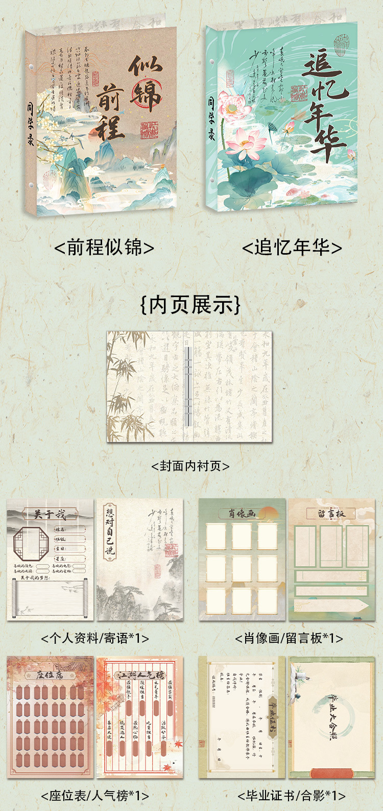 备注:批发同学录均不含卡册内页,如有需要可另外加购