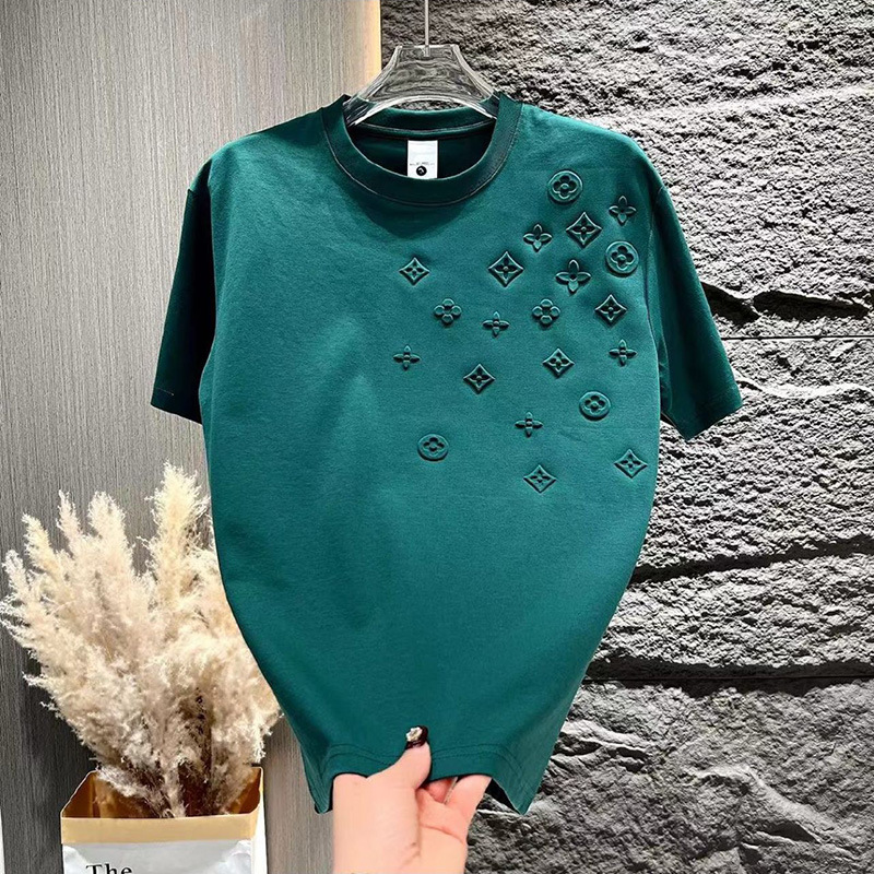 남성 여름 새로운 패션 브랜드 인쇄 캐주얼 반팔 청소년 패션 라운드 넥 올 매치 반소매 티셔츠 단색 티셔츠스토어 가기