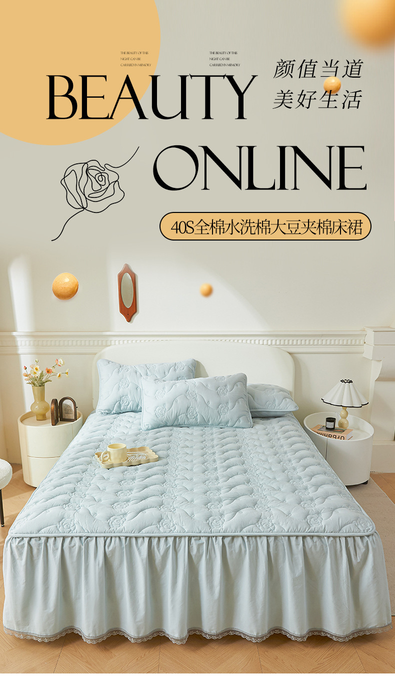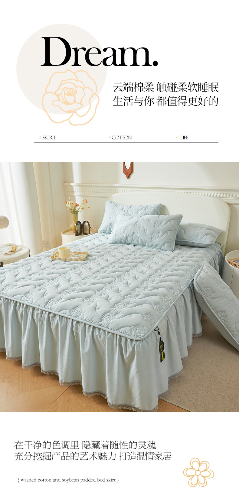 클래스 A 순면 세척 코튼 퀼트 베드 스커트 라이트 럭셔리 모성 및 유아 두꺼운 풀 랩 레이스 침대보 침실스토어 가기