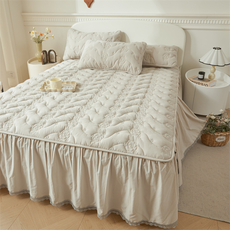 클래스 A 순면 세척 코튼 퀼트 베드 스커트 라이트 럭셔리 모성 및 유아 두꺼운 풀 랩 레이스 침대보 침실