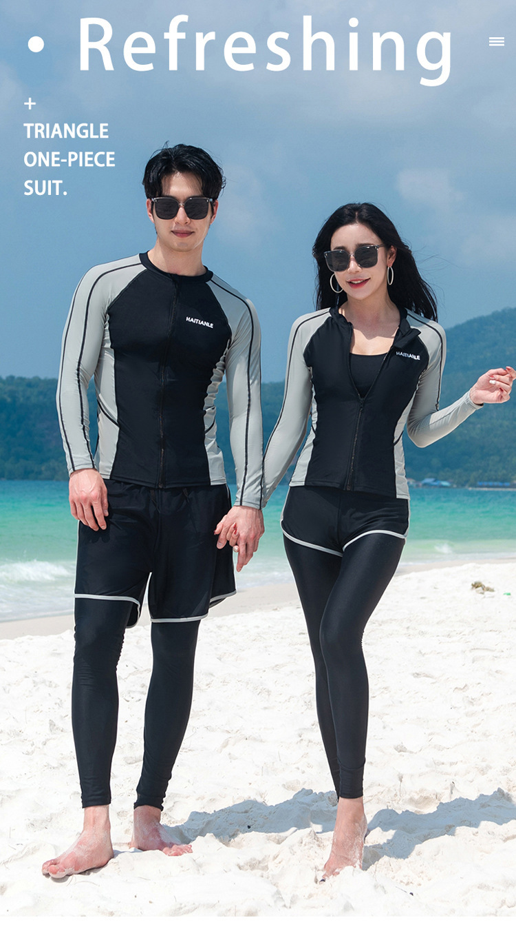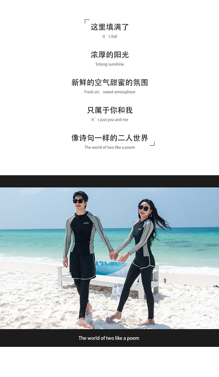 뉴 남자와 여자 커플 다이빙 세트 세트 긴팔 바지 선 스크린 세트 패션 컬러 매칭 비치 온천스토어 가기