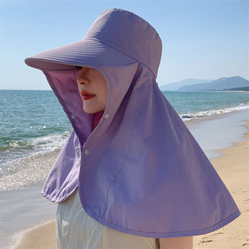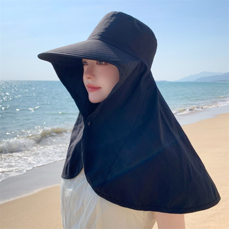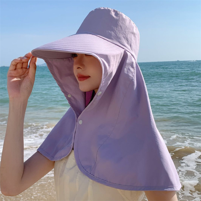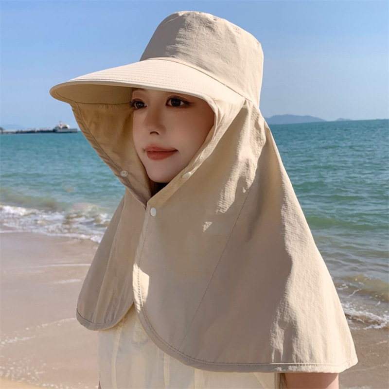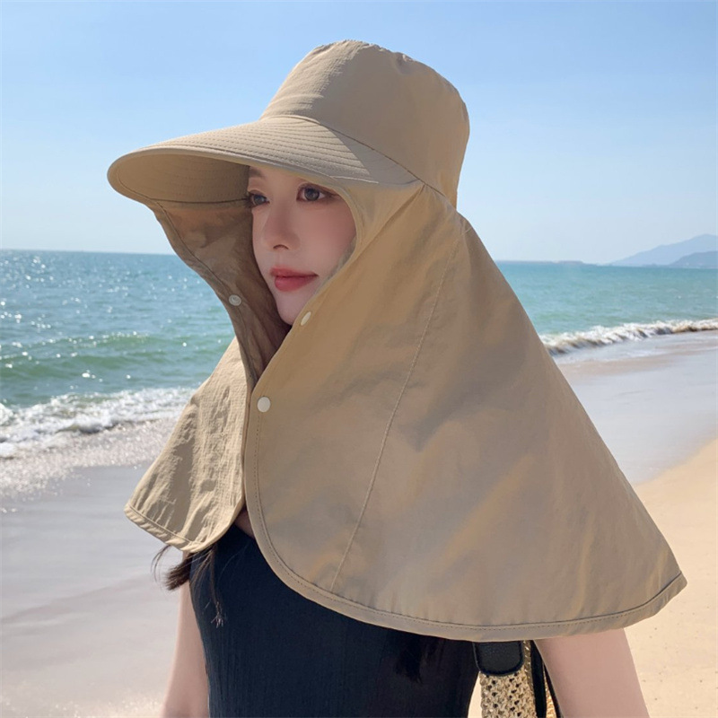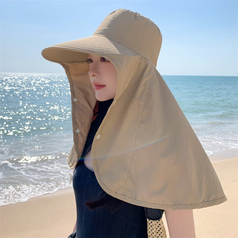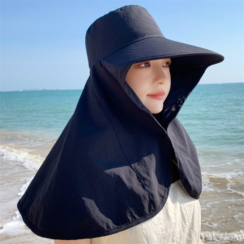 큰 목도리 선스크린 태양 모자 여름 여성의 통합 태양 모자 야외 대형 브림 UV 보호 승마 모자