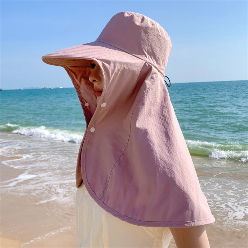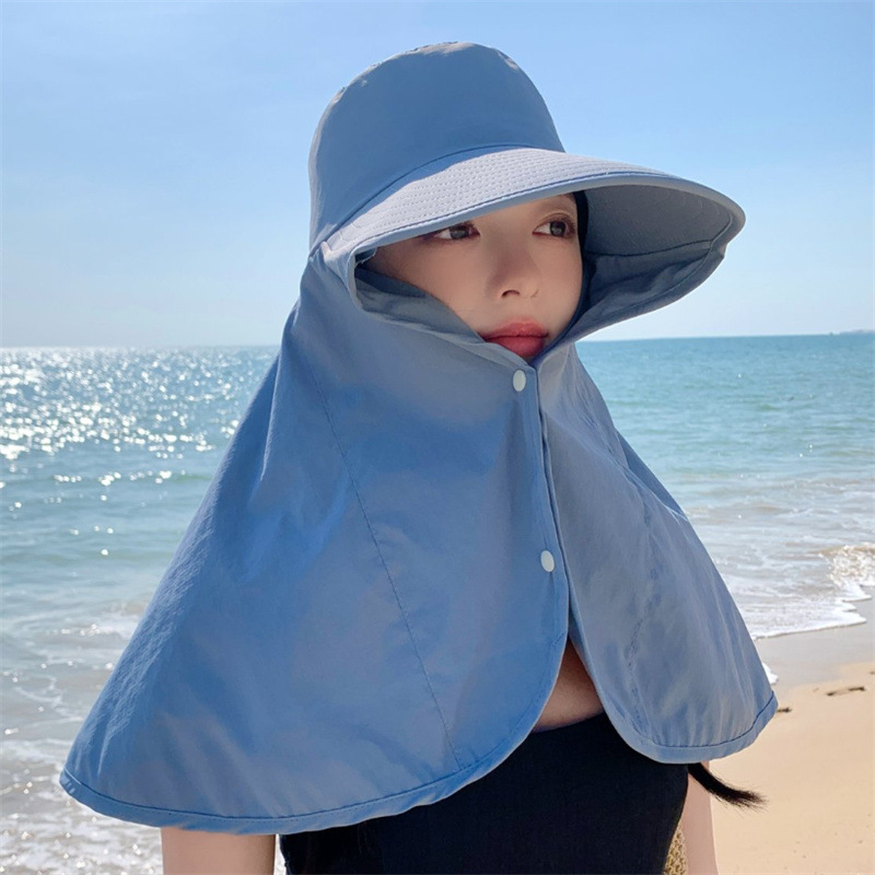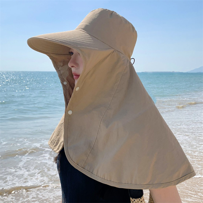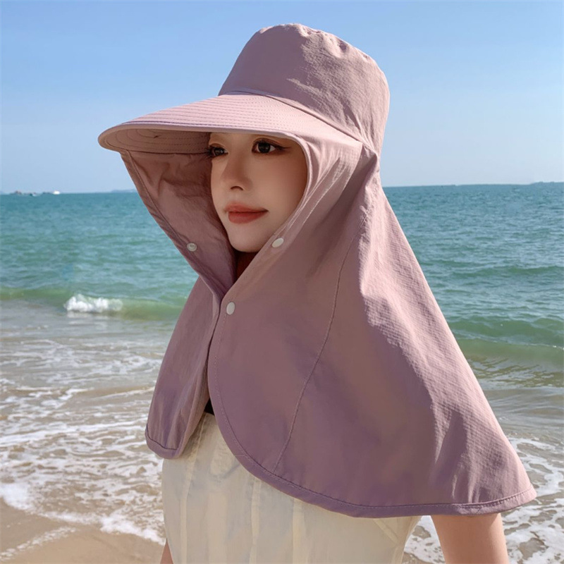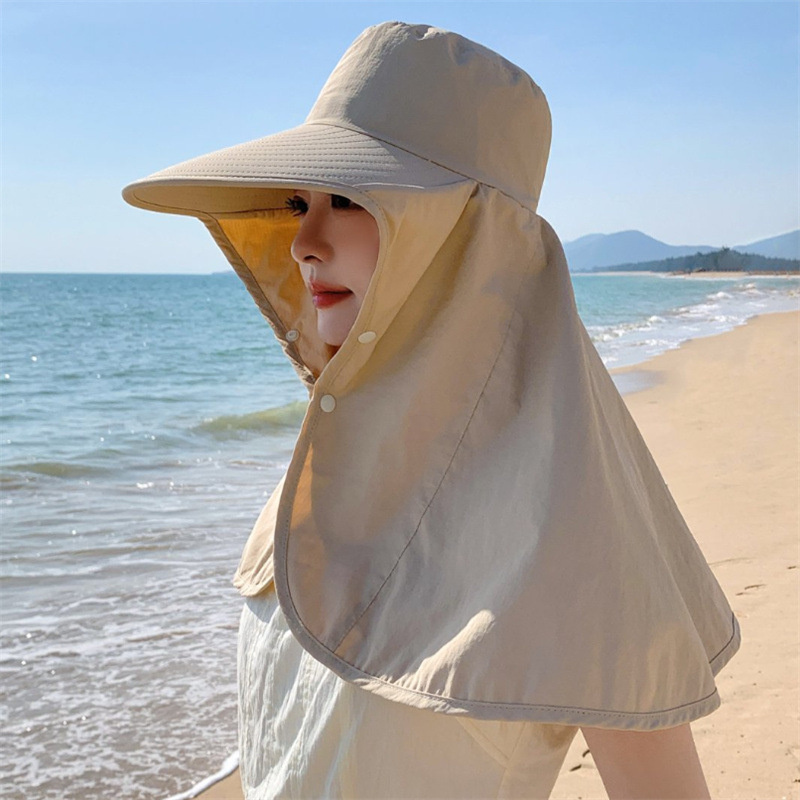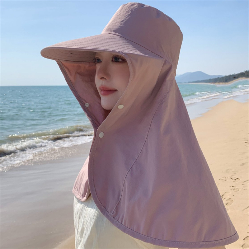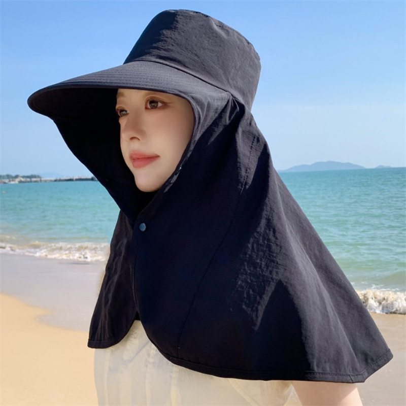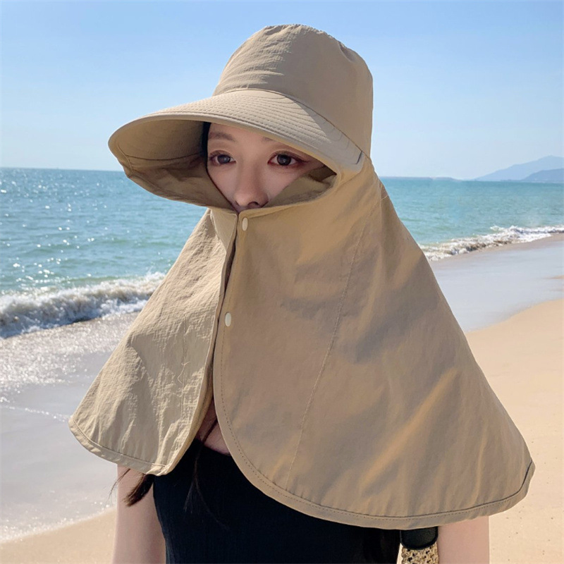 큰 목도리 선스크린 태양 모자 여름 여성의 통합 태양 모자 야외 대형 브림 UV 보호 승마 모자