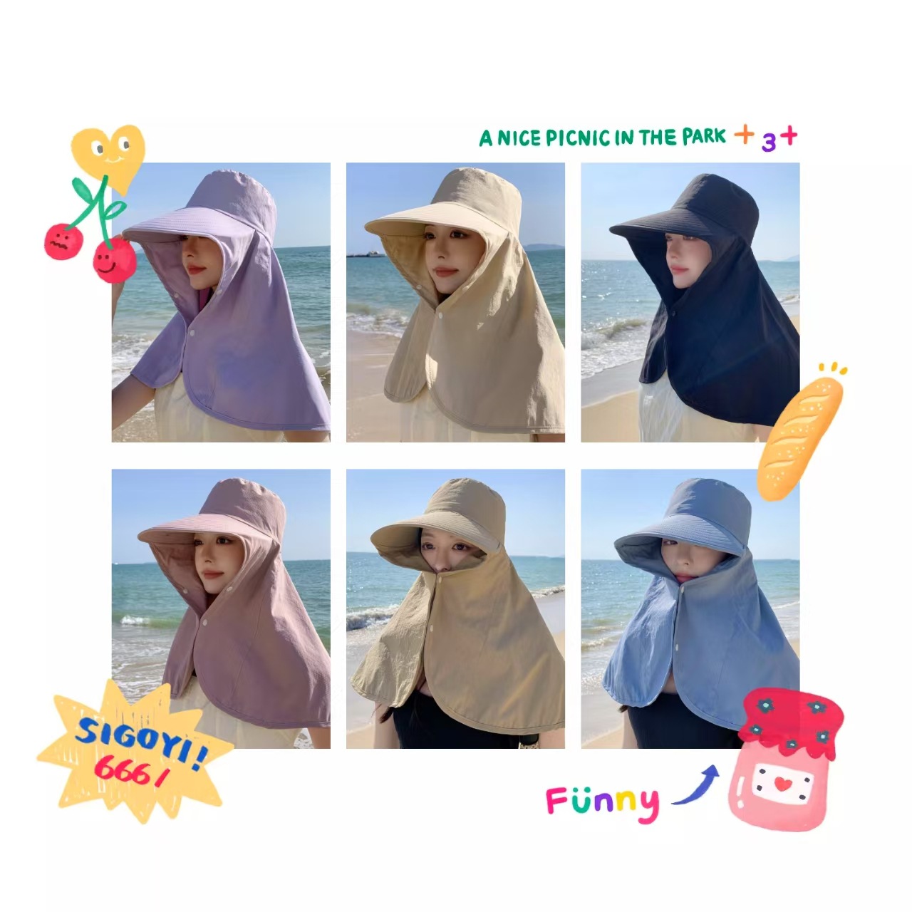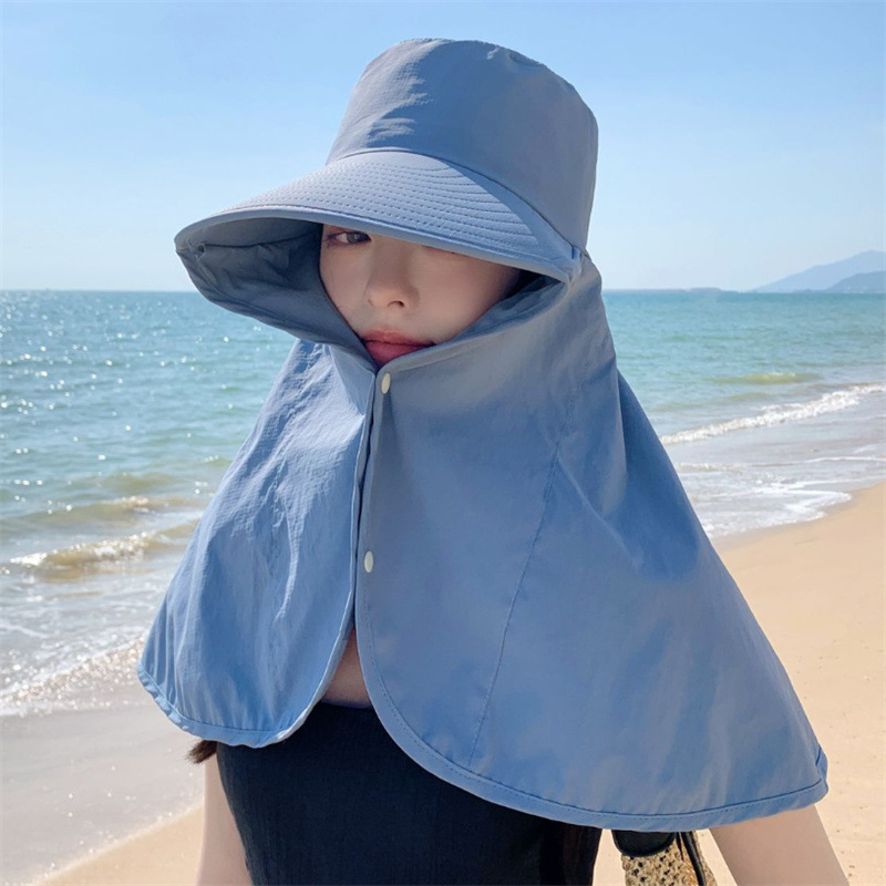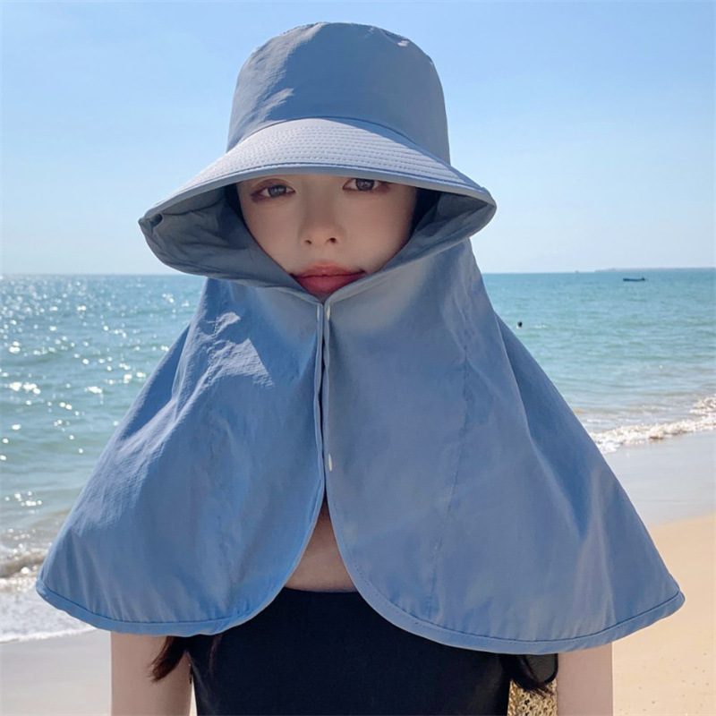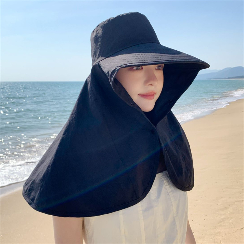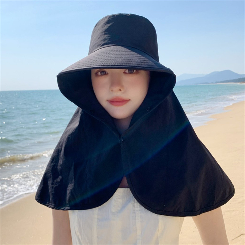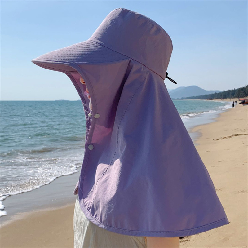 큰 목도리 선스크린 태양 모자 여름 여성의 통합 태양 모자 야외 대형 브림 UV 보호 승마 모자