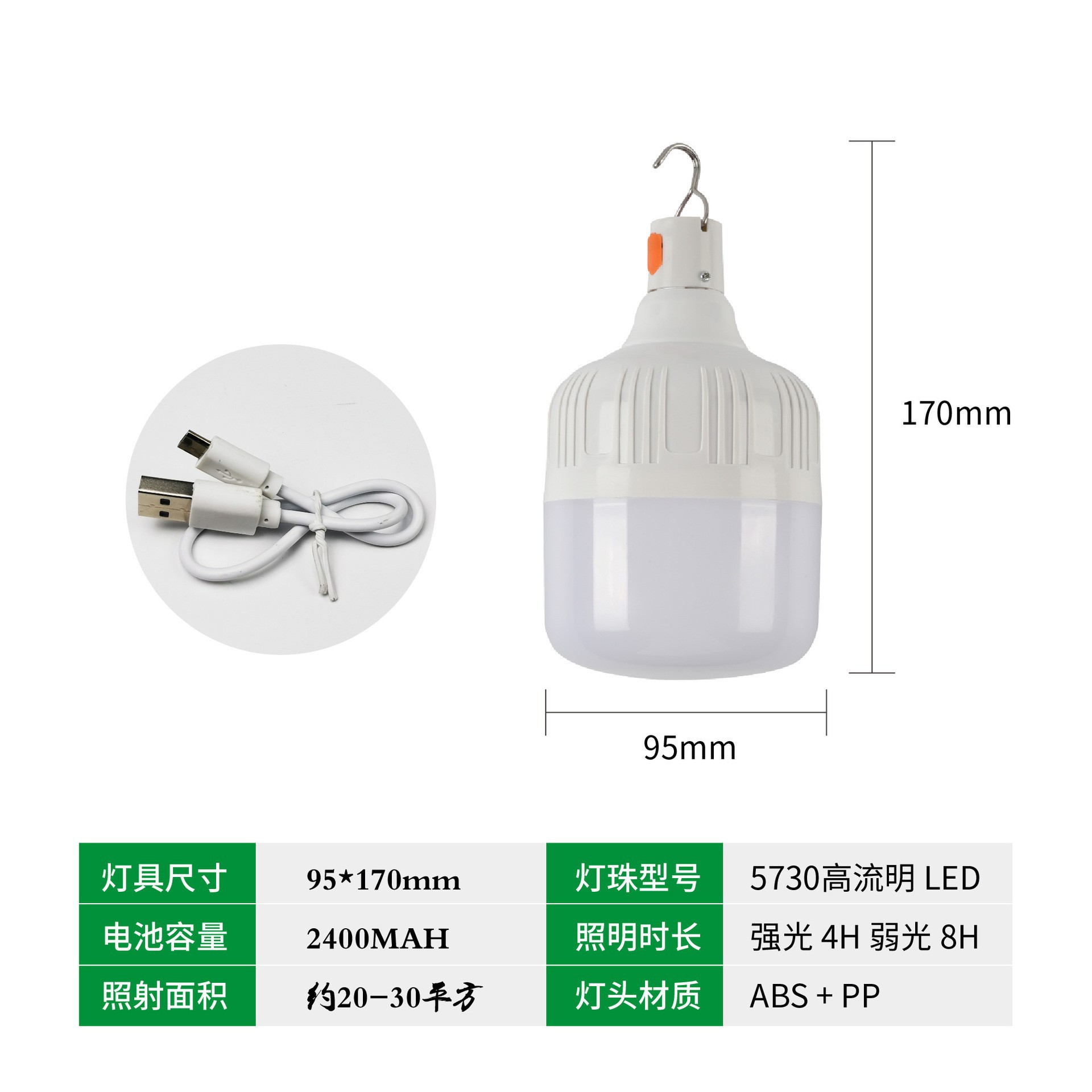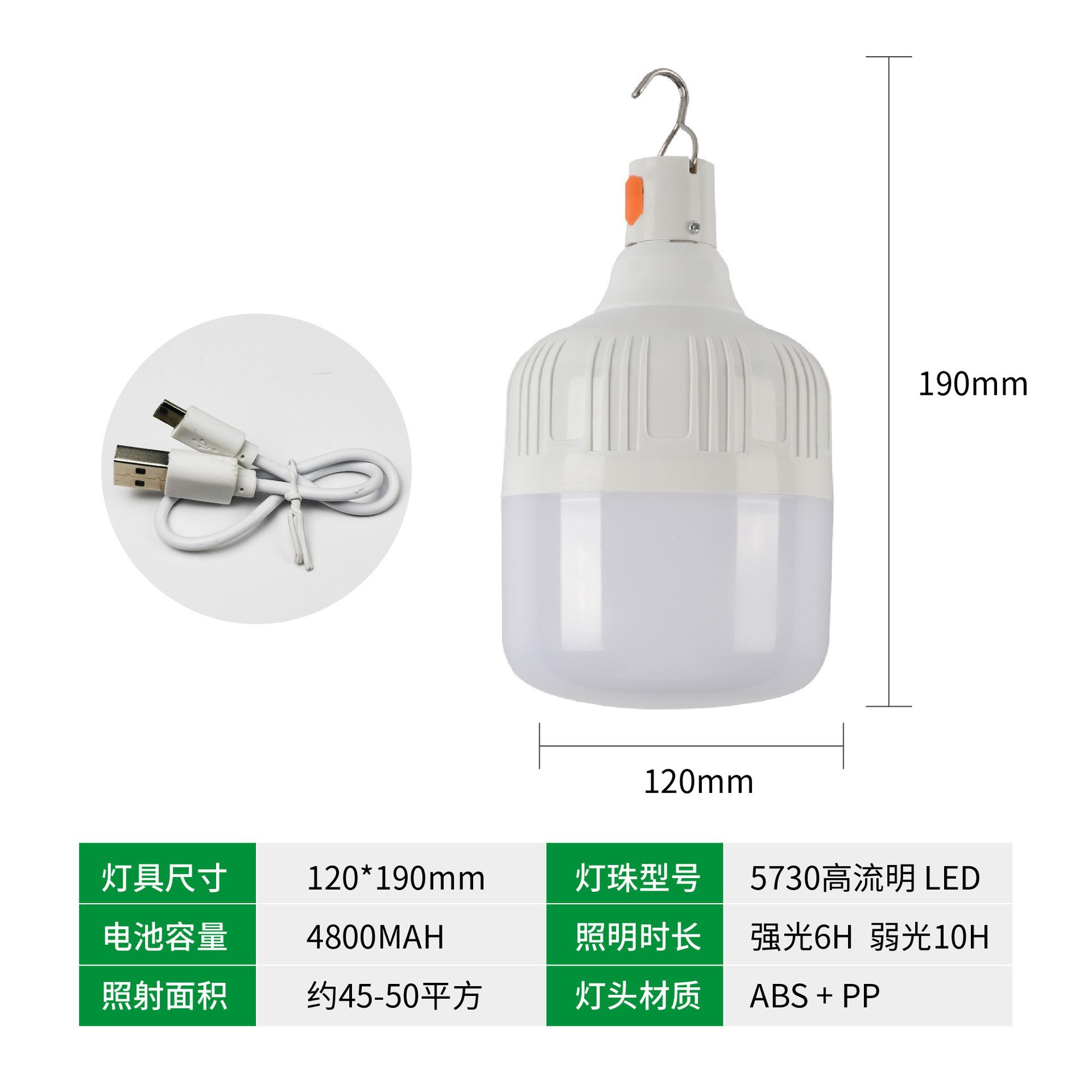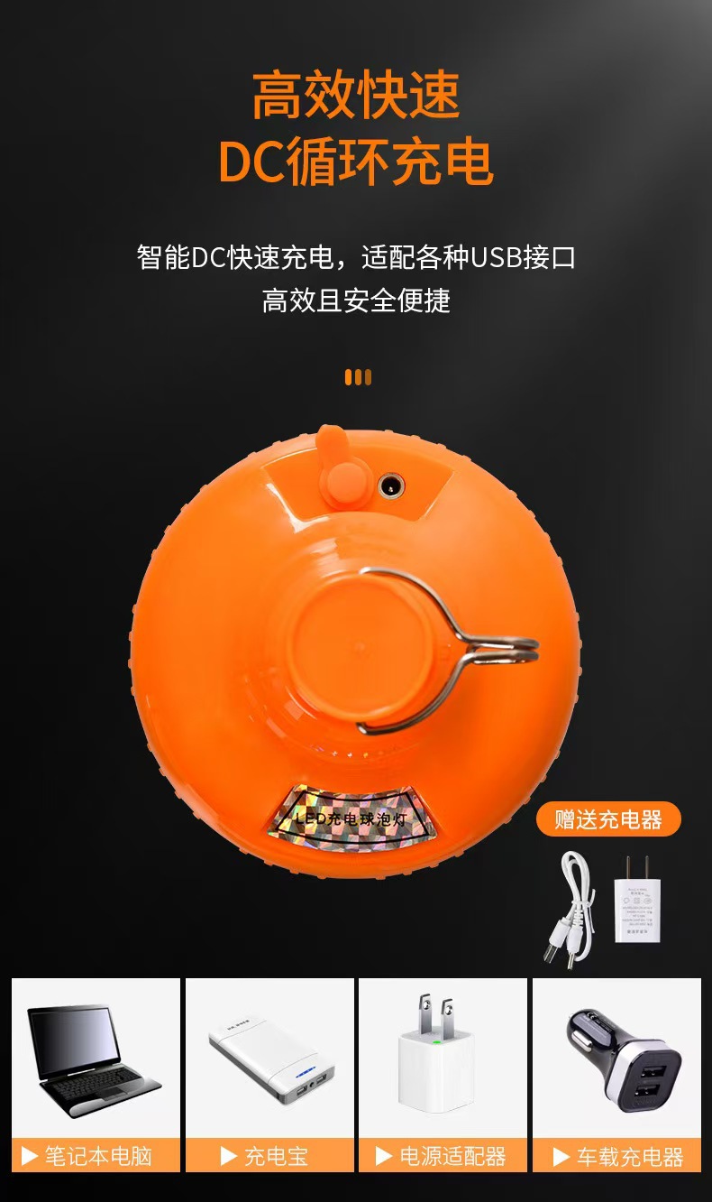 Led 충전식 램프 비상 Gao Fushuai 전구 야외 야시장 조명 마구간 방수 USB 충전 비상 전구