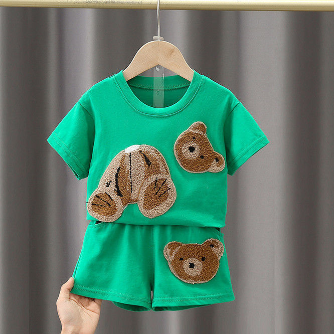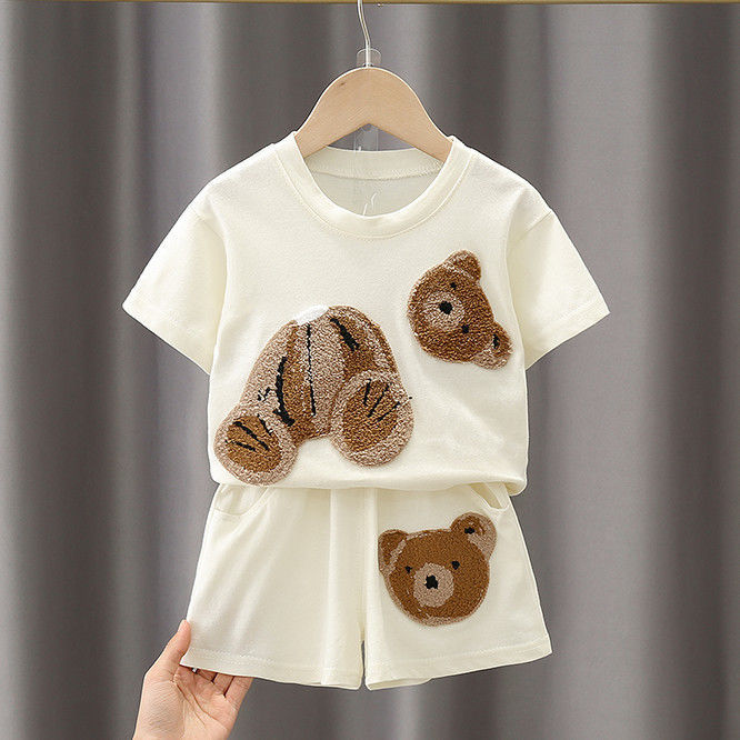 여자 세트 여름 새로운 2025 여름 아기 투피스 캐주얼 만화 반팔 어린이 스포츠웨어 트렌디스토어 가기