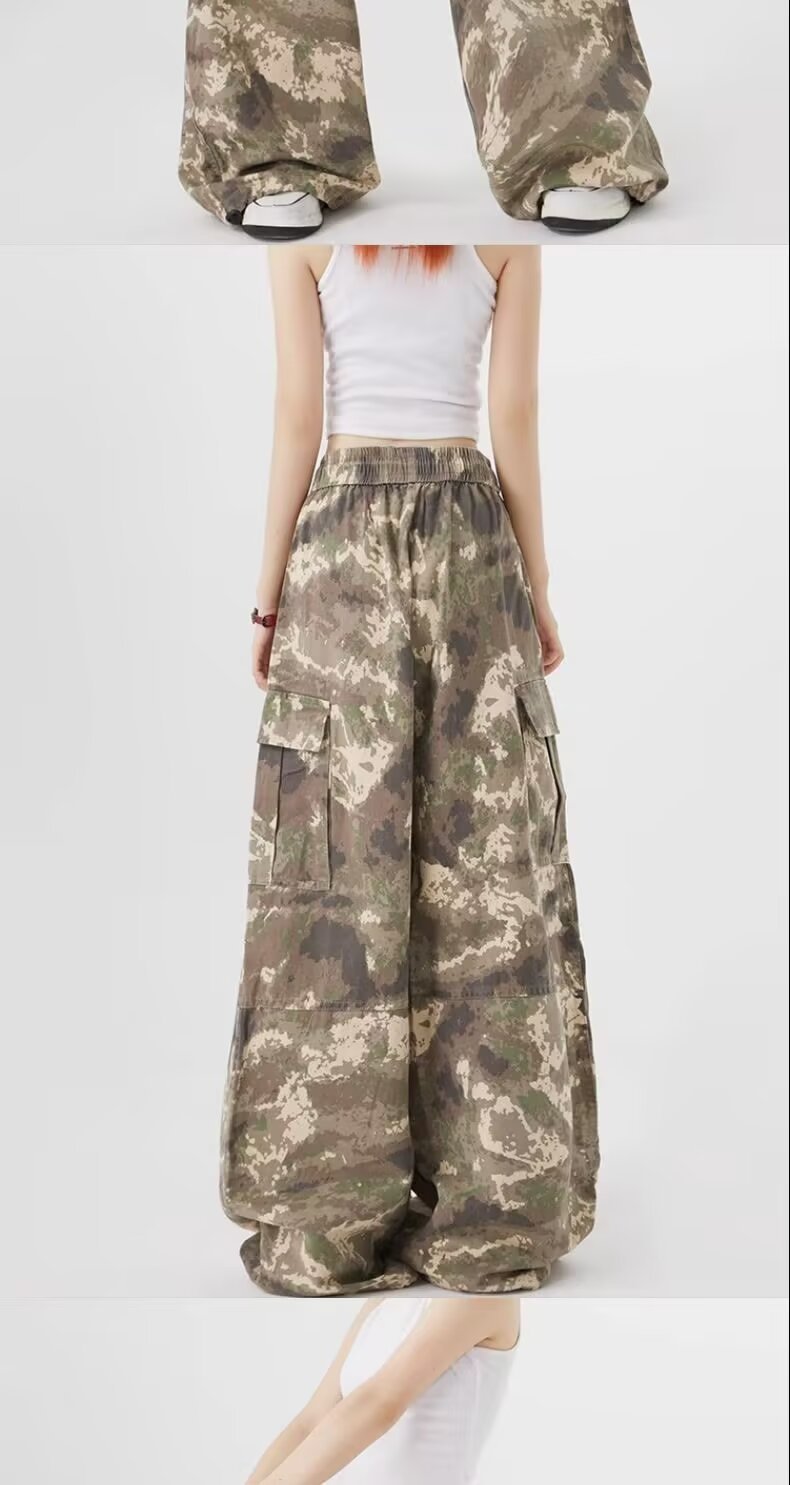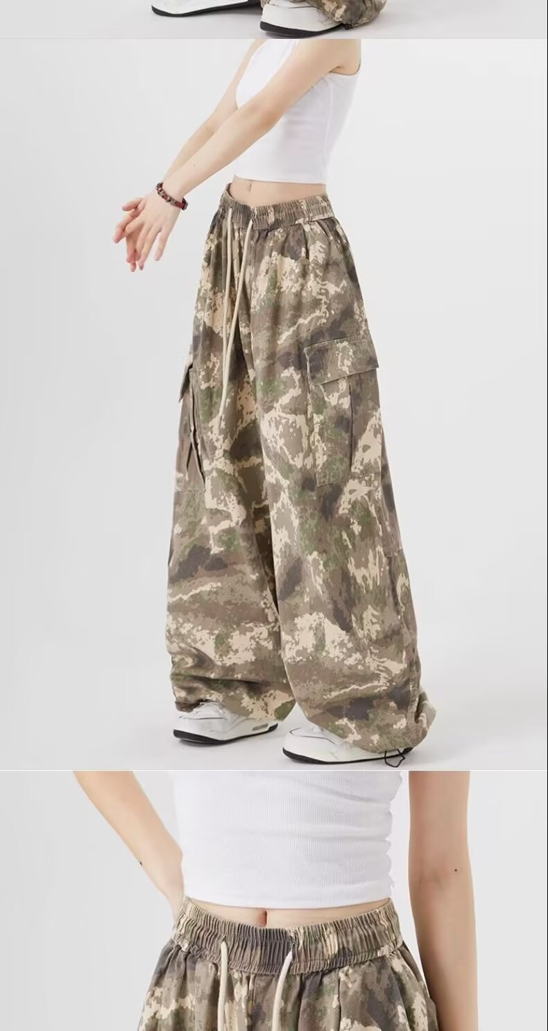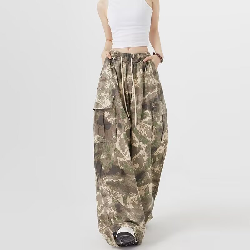 2024 새로운 hiphop 미국 복고풍 높은 허리 위장 바지 여성용 핫 소녀 하이 스트리트 힙합 느슨한 넓은 다리 바지스토어 가기