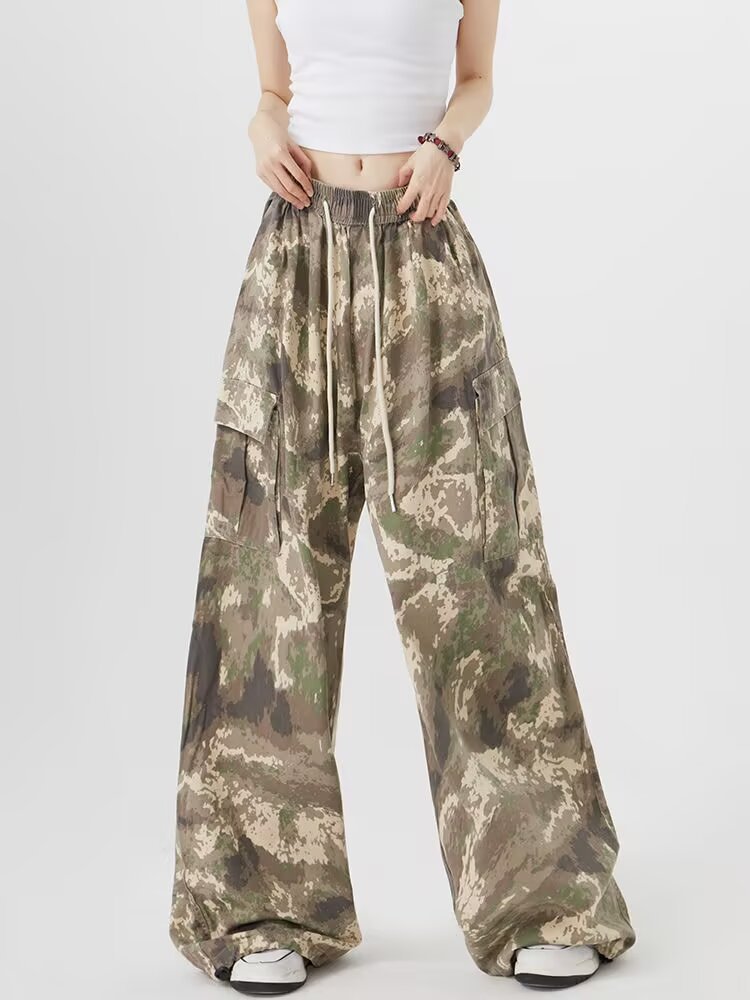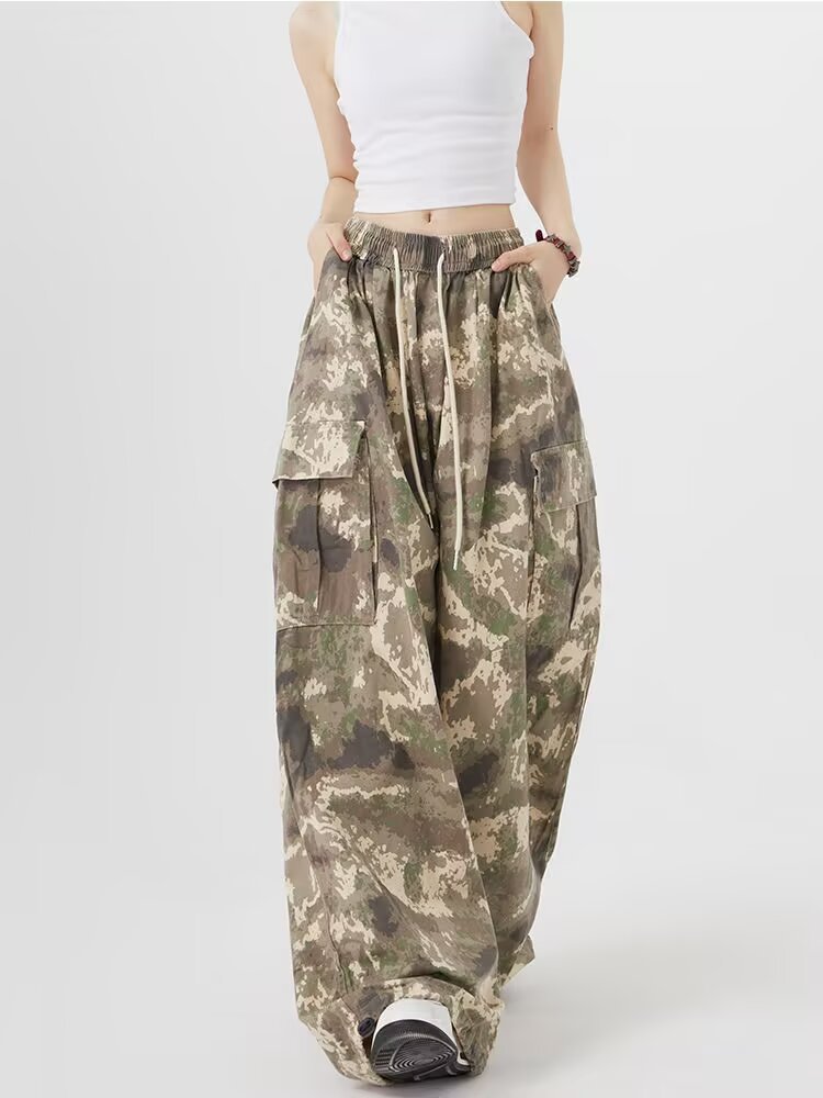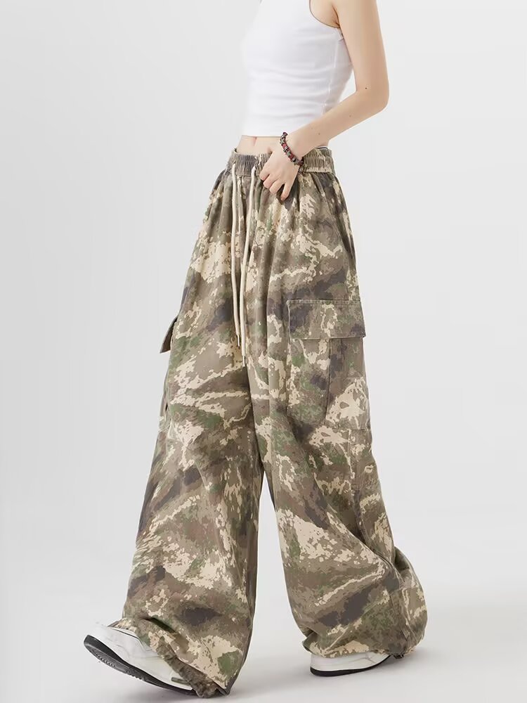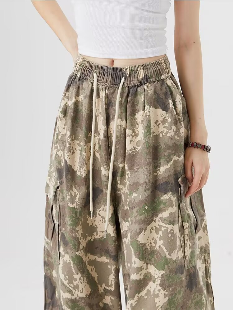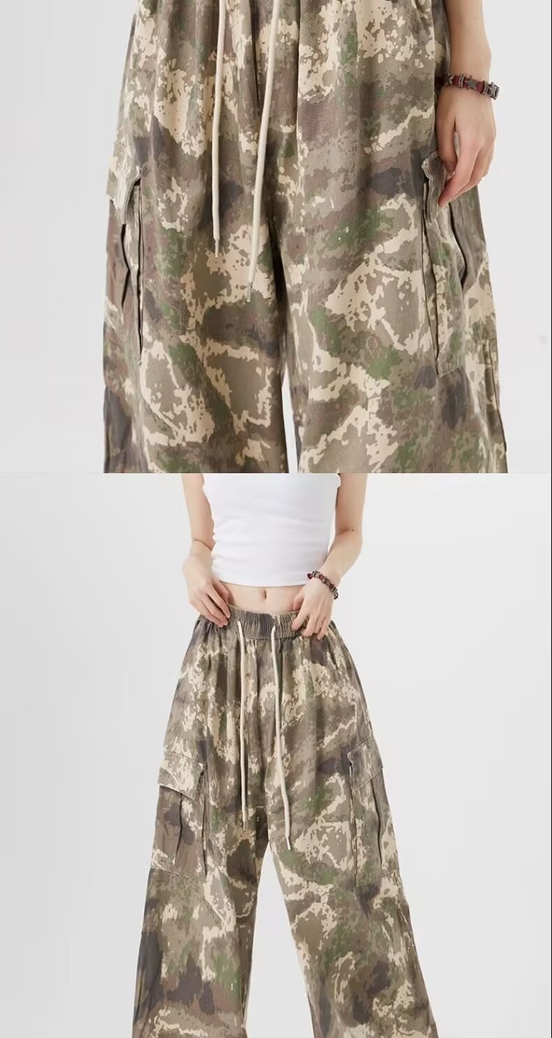 2024 새로운 hiphop 미국 복고풍 높은 허리 위장 바지 여성용 핫 소녀 하이 스트리트 힙합 느슨한 넓은 다리 바지스토어 가기