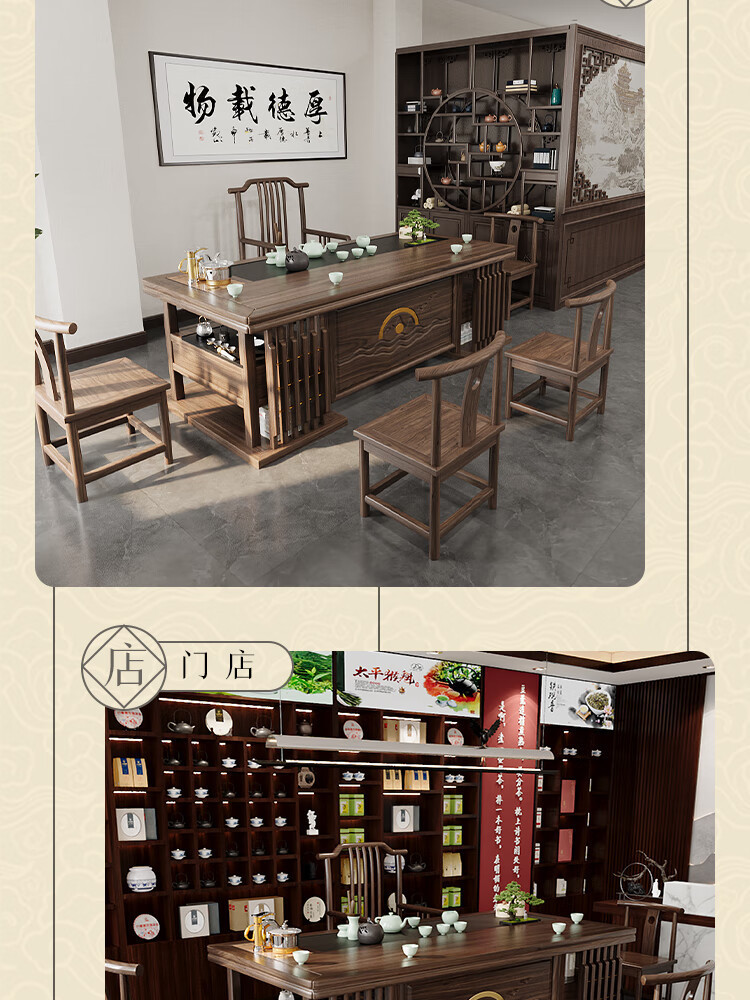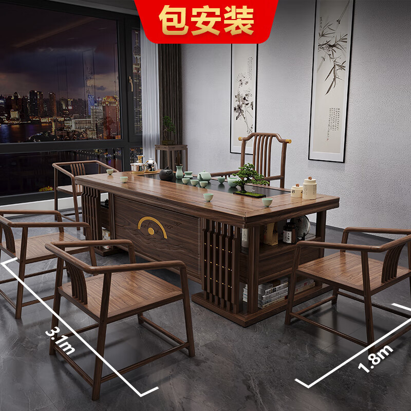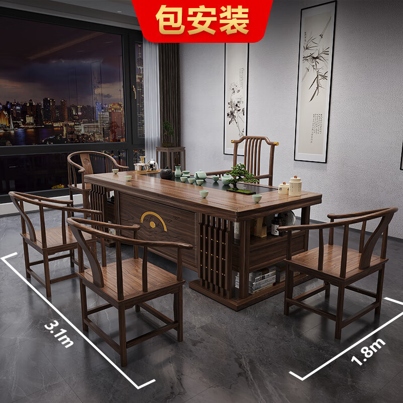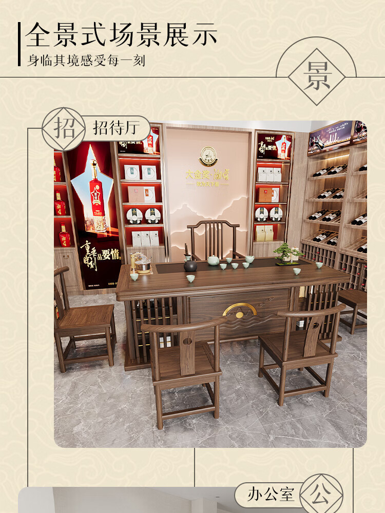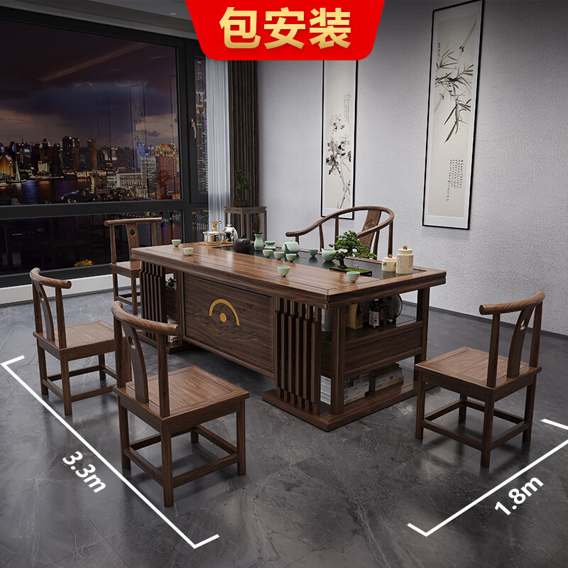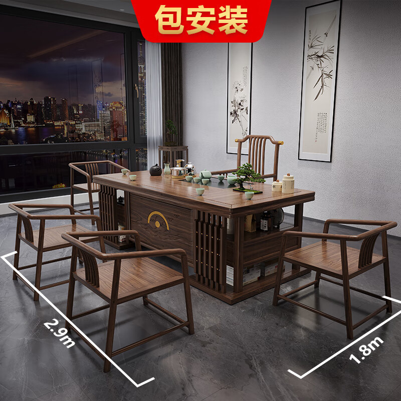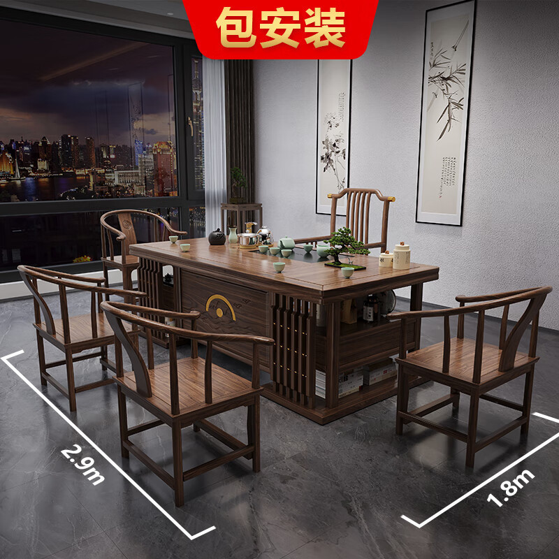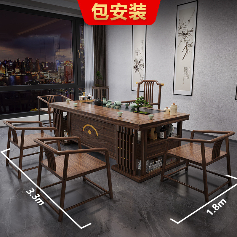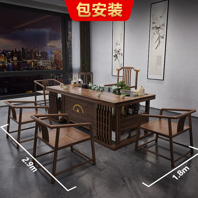 차 테이블과 의자 세트 한 테이블 다섯 의자 단단한 나무 사무실 차 테이블 세트 하나의 새로운 중국 스타일 홈 쿵푸 커피 테이블스토어 가기
