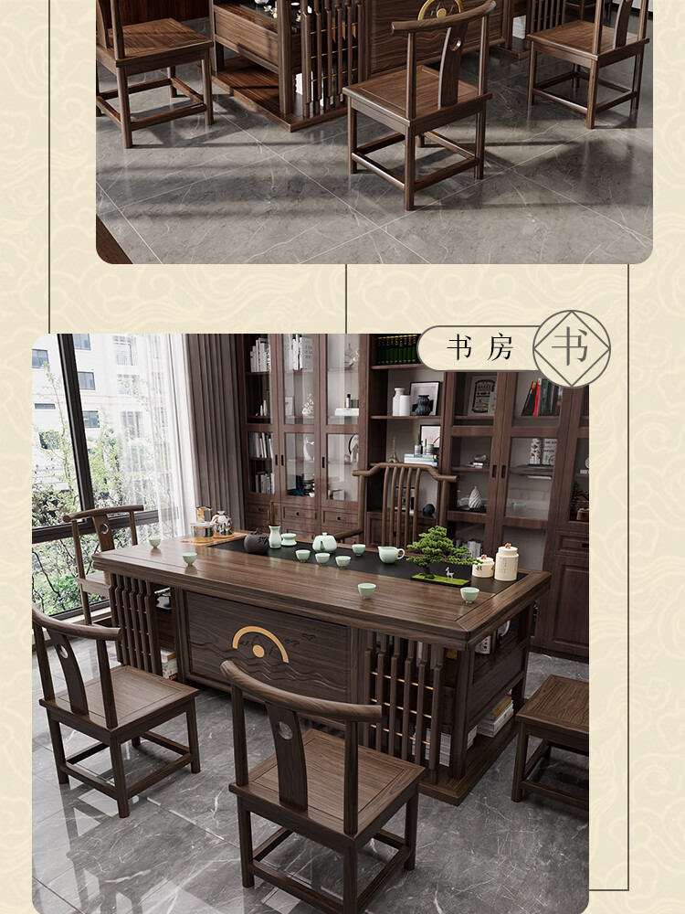 • 1.6m 작은 돌 트레이 티 테이블 + 빗 등받이 메인 의자 + 손님용 빗 등받이 의자 4개