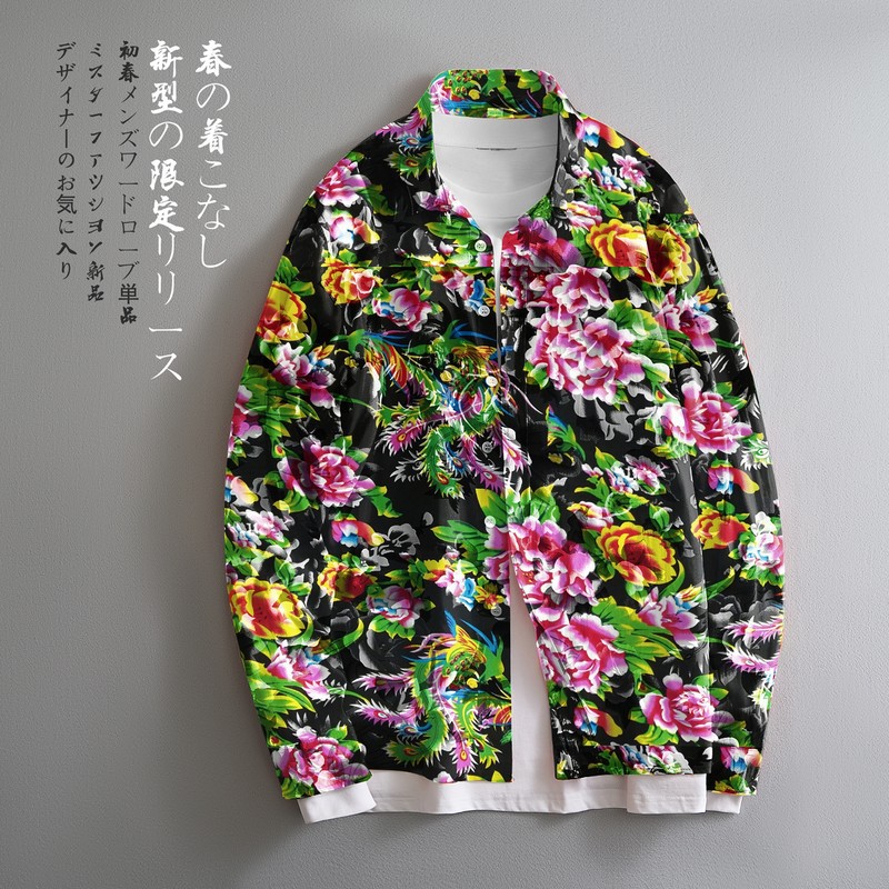 남성 캐주얼 멀티 컬러 북동쪽 큰 꽃 긴 소매 셔츠 한 세대 대외 무역 1129-P35스토어 가기