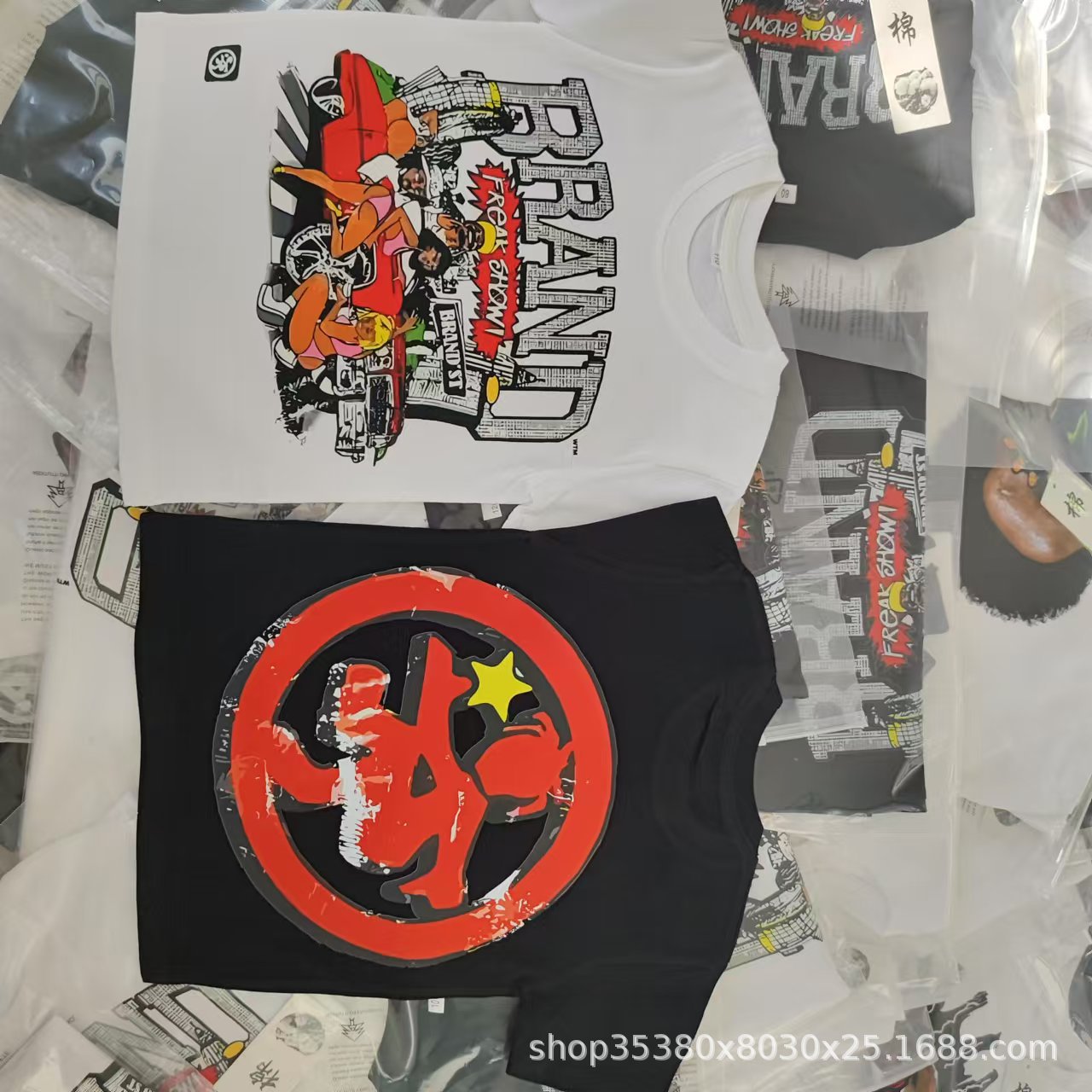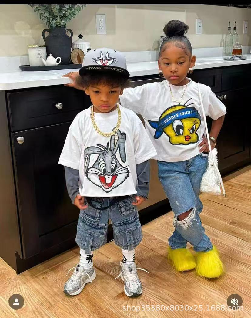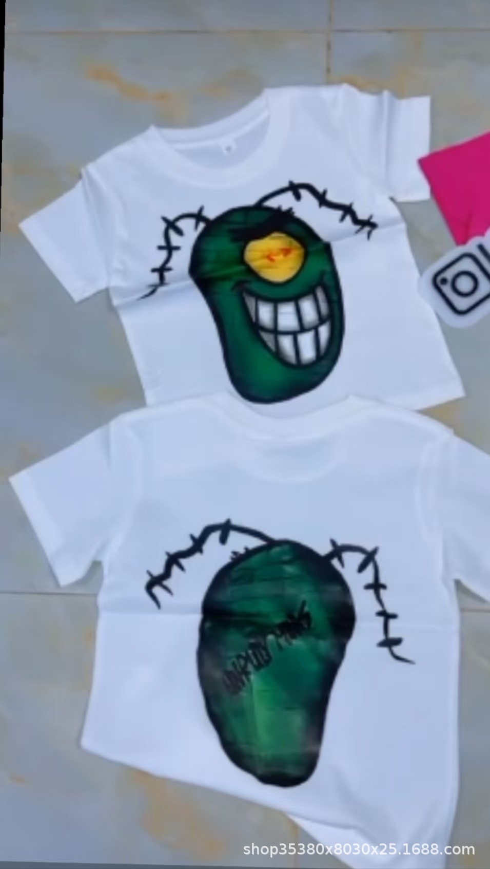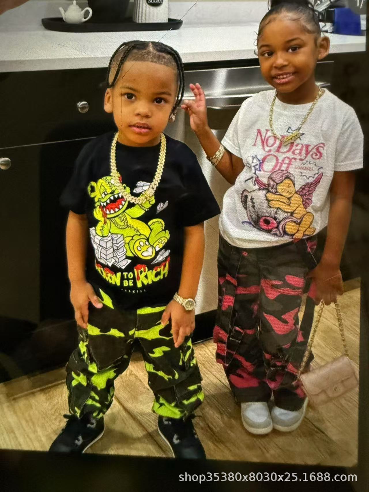 유럽과 미국 어린이 힙합 프린트 티셔츠 크로스 보더 뉴 하라주쿠 고딕 코튼 반팔 재킷 티셔츠 소년 소녀 아동복스토어 가기