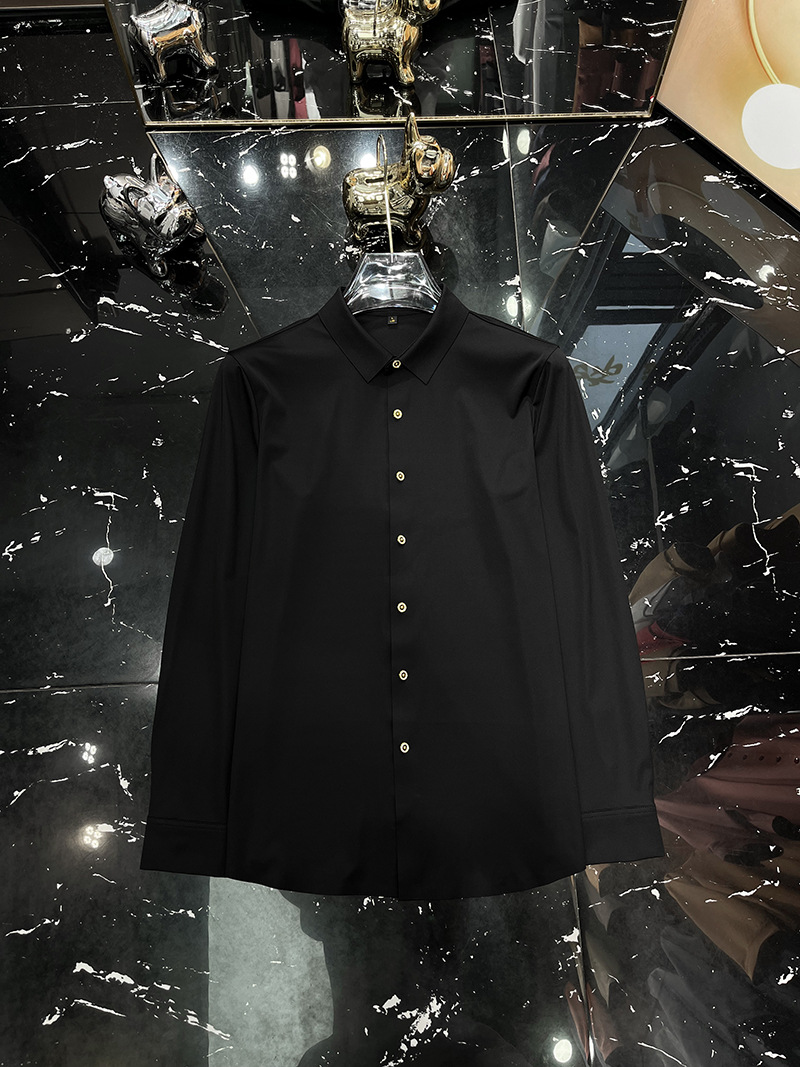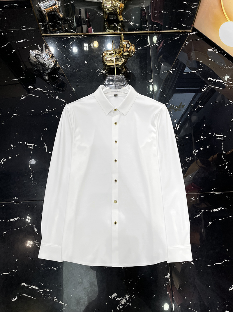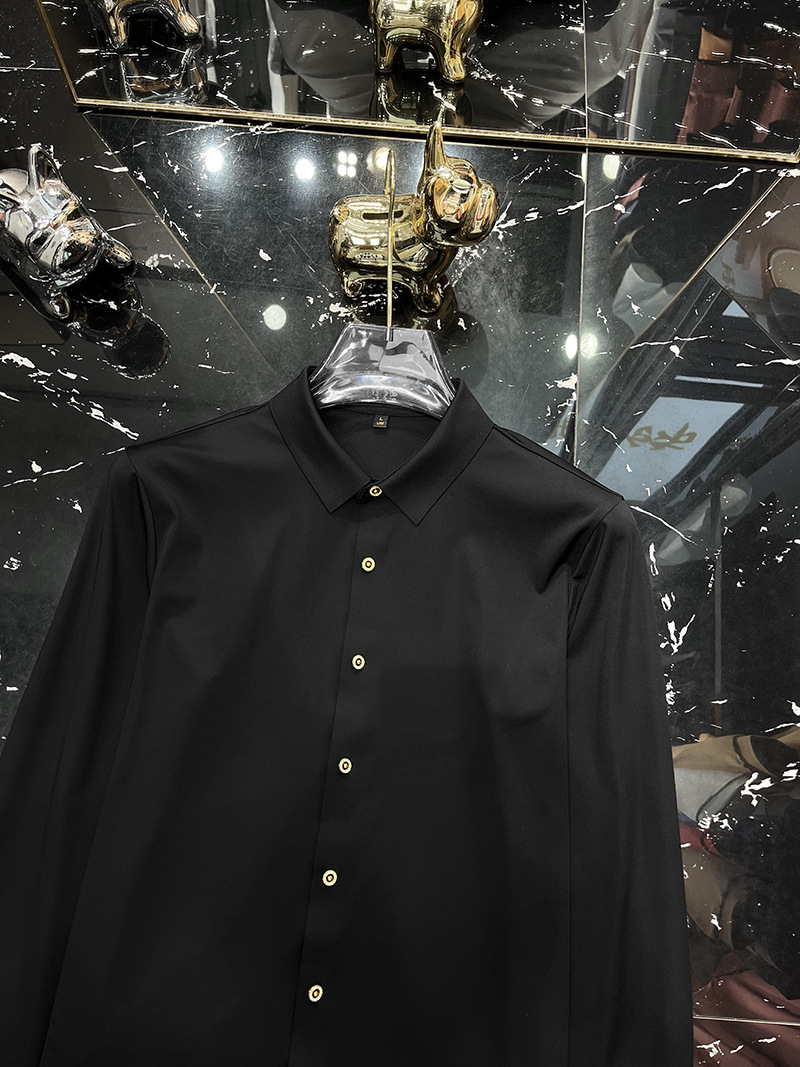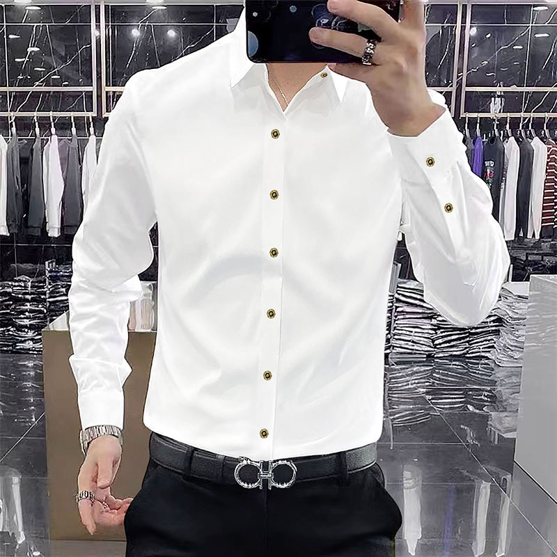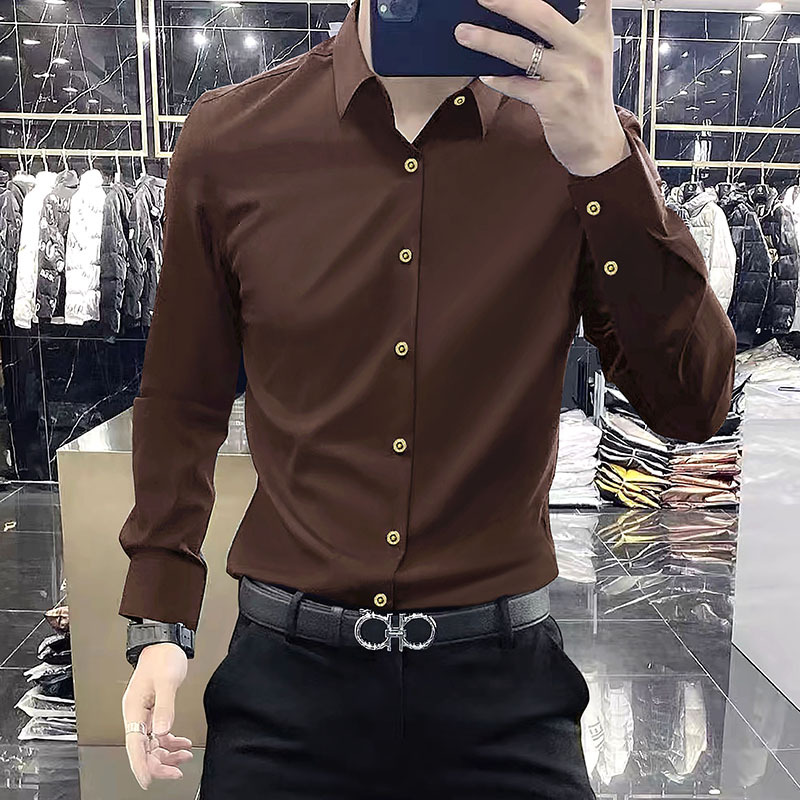 2025 봄 하이 엔드 센스 캐주얼 긴팔 셔츠 남자 가을 새 크라운 버클 슬림 핏 스트레치 비즈니스 셔츠 트렌디스토어 가기