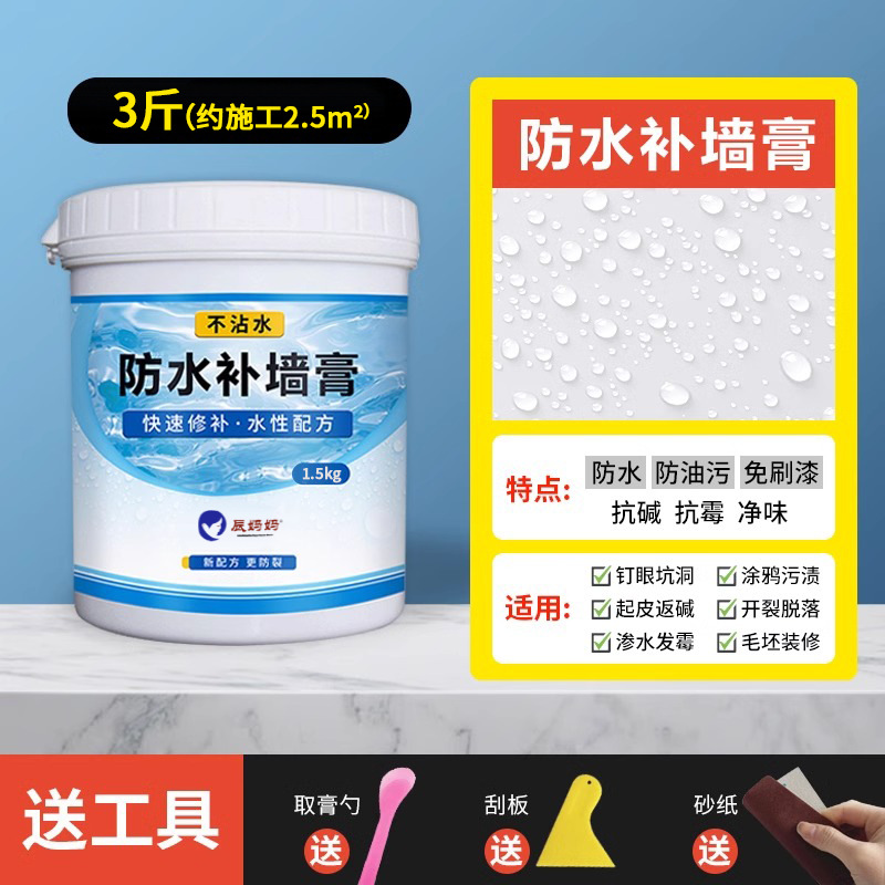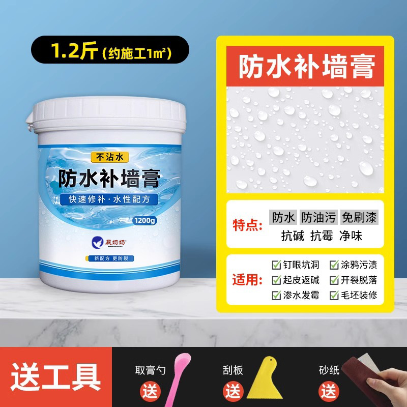 • 냄새가 없고 친환경적입니다. [알칼리방지 및 곰팡이방지 + 방수, 방습 및 오염방지 + 무취 및 무페인트] 벽보수 페이스트 1.5kg / 무료공구 (약 2.5㎡)