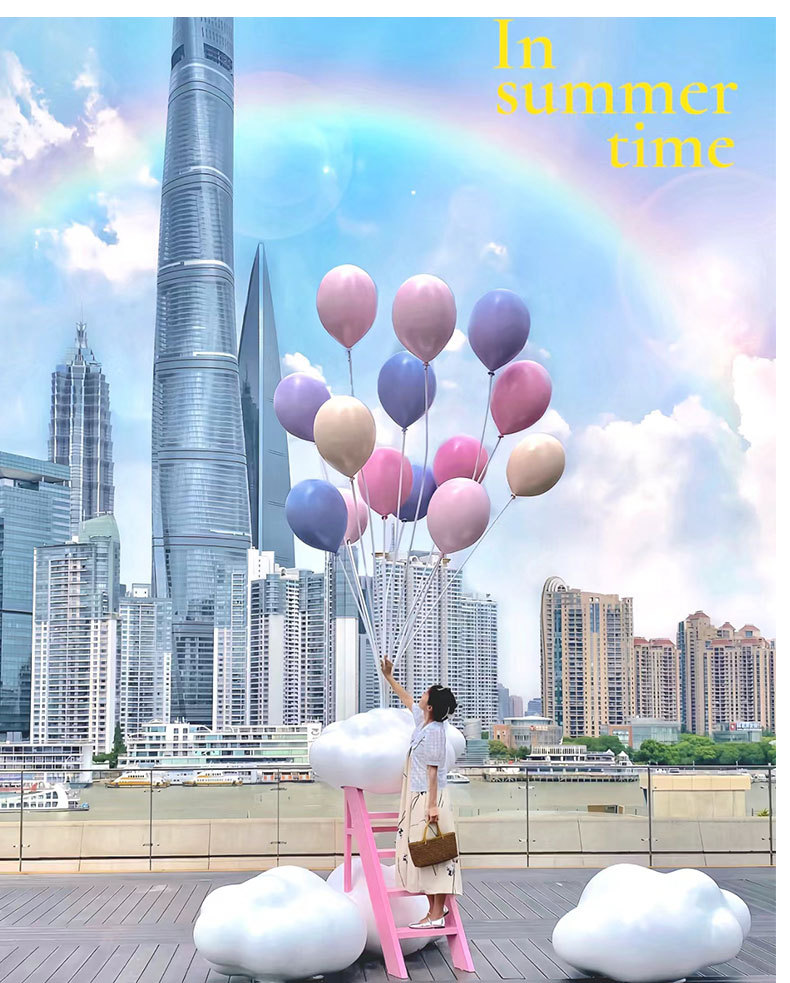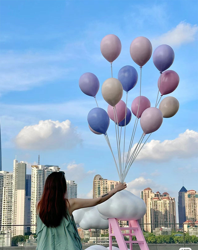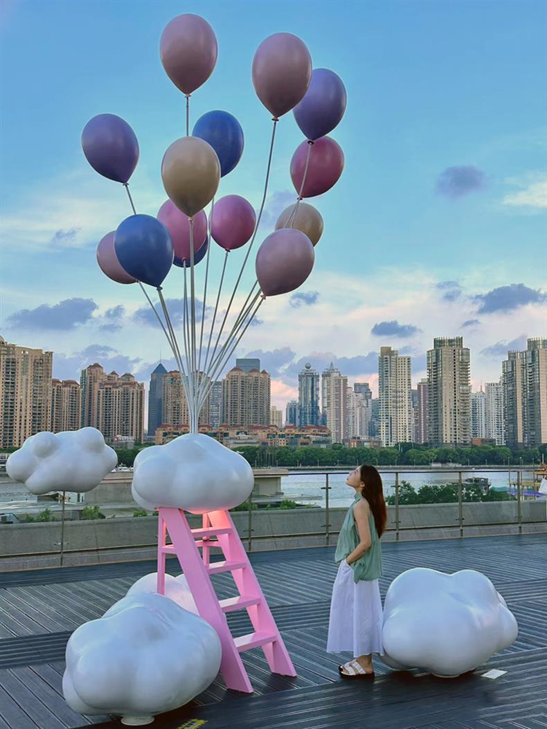 그물 붉은 풍선 구름 사다리 유리 섬유 강화 플라스틱 장식 관광 명소 쇼핑몰 핀인 사진 배수 창조적 인 아름다움 첸 장식