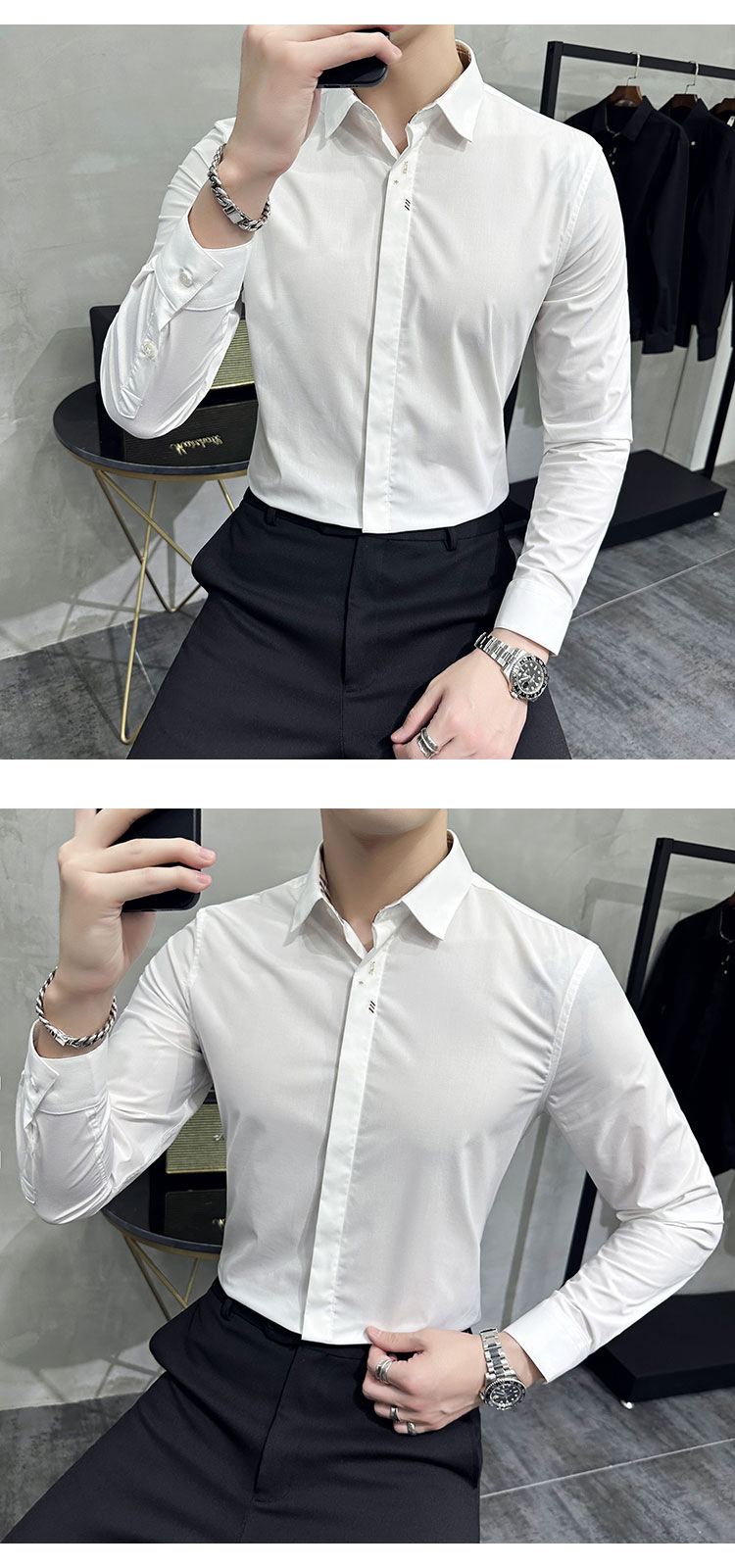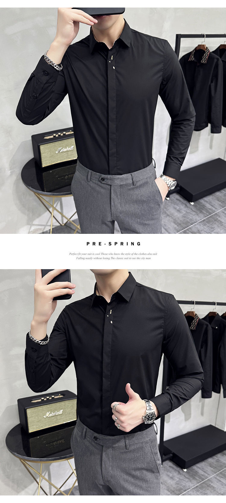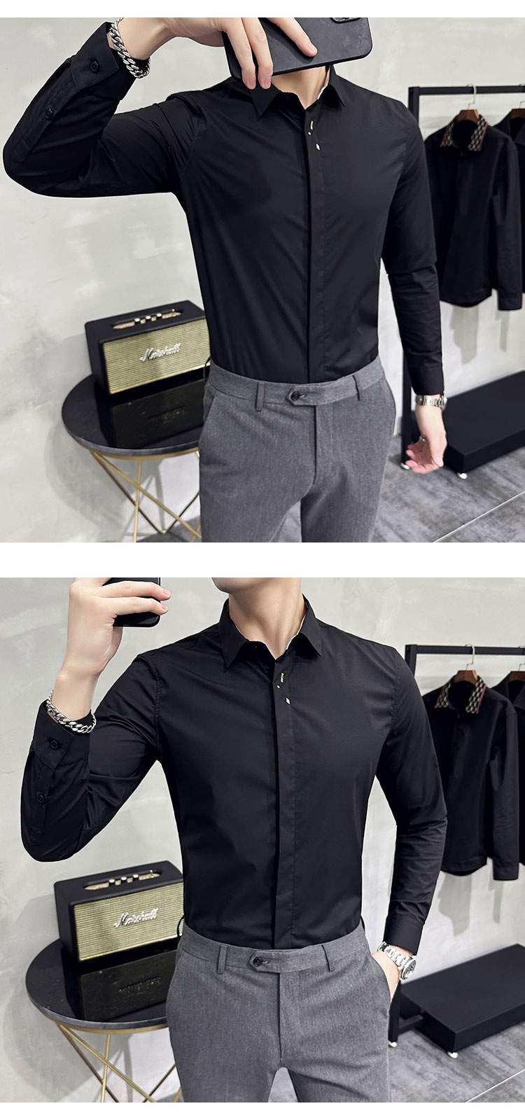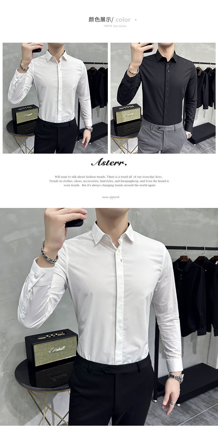 남성 캐주얼 패션 스트레치 고급 단색 자수 셔츠 한 세대 대외 무역 1060-P45스토어 가기