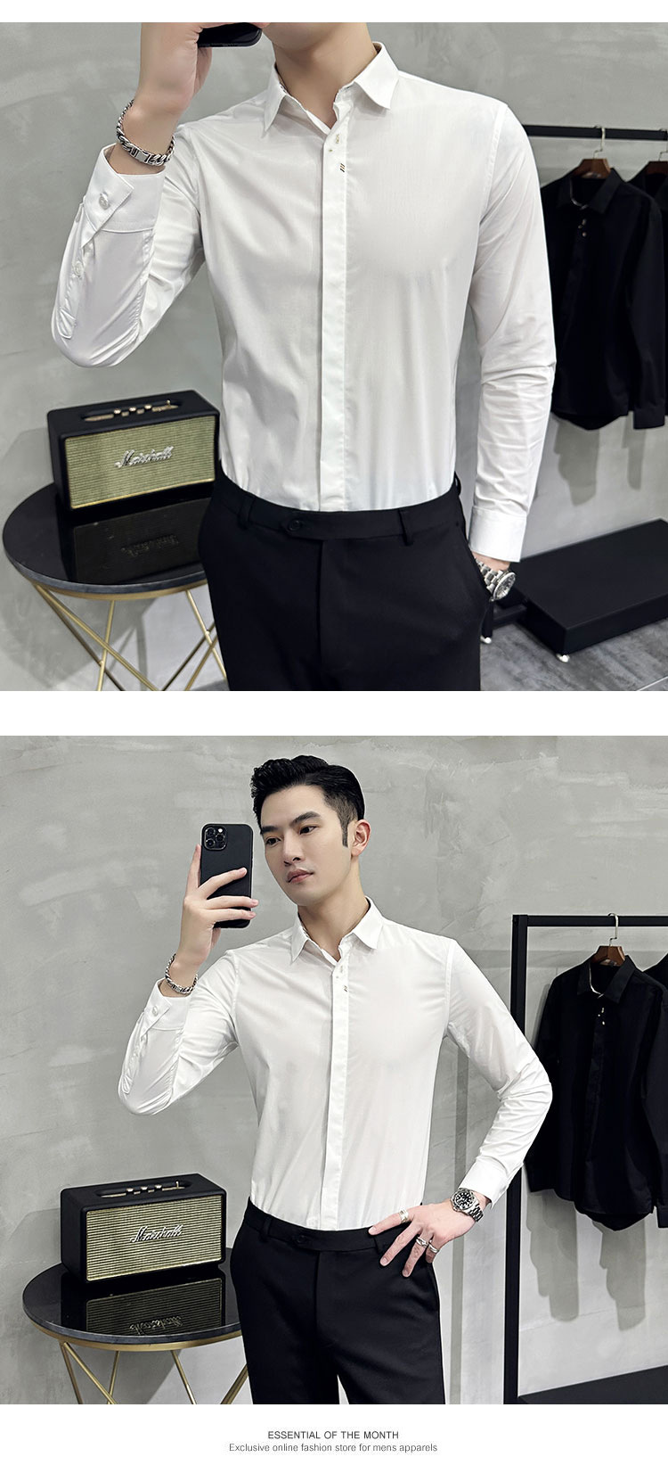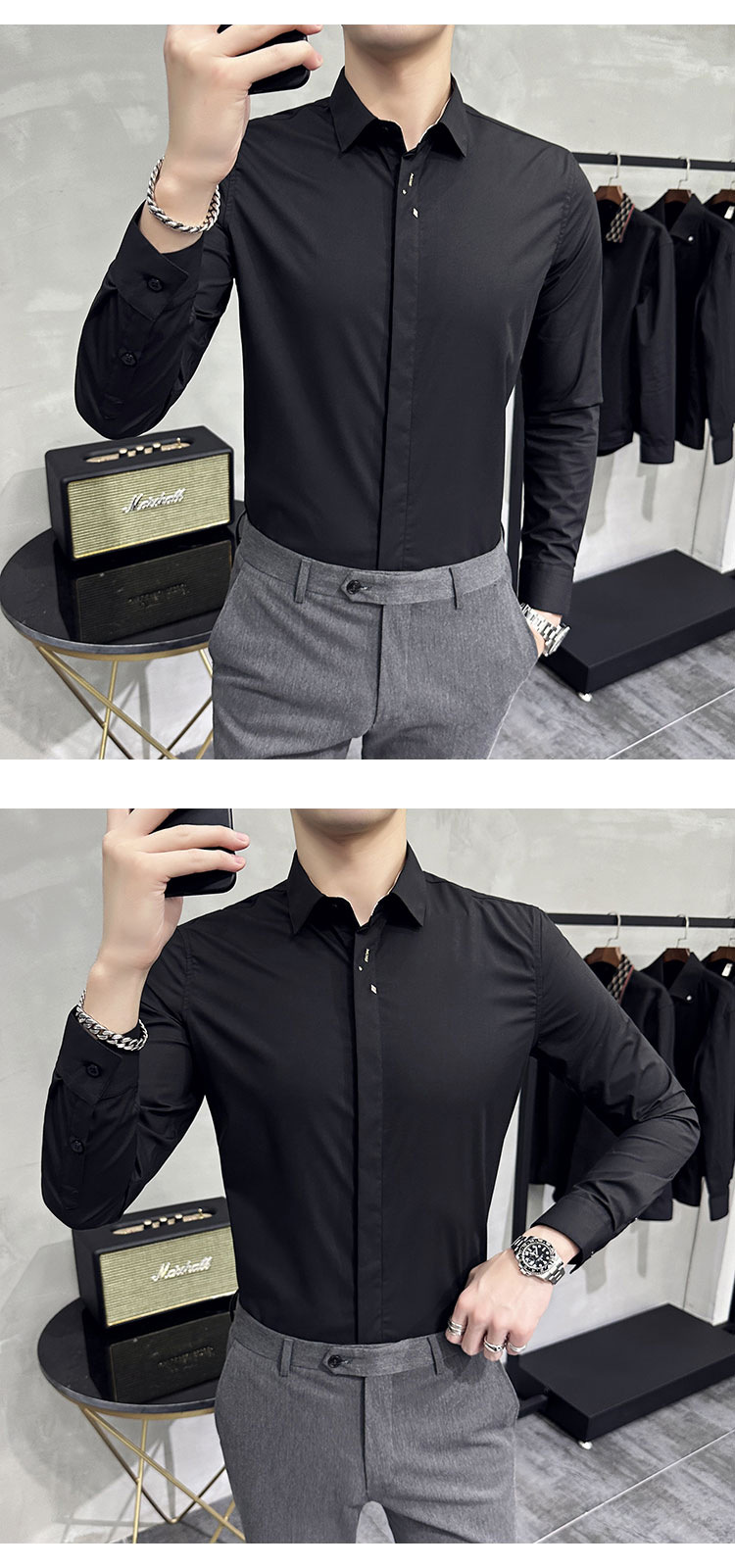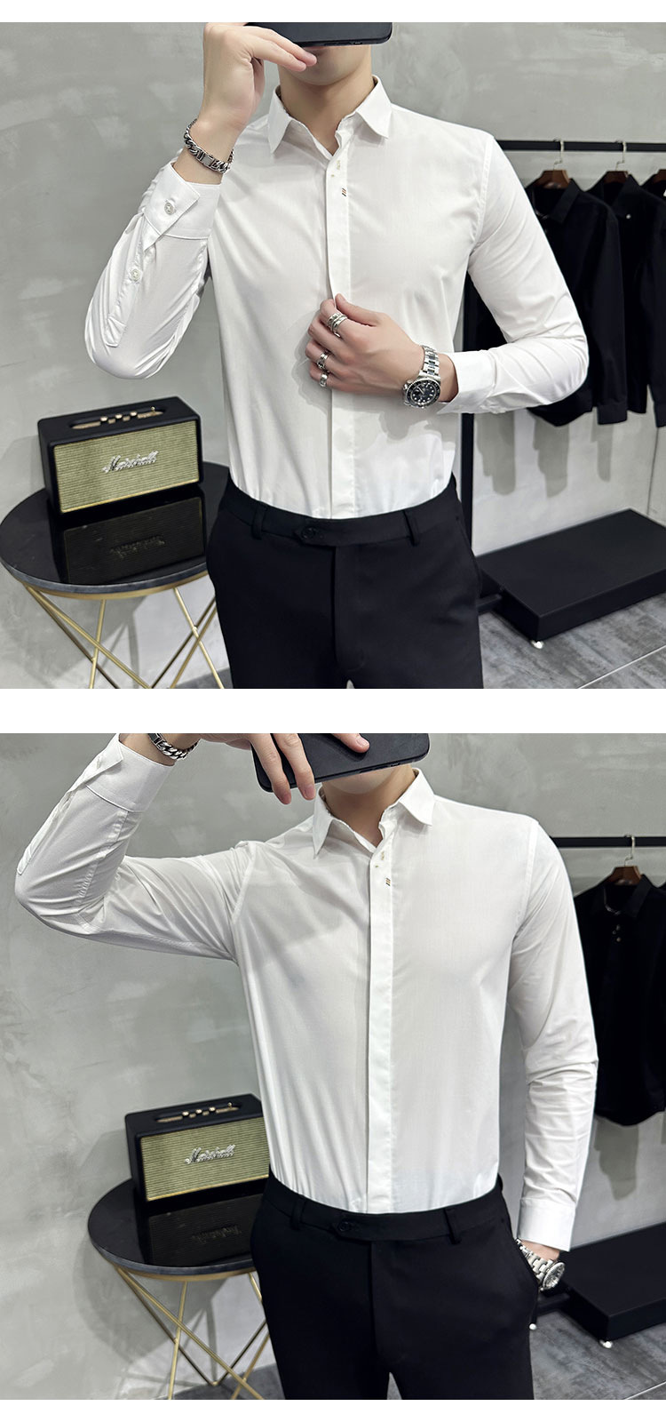 남성 캐주얼 패션 스트레치 고급 단색 자수 셔츠 한 세대 대외 무역 1060-P45스토어 가기