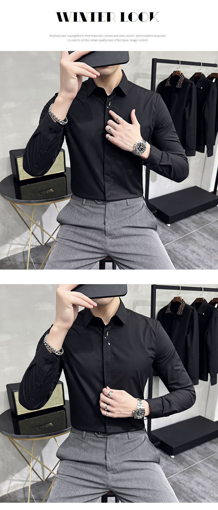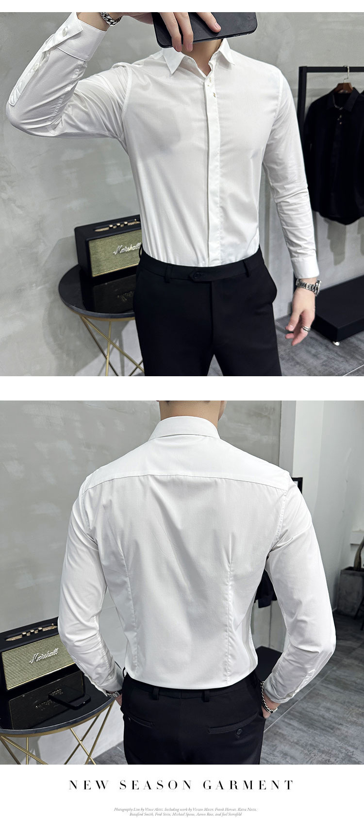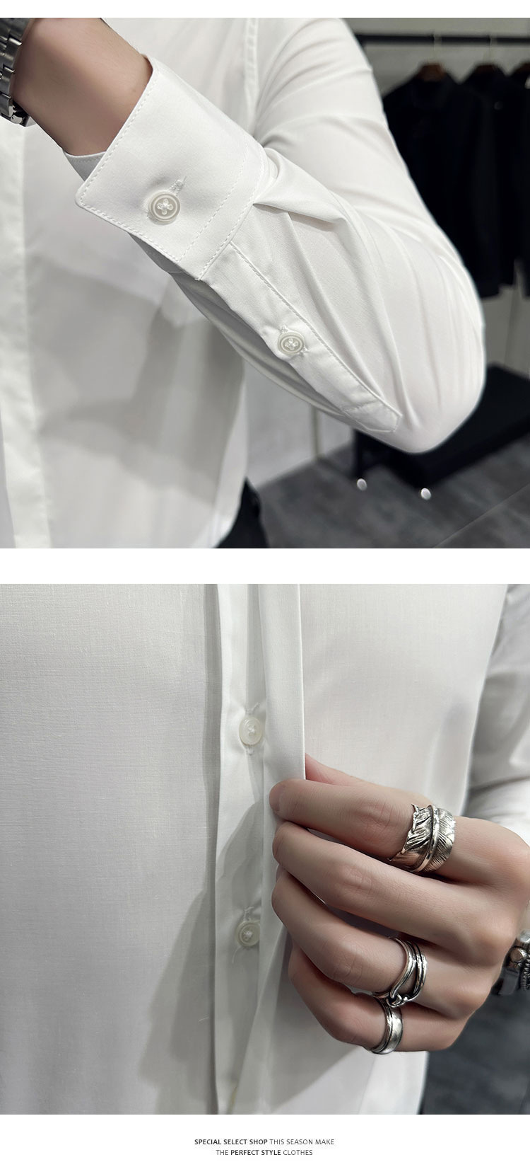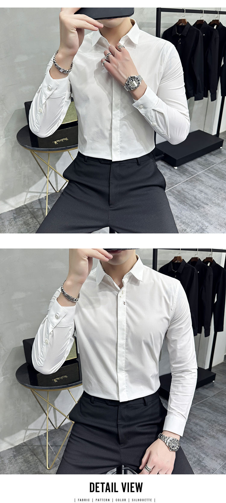 남성 캐주얼 패션 스트레치 고급 단색 자수 셔츠 한 세대 대외 무역 1060-P45스토어 가기