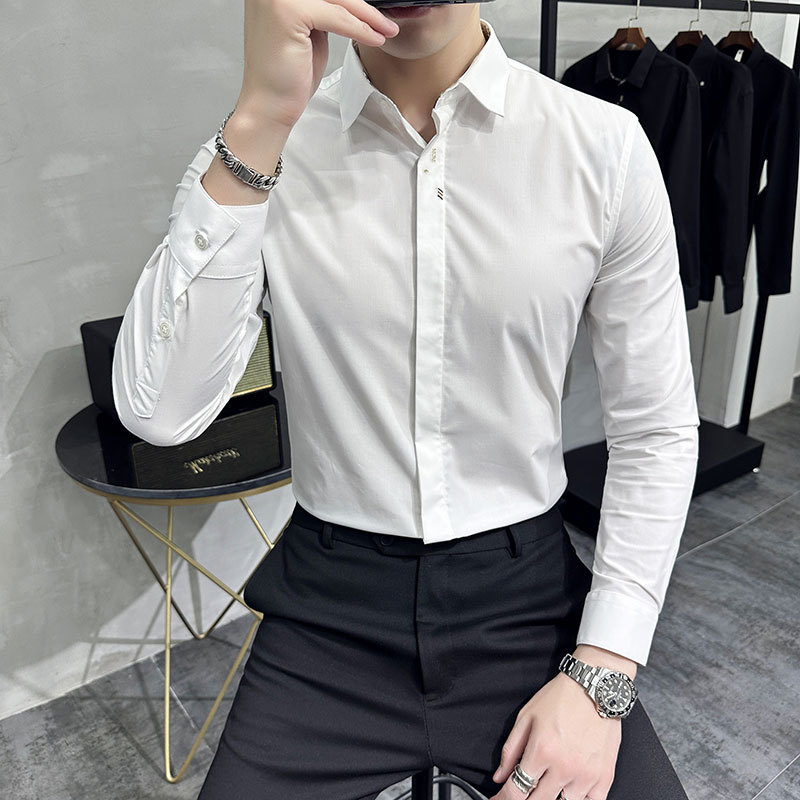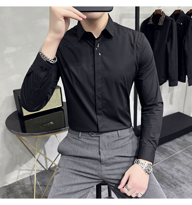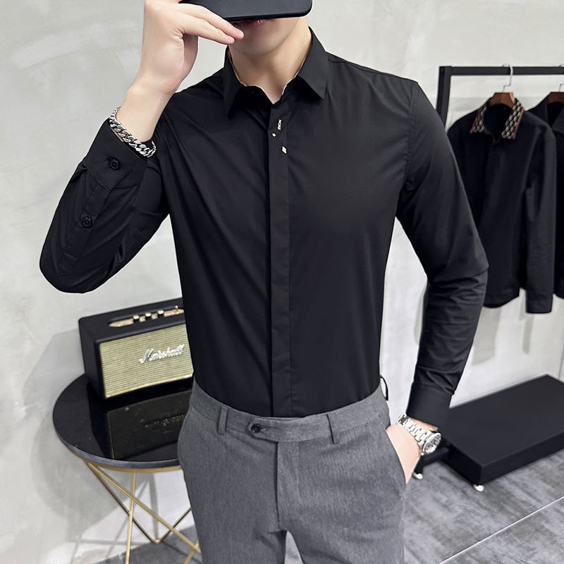 남성 캐주얼 패션 스트레치 고급 단색 자수 셔츠 한 세대 대외 무역 1060-P45