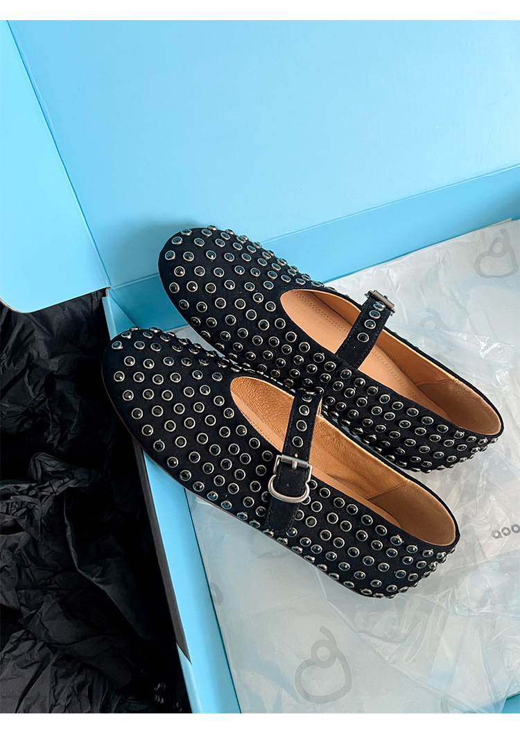 둥근 발가락 메리 제인 신발 여성 2025 년 봄 새로운 초파리 얕은 평평한 신발 모조 다이아몬드 신발 버건디 신발스토어 가기