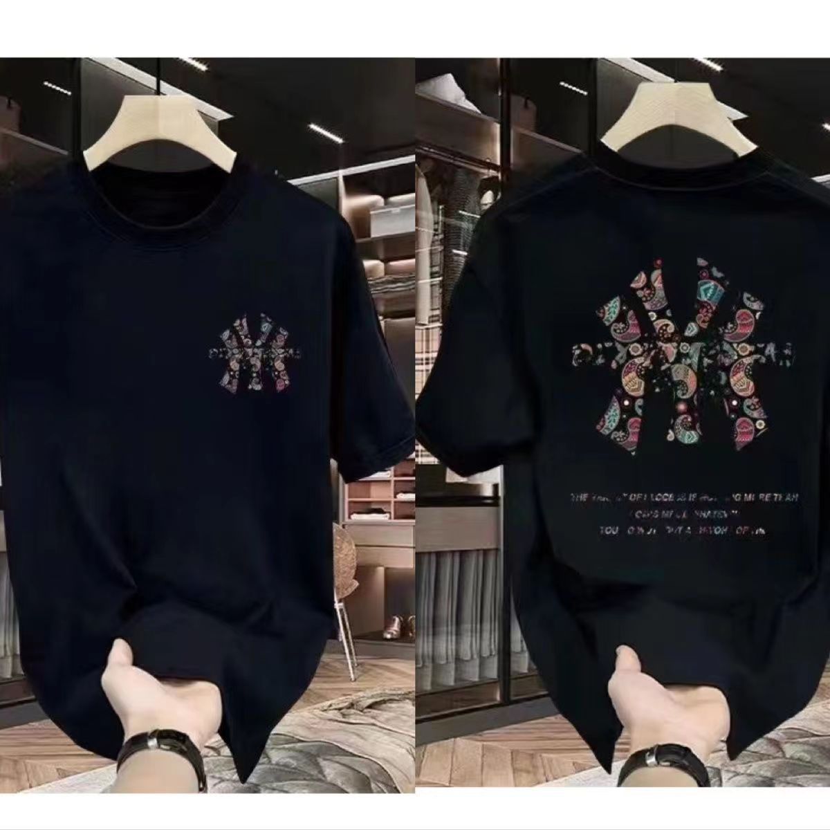 한국 남자와 여자의 티셔츠 커플 2022 여름 새로운 짧은 소매 다시 NY 거품 편지 인쇄 느슨한 캐주얼 티셔츠